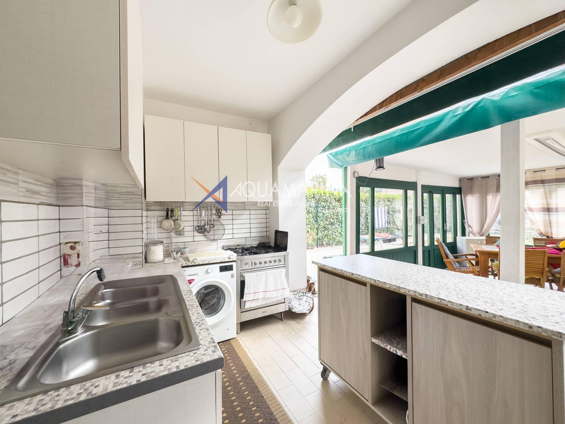 Appartamento di ampia metratura di circa 70 mq. in buone condizioni, situato al piano terreno con giardino privato. L'appartamento è composto da: ingresso, soggiorno con angolo cottura, disimpegno, loggia, due camere da letto e due bagni, dehors di 40 mq. circa ed è collegato all'ampio giardino perimetrale di circa 100 mq.