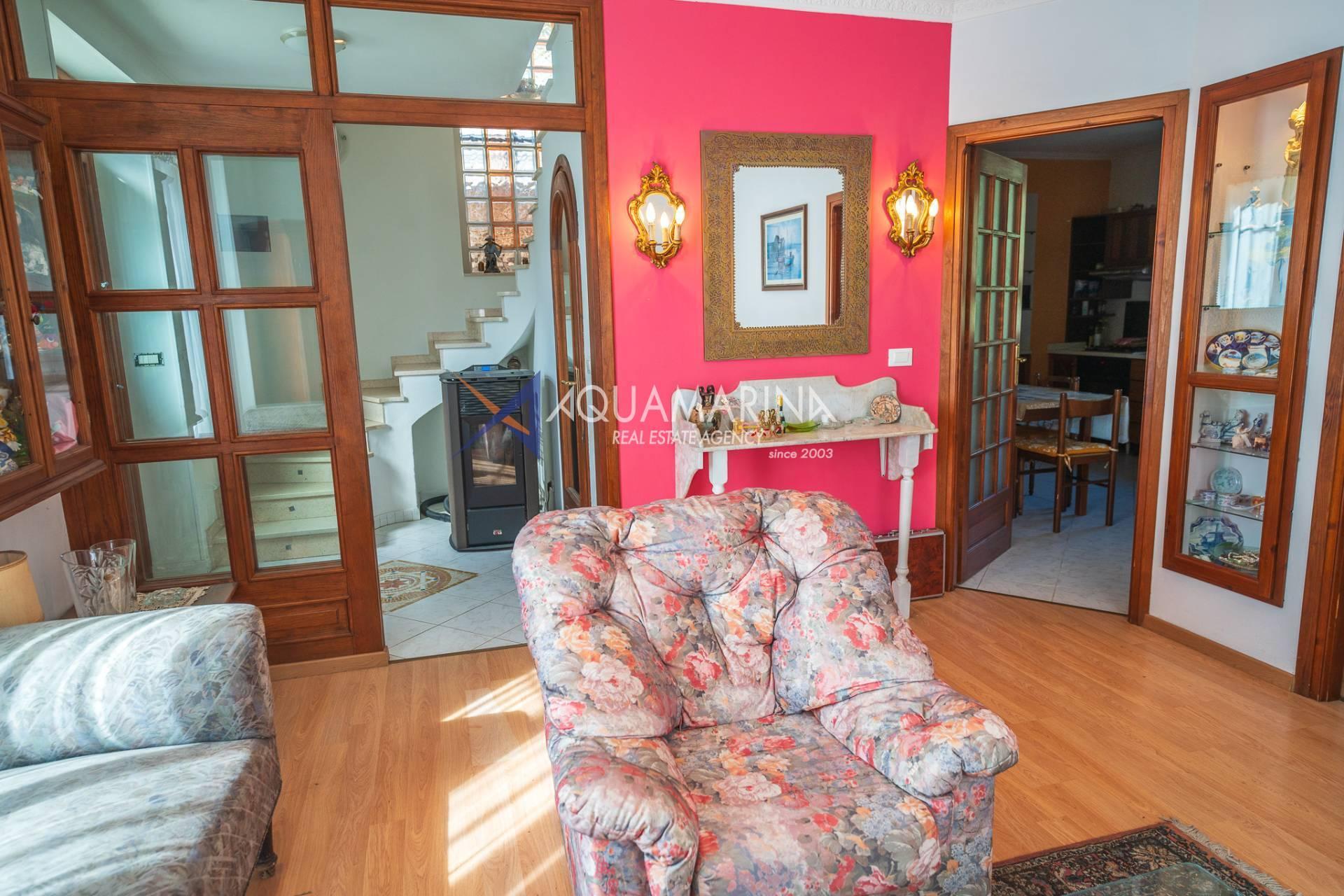 Completano la proprietà: ampio spazio esterno in parte verandato dotato di cucina e forno professionale da esterni, due cantine, posti auto e generoso appezzamento di terreno adibito in parte a giardino ed in parte utilizzato come orto con piante di limoni, arance e avocado.