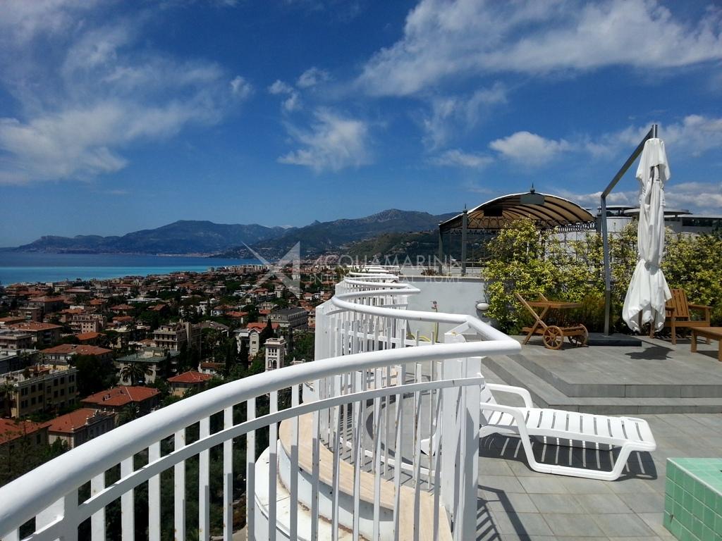 Bordighera proponiamo in vendita appartamento di 160 mq più 300 mq circa di terrazzo al piano attico di uno stabile di prestigio con piscina e portierato.