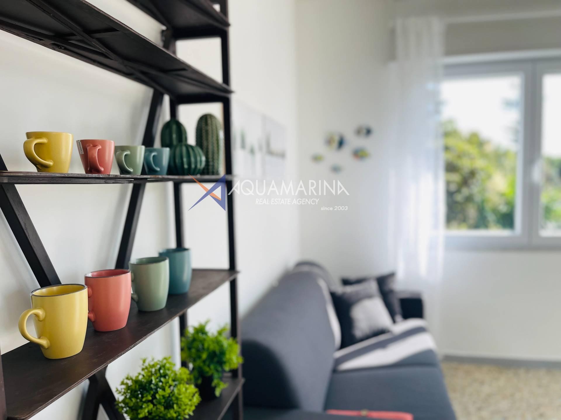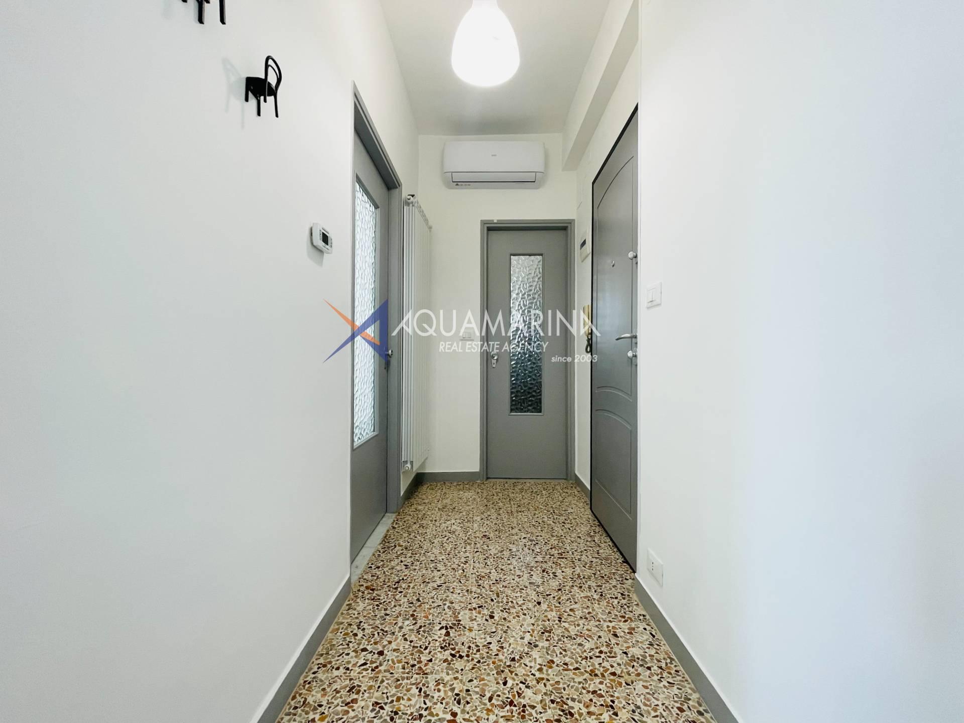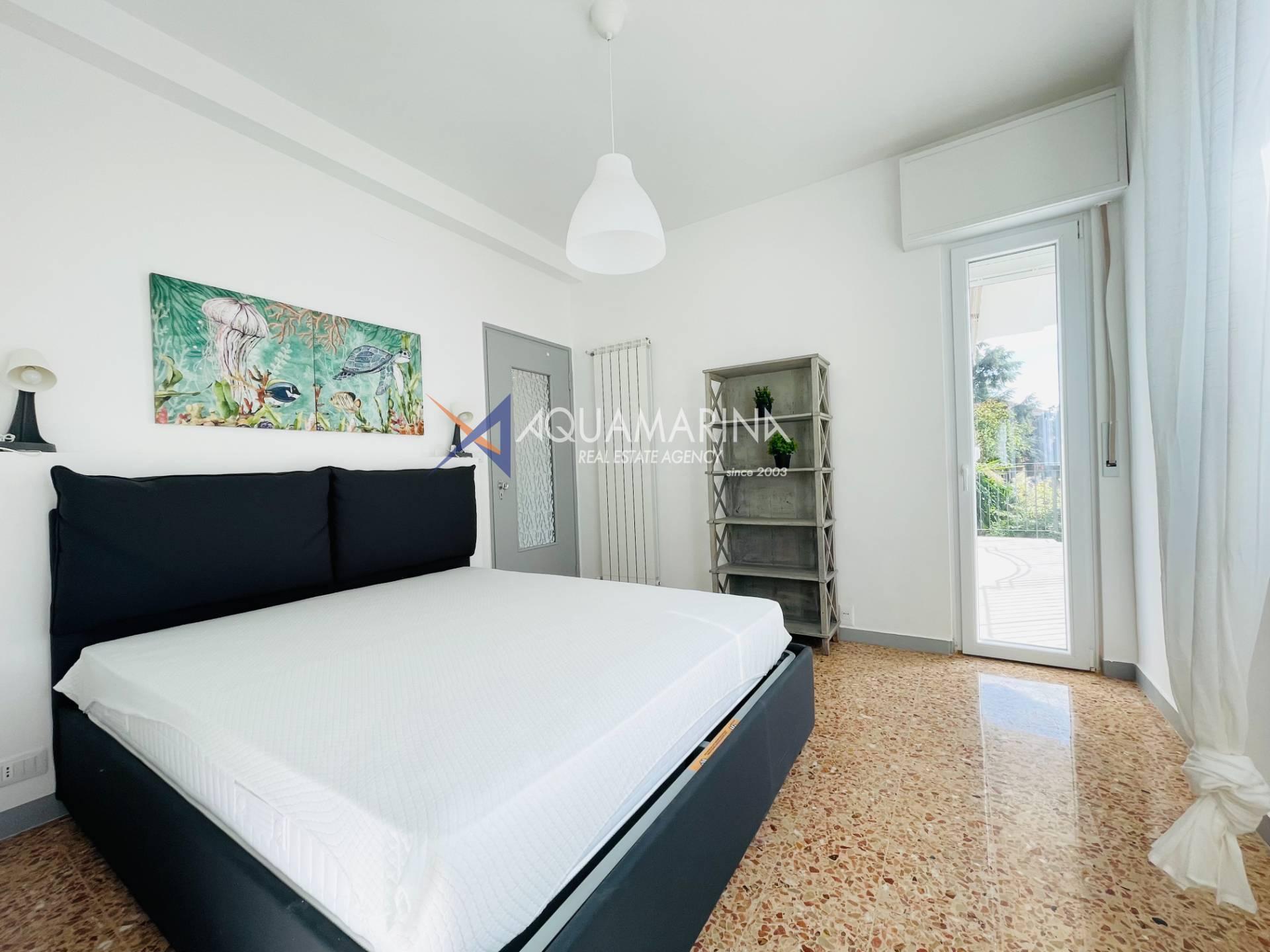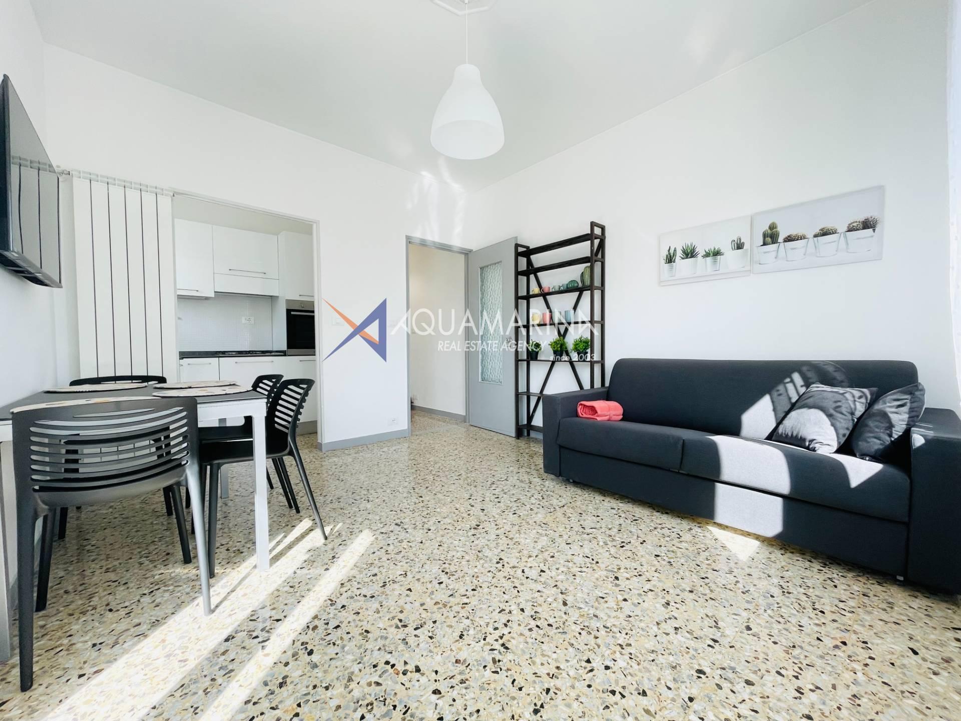 A pochi passi dal mare, in zona pianeggiante e verde, in prossimità di tutti i servizi e le comodità della vita quotidiana proponiamo in affitto appartamento di 49 mq circa composto da: ingresso, soggiorno con angolo cottura dotato di divano letto per 1-2 persone, camera da letto matrimoniale con cabina armadio, bagno con doccia e terrazzo.