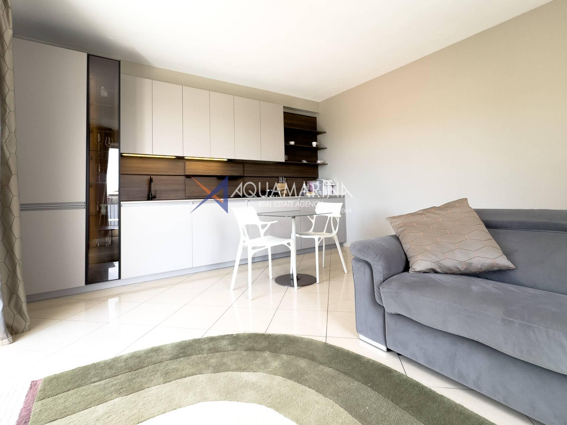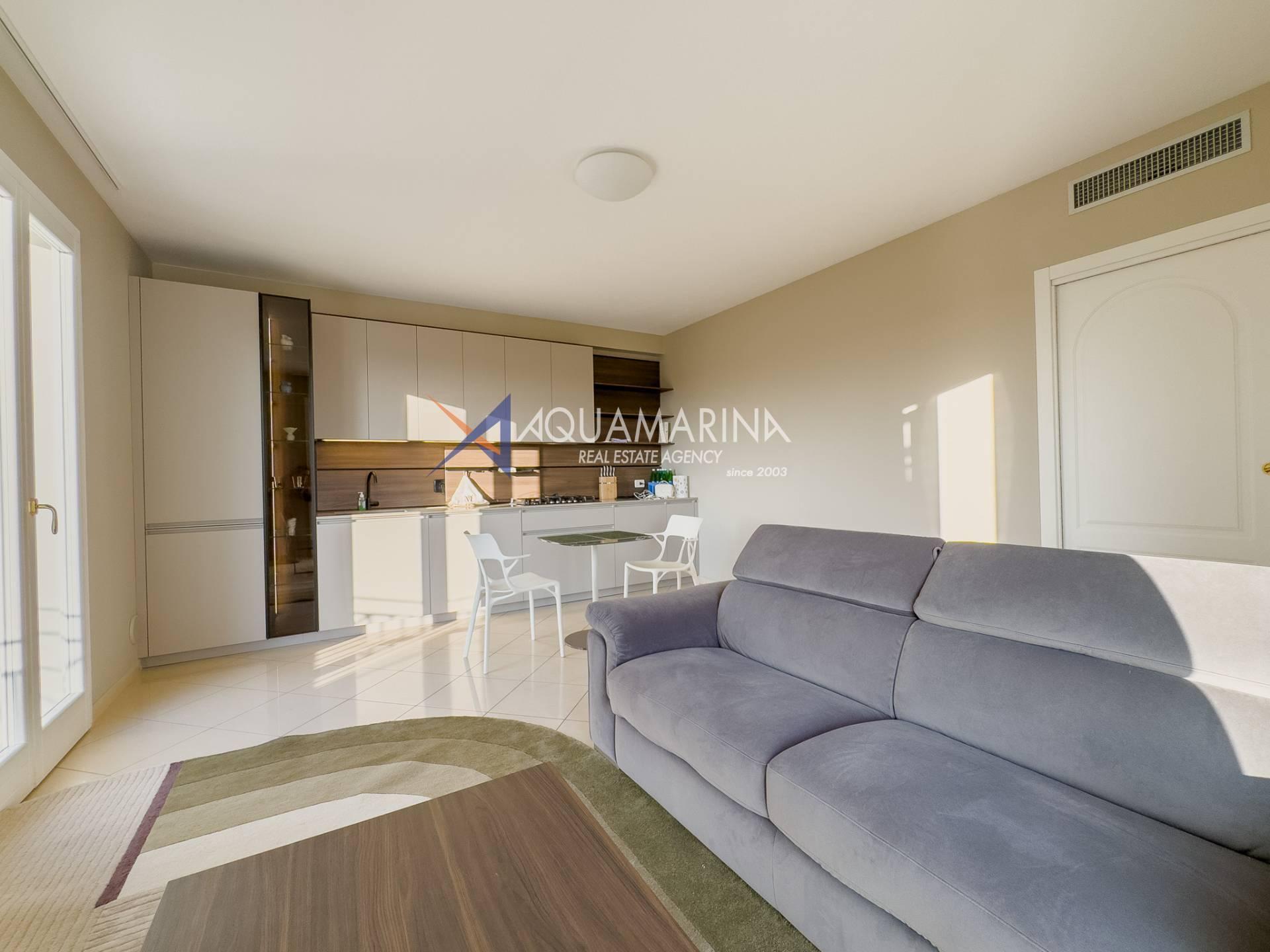 È composto da ingresso, soggiorno con angolo cottura, due terrazzi dalle quali si gode una gradevole vista sul verde della città delle palme, due camere da letto con balconi e bagno. Aria condizionata canalizzata, riscaldamento autonomo.