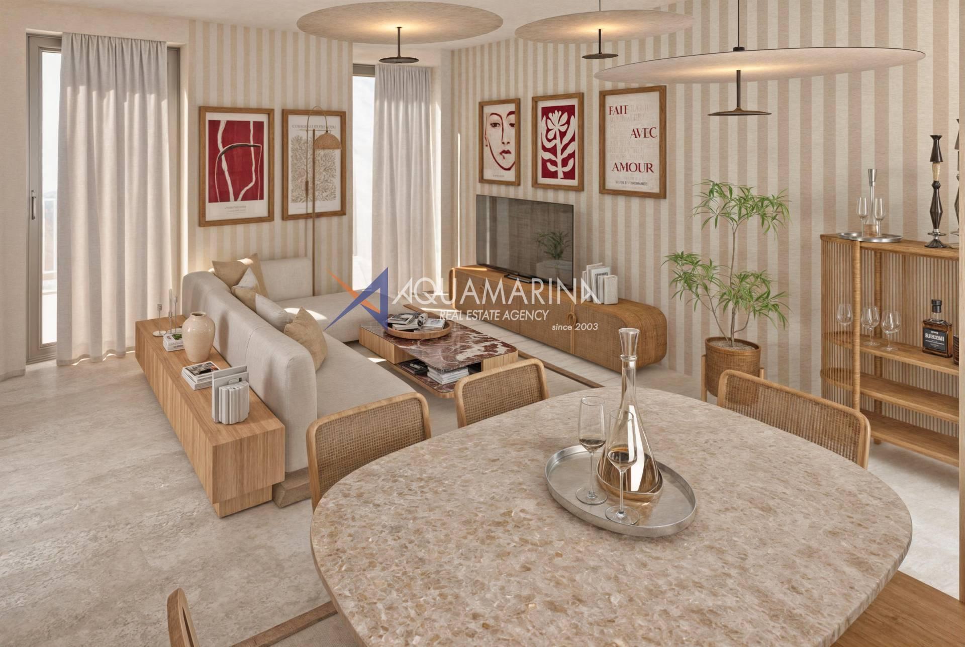 L'appartamento è composto da ingresso, un'ampia zona giorno con cucina a vista, due disimpegni, due camere da letto, due bagni ed una spaziosa superficie esterna per rilassarsi all'aria aperta..