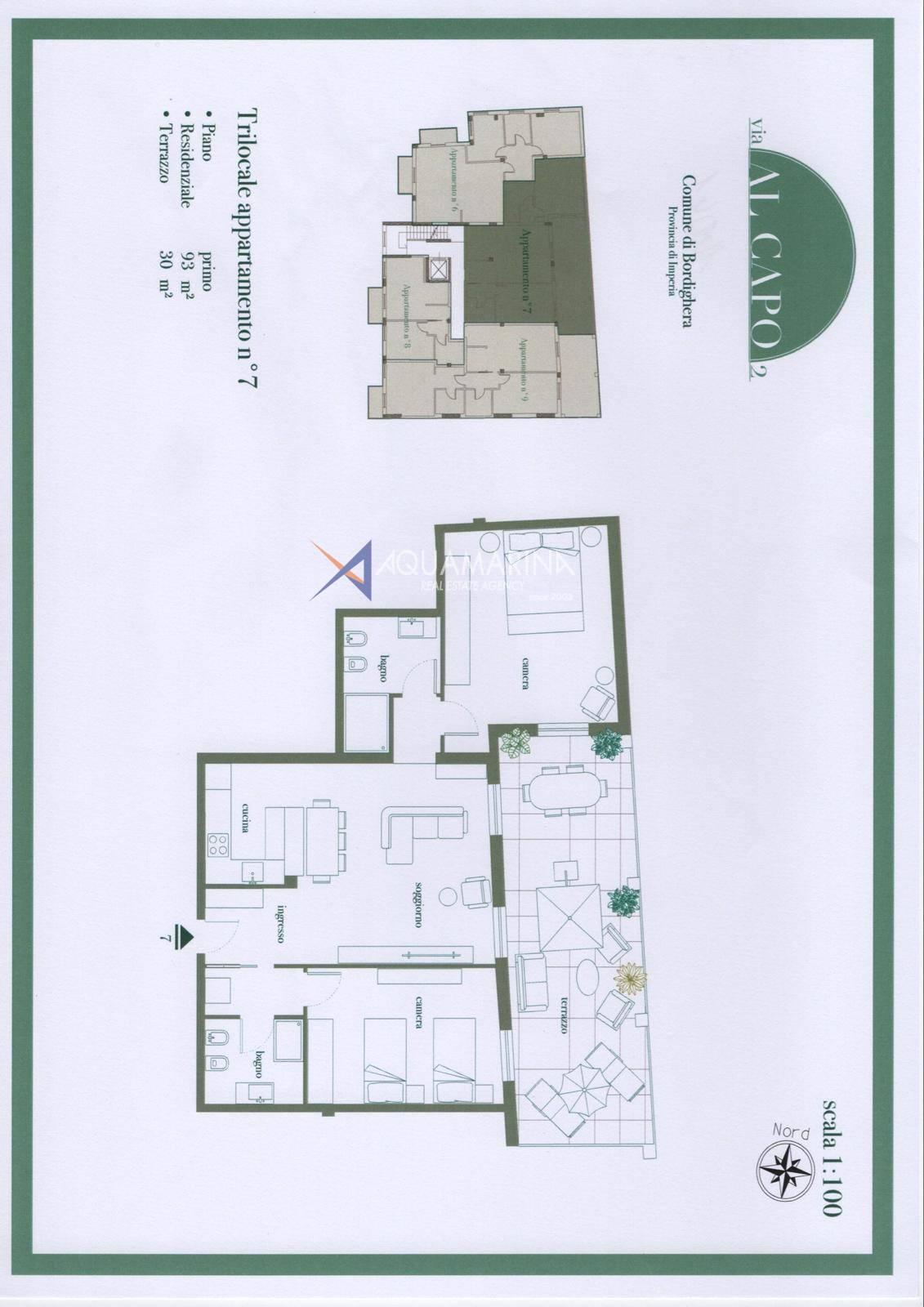 All'ingresso del bellissimo borgo storico, nel palazzo esclusivo di nuova costruzione denominato "Via al Capo", a Bordighera Alta, si vende trilocale di 93 mq. al piano primo, con 30 mq. dell'area esterna.