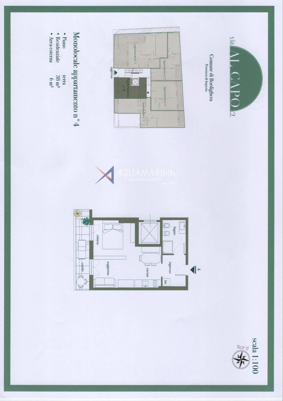 All'ingresso del bellissimo borgo storico, nel palazzo esclusivo di nuova costruzione denominato "Via al Capo", a Bordighera Alta, si vende monolocale di 38 mq. al piano terreno, con 6 mq. dell'area esterna.