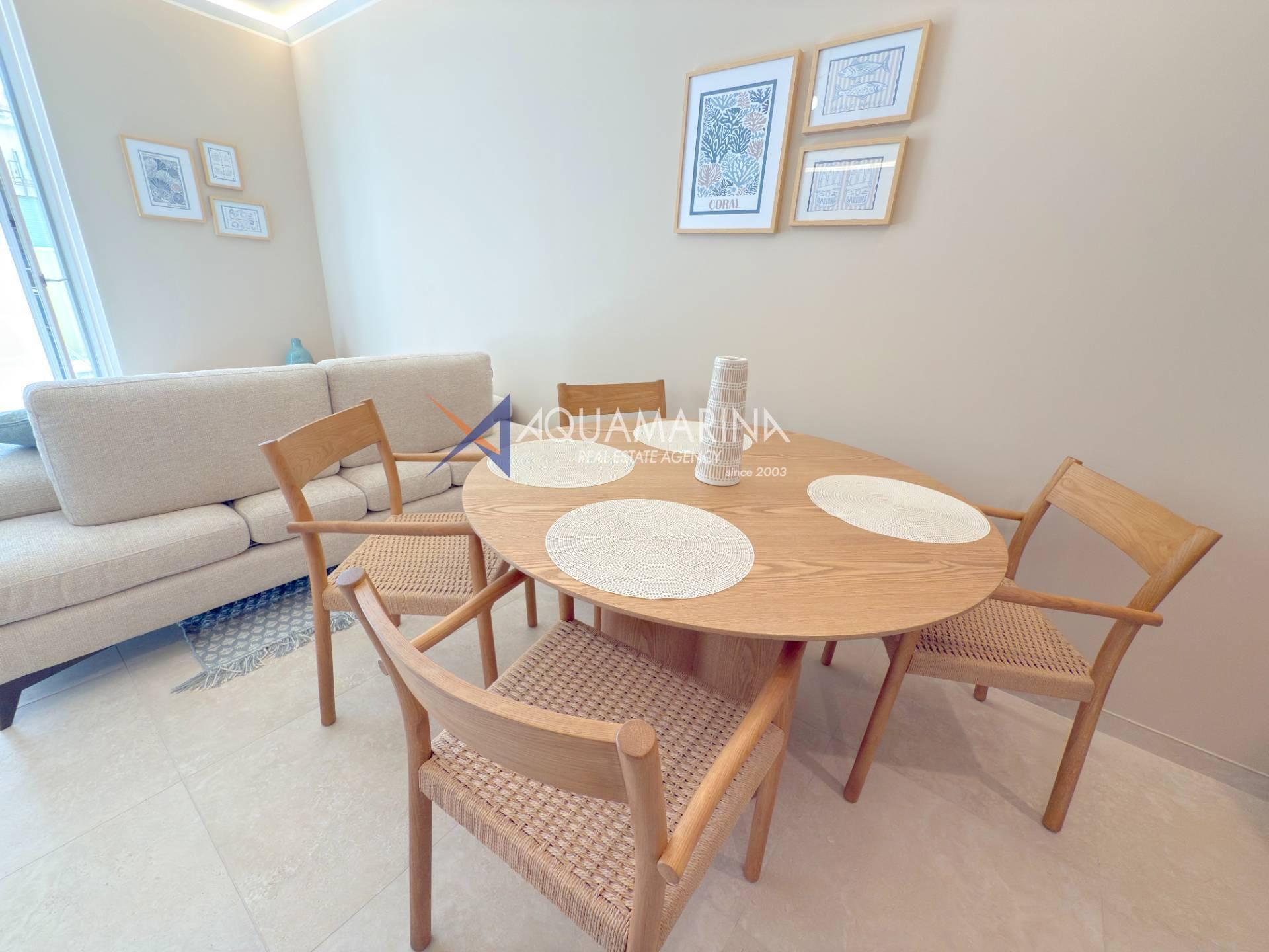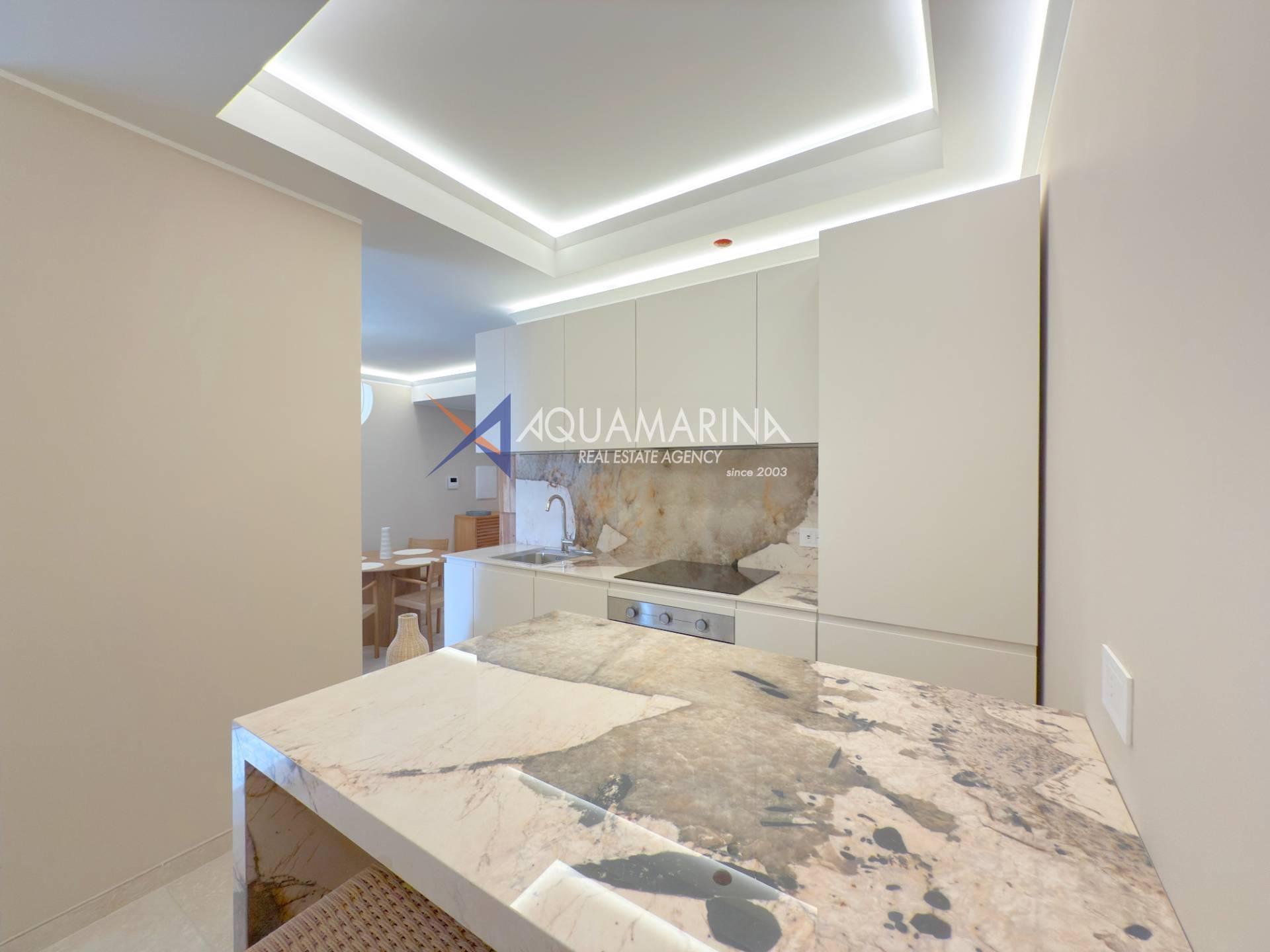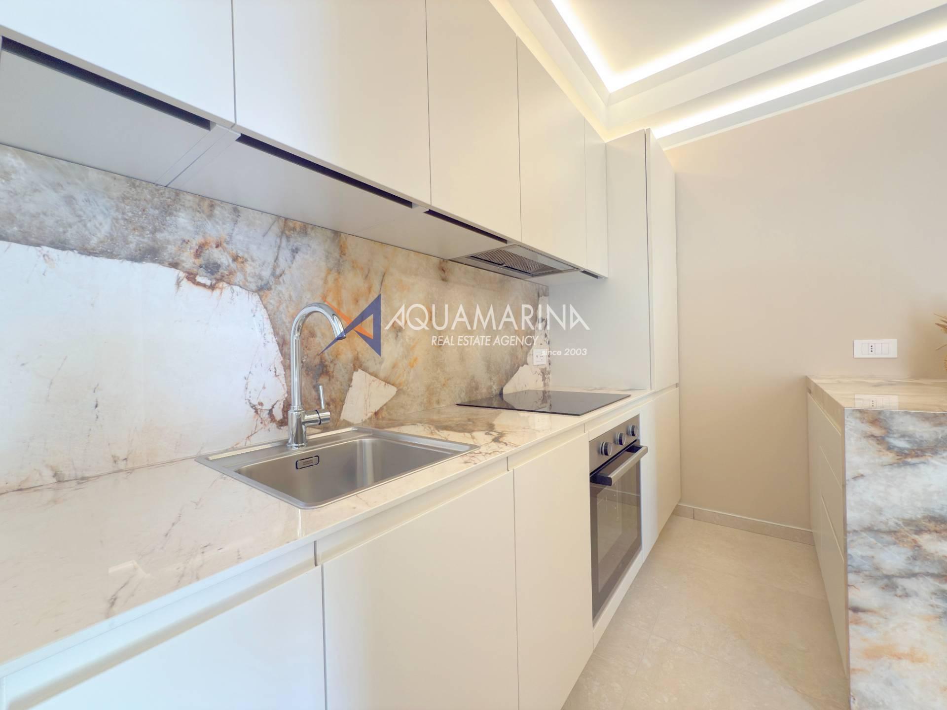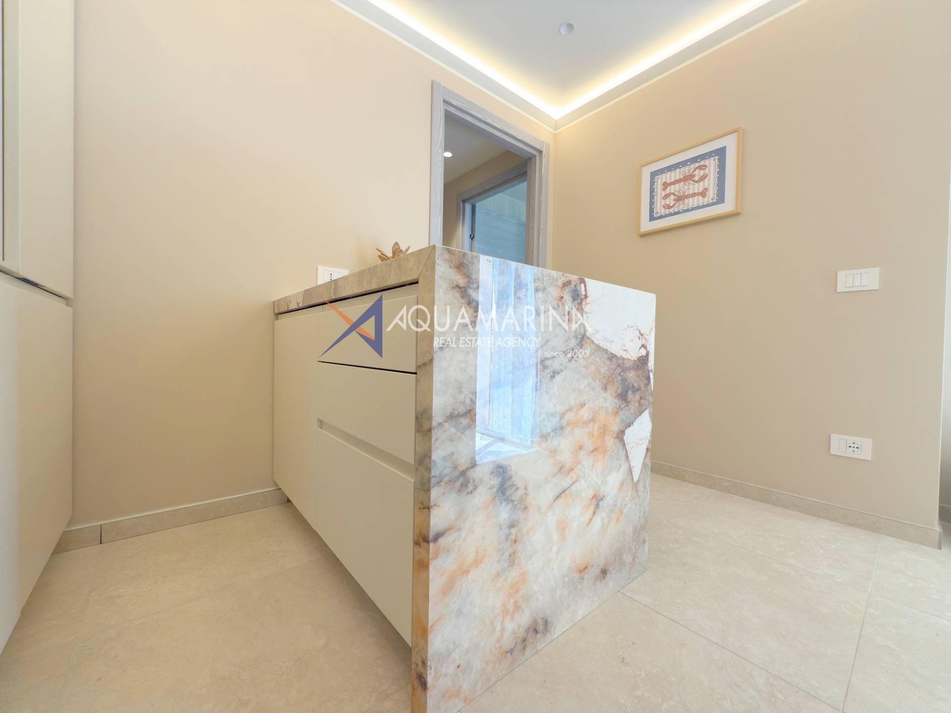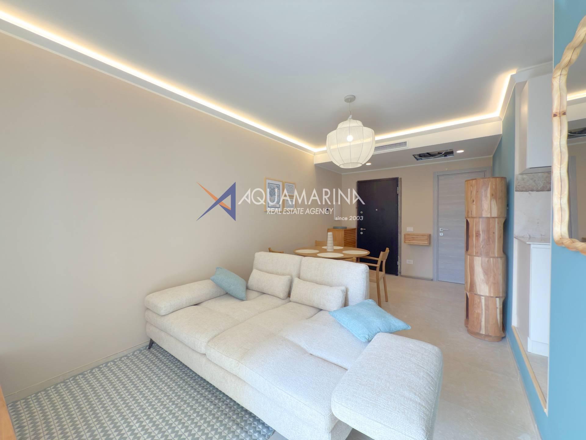 L'appartamento è composto da zona giorno con cucina a vista, disimpegno, una camere da letto, bagno e balcone per rilassarsi all'aria aperta, parziale vista mare.