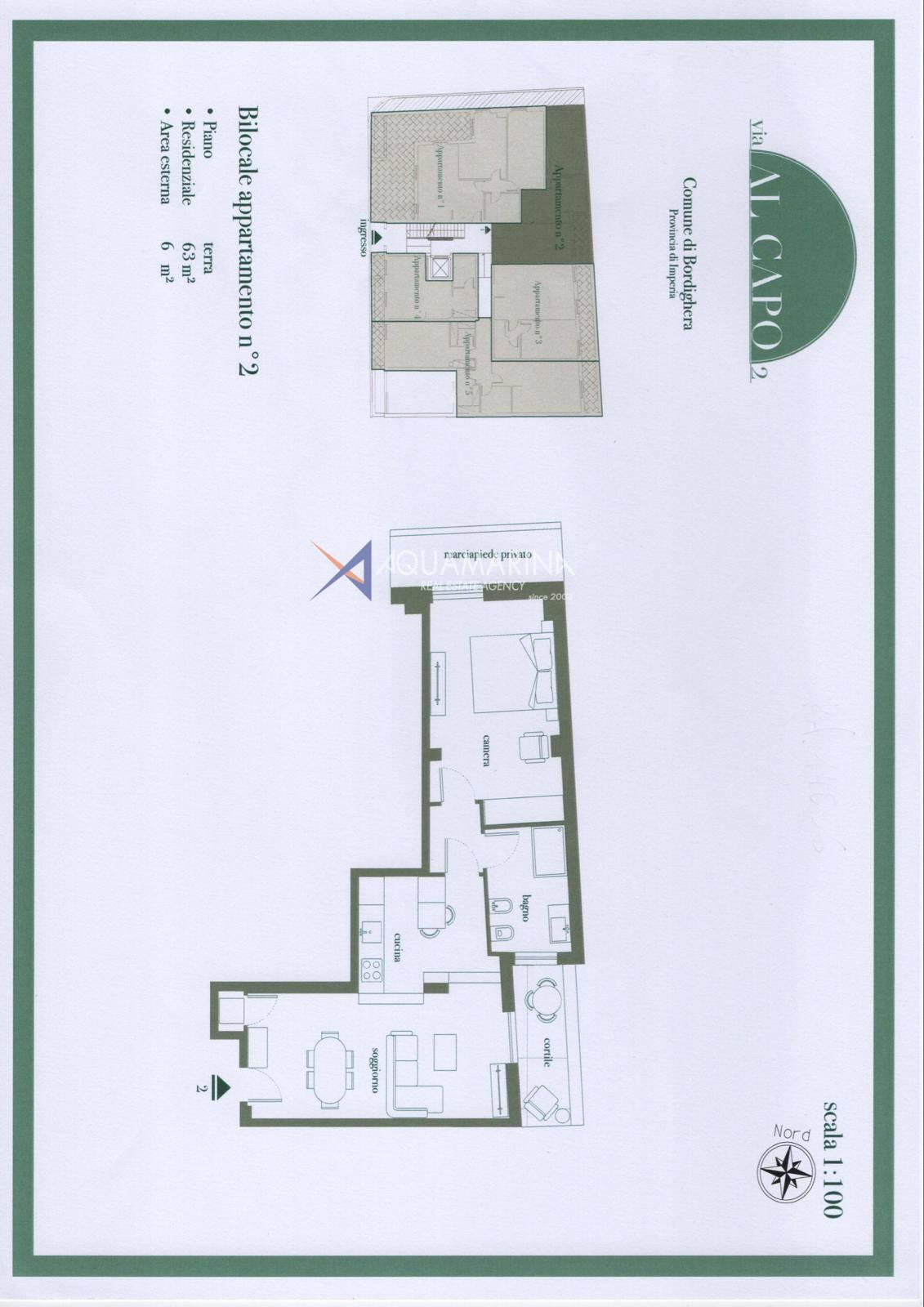 All'ingresso del bellissimo borgo storico, nel palazzo esclusivo di nuova costruzione denominato "Via al Capo", a Bordighera Alta, si vende bilocale di 63 mq. al piano terreno, con 6 mq. dell'area esterna.