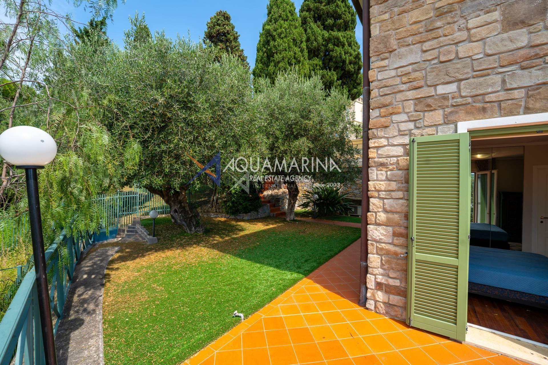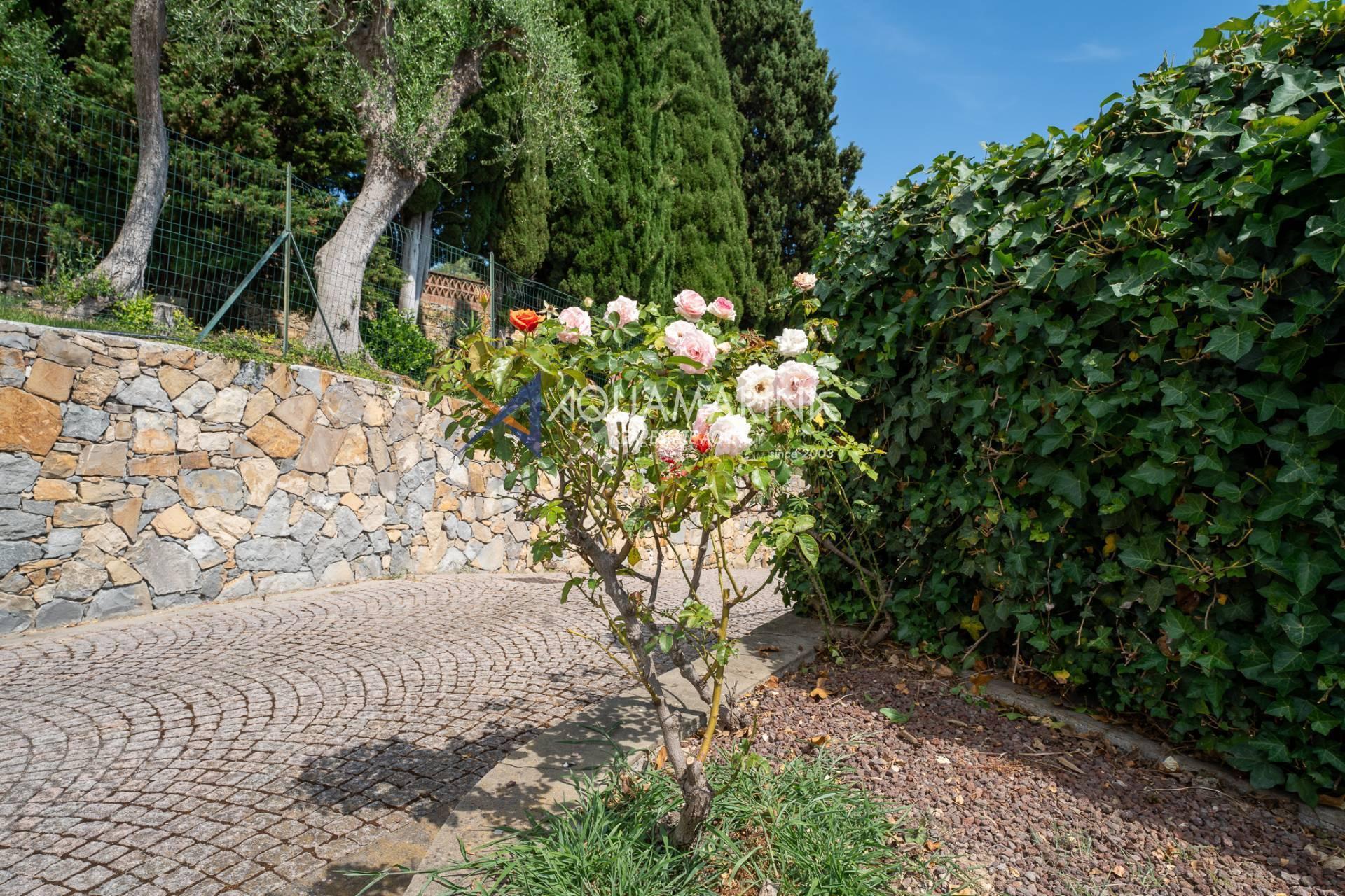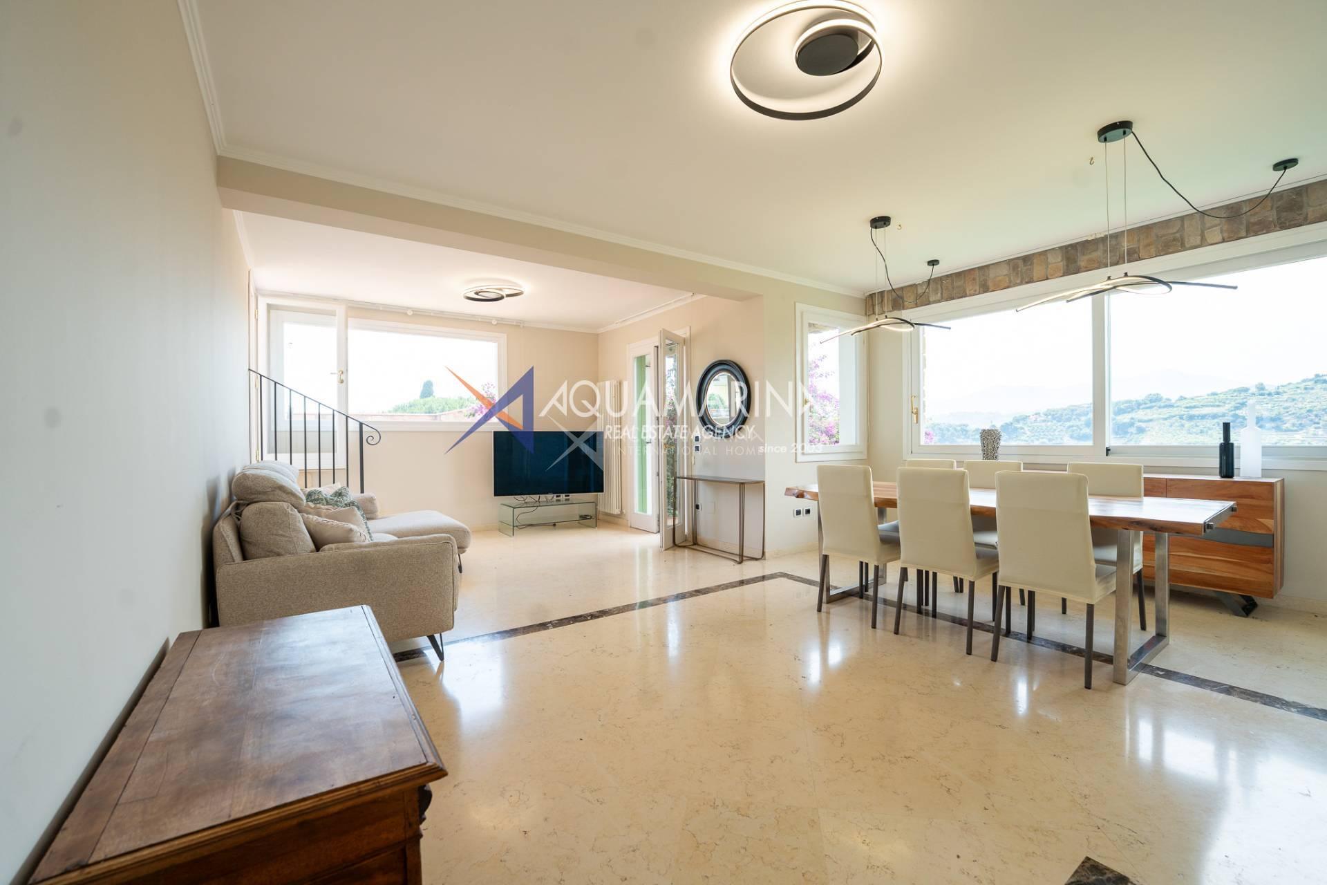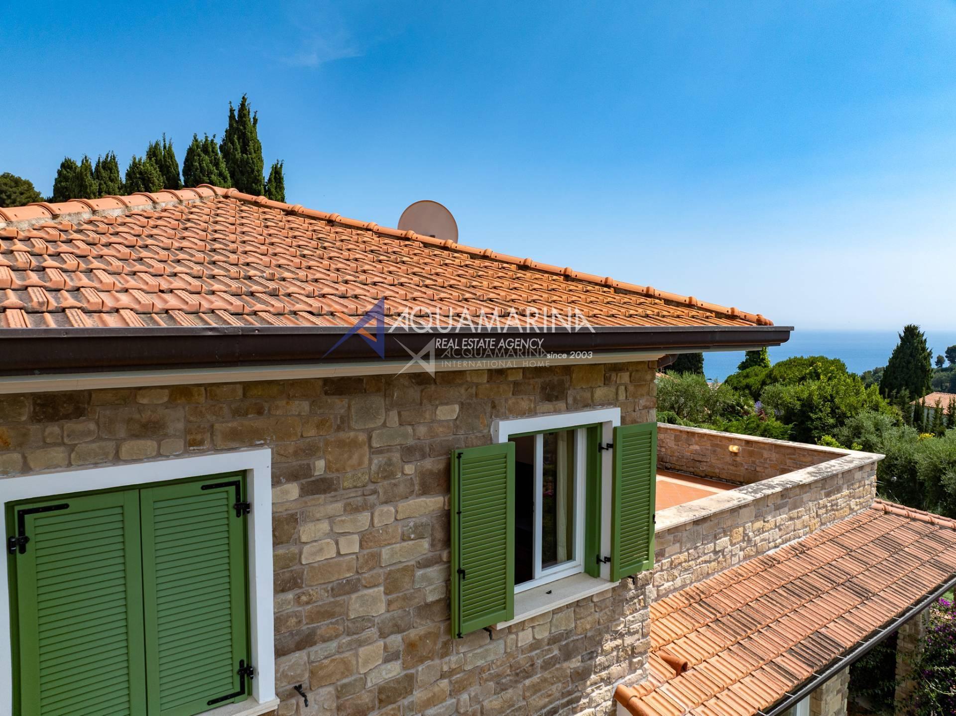 Grazie alla sua esposizione a sud, la villa gode di una splendida luminosità naturale per tutta la giornata e regala una vista mozzafiato sul paesaggio circostante. Un ampio terrazzo panoramico permette di vivere appieno il clima mite della Riviera, ideale per momenti di relax all'aperto.