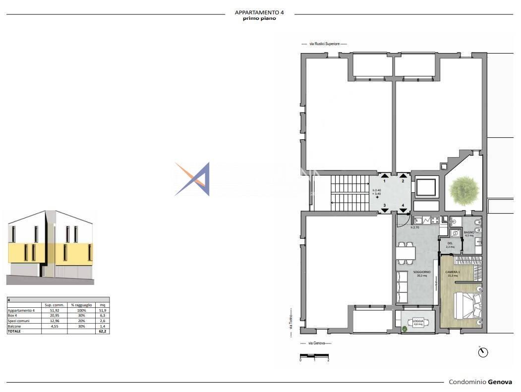 Il condominio "Genova" è inoltre arricchito da un impianto fotovoltaico, che assicura l'indipendenza energetica delle parti comuni, incluso l'ascensore, riducendo al minimo i consumi e i costi energetici.