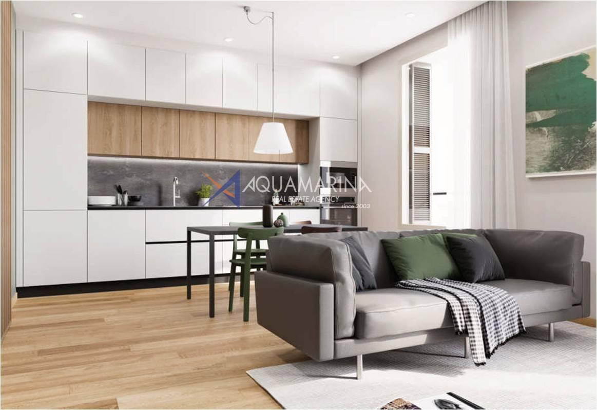 L'appartamento offre una zona giorno luminosa con accesso diretto alla terrazza, perfetta per godere della vista sul mare e delle splendide giornate all'aria aperta.