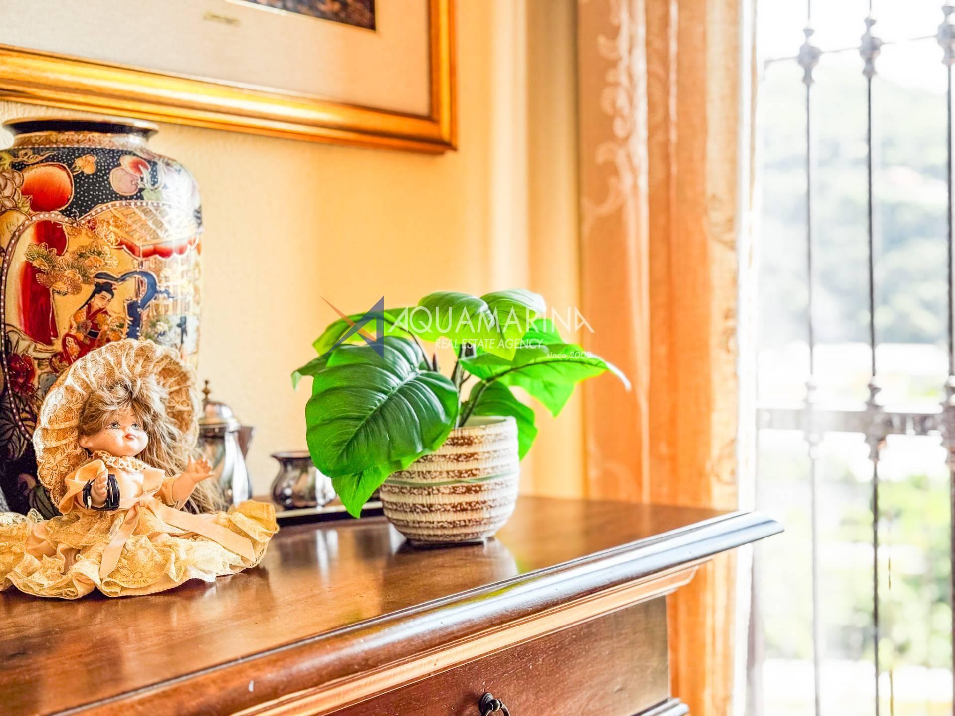 Una scala esterna, circondata da magnifici fiori, ci accompagna al piano terra dove troviamo l'appartamento principale composto da ingresso in salone e zona pranzo, ampia cucina, doppi servizi e due comode camere da letto.