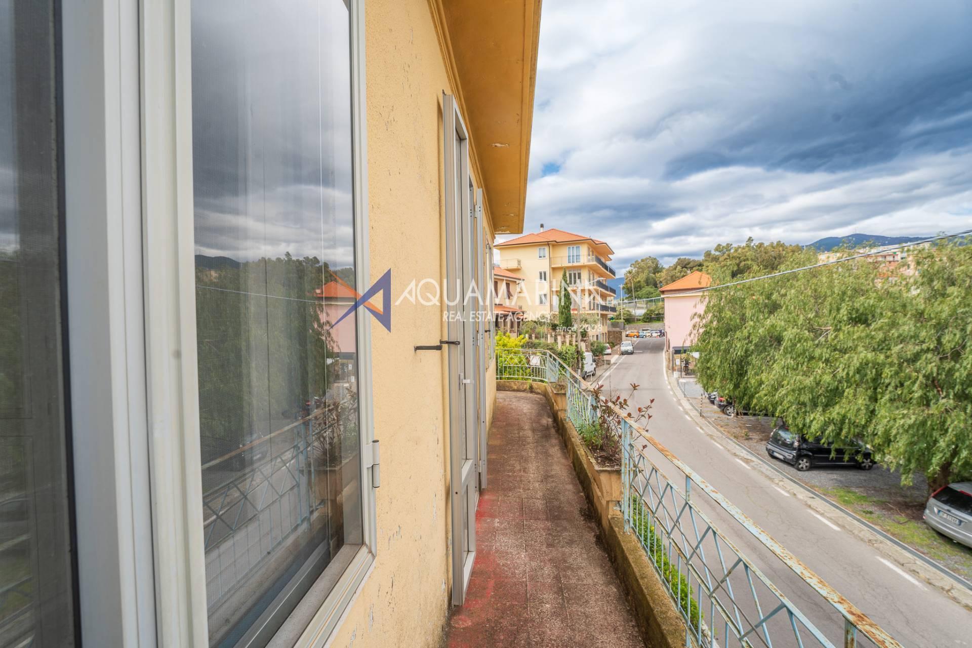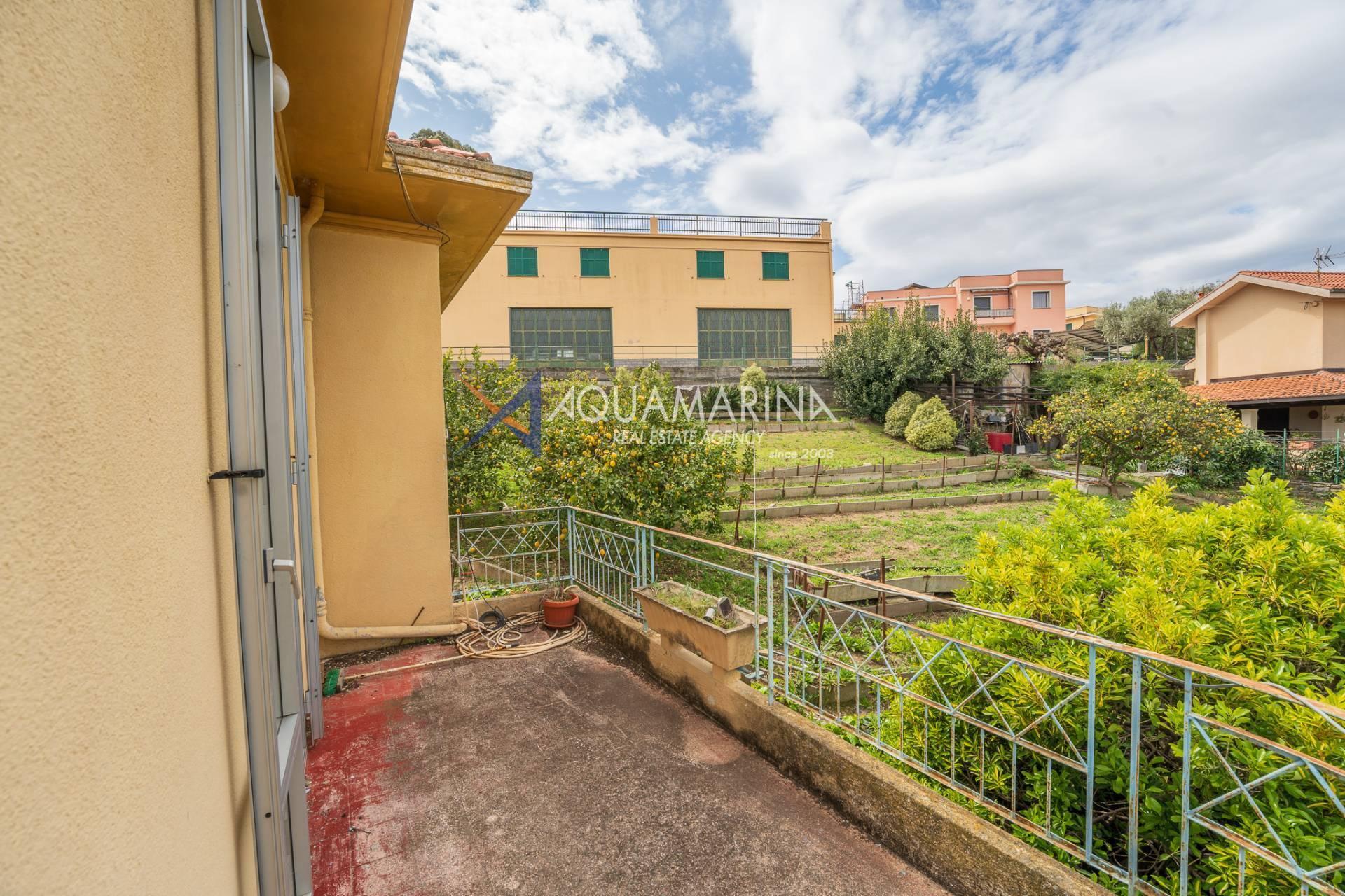 Dal piano superiore, si accede ad un balcone molto abitabile, un angolo di tranquillità che regala una vista aperta sul giardino privato e un incantevole scorcio sul mare, un vero e proprio privilegio.