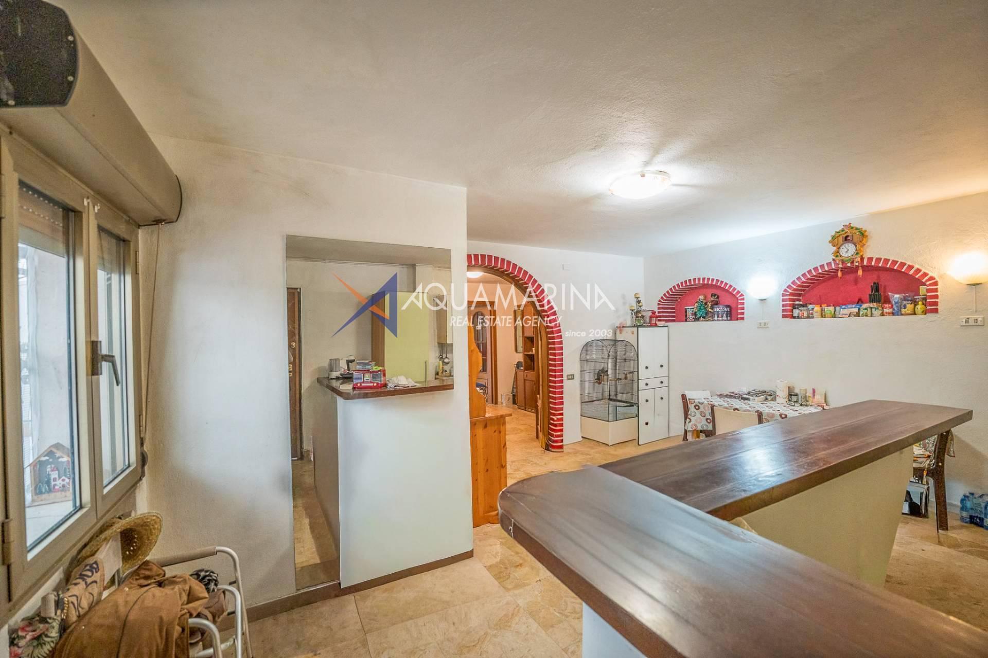 L'ingresso si apre su una spaziosa zona giorno in stile open space, con cucina a vista che dialoga armoniosamente con l'ambiente living, arricchito da un salottino raccolto e accogliente.
