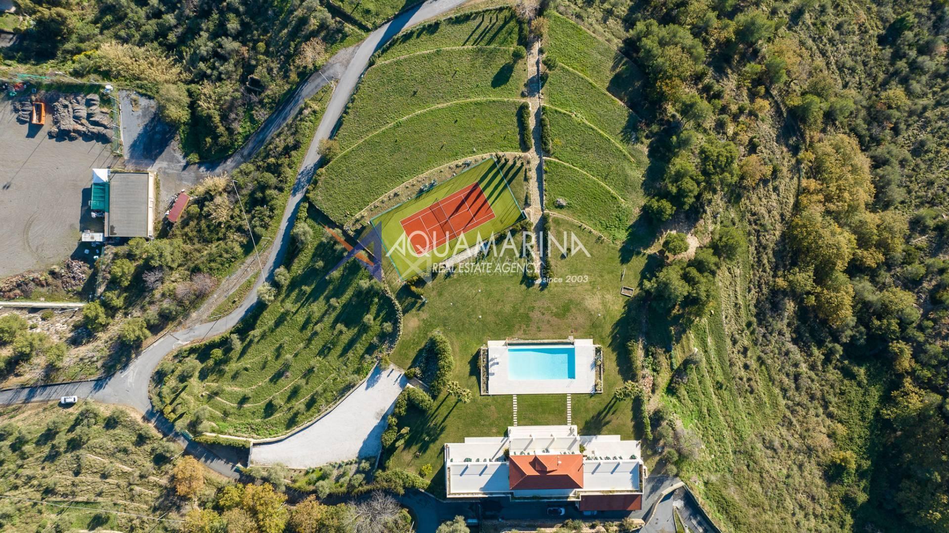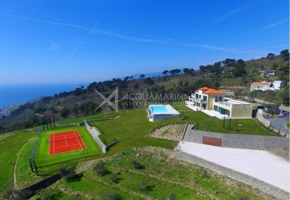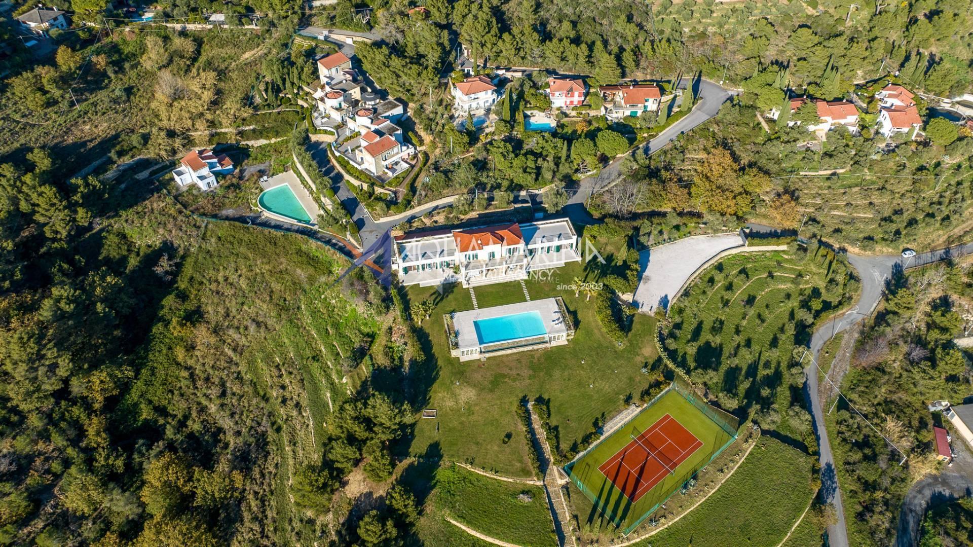 Villa Cipressa, a soli 20 minuti da San Remo e a pochi minuti dal mare. Questa bellissima villa di 800 m2 è un patrimonio UNESCO. E 'circondata da un terreno privato di circa 30.000 m2, costituito da un uliveto, prati inglesi e vegetazione mediterranea. La villa è completata da una piscina con acqua di mare e da un campo da tennis. Si trova su due piani con terrazze panoramiche. Al primo piano, la zona giorno con pavimenti in marmo è composta da un soggiorno, una sala da pranzo, una sala cinema, una sala da biliardo con cristallo nero, una biblioteca con un pianoforte, una cucina interna e una cucina aperta. La zona notte con enormi pavimenti in parquet dispone di 8 camere da letto, di cui 3 suite con bagno e vasca idromassaggio, 7 bagni con marmo in bottiglia, travertino e carrara. Ci sono anche 2 appartamenti per gli ospiti, una palestra e un ampio parcheggio. Venduto in completo con tutti i mobili. è possibile atterrare in elicottero.