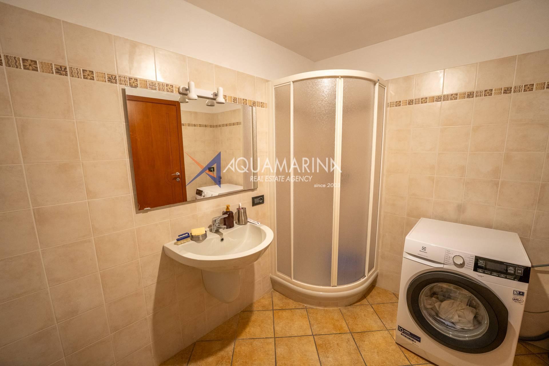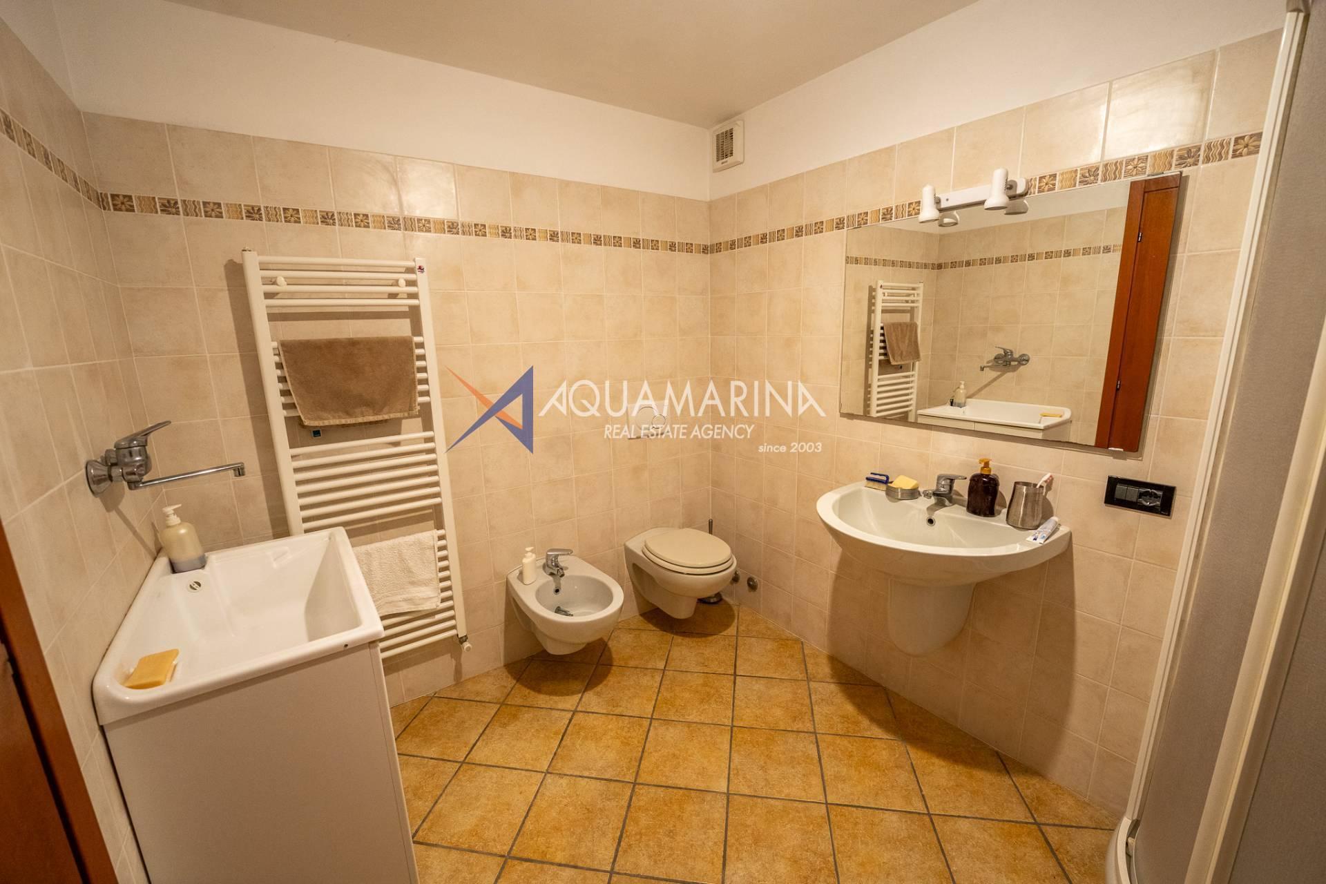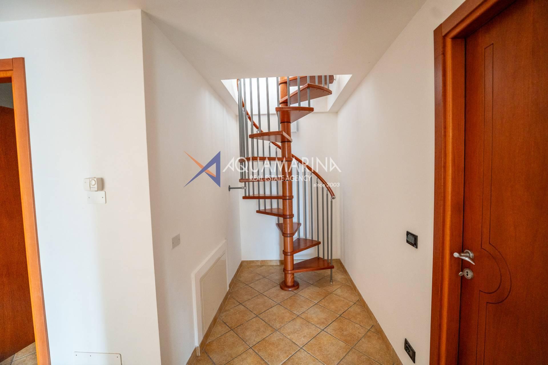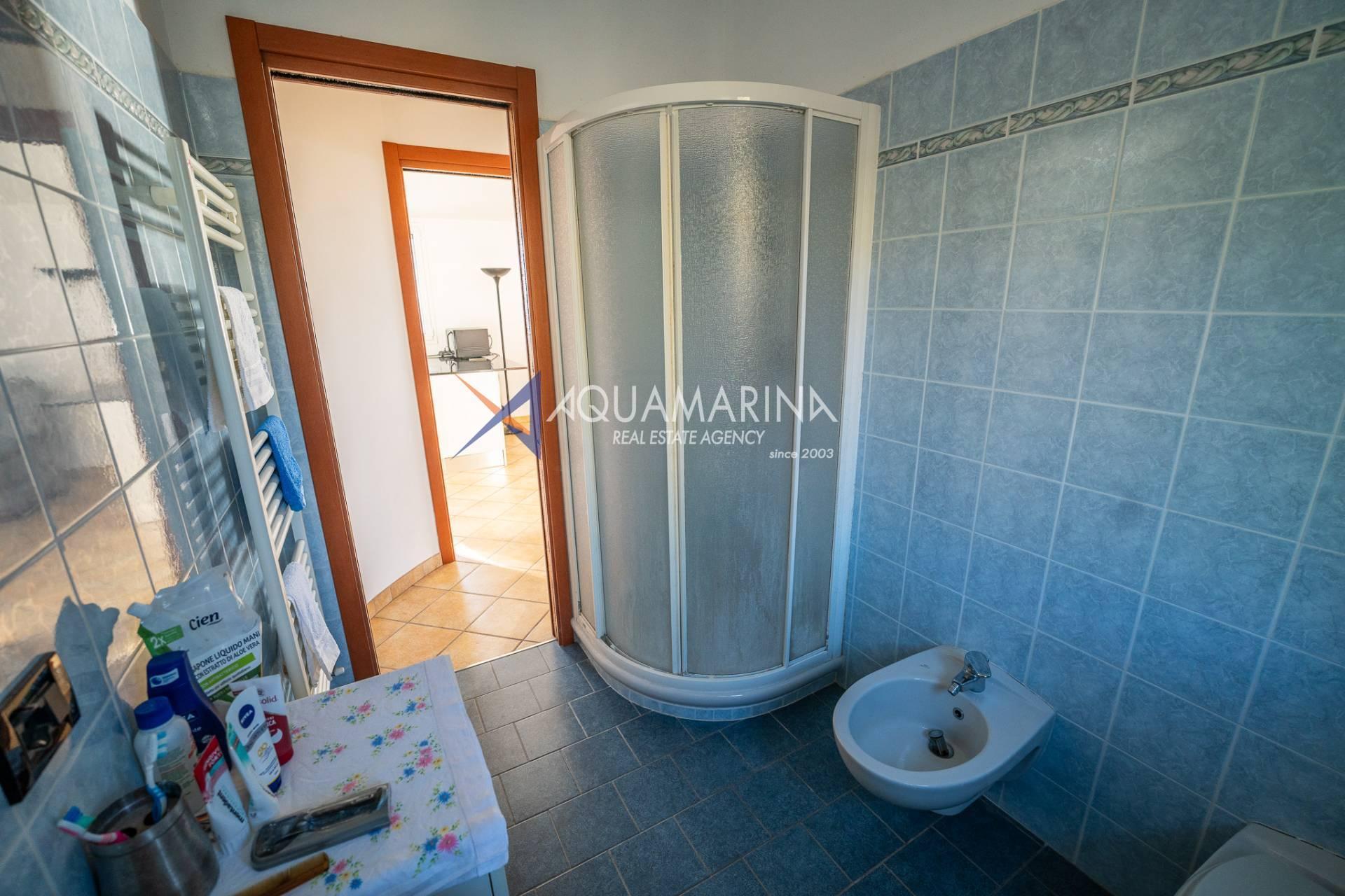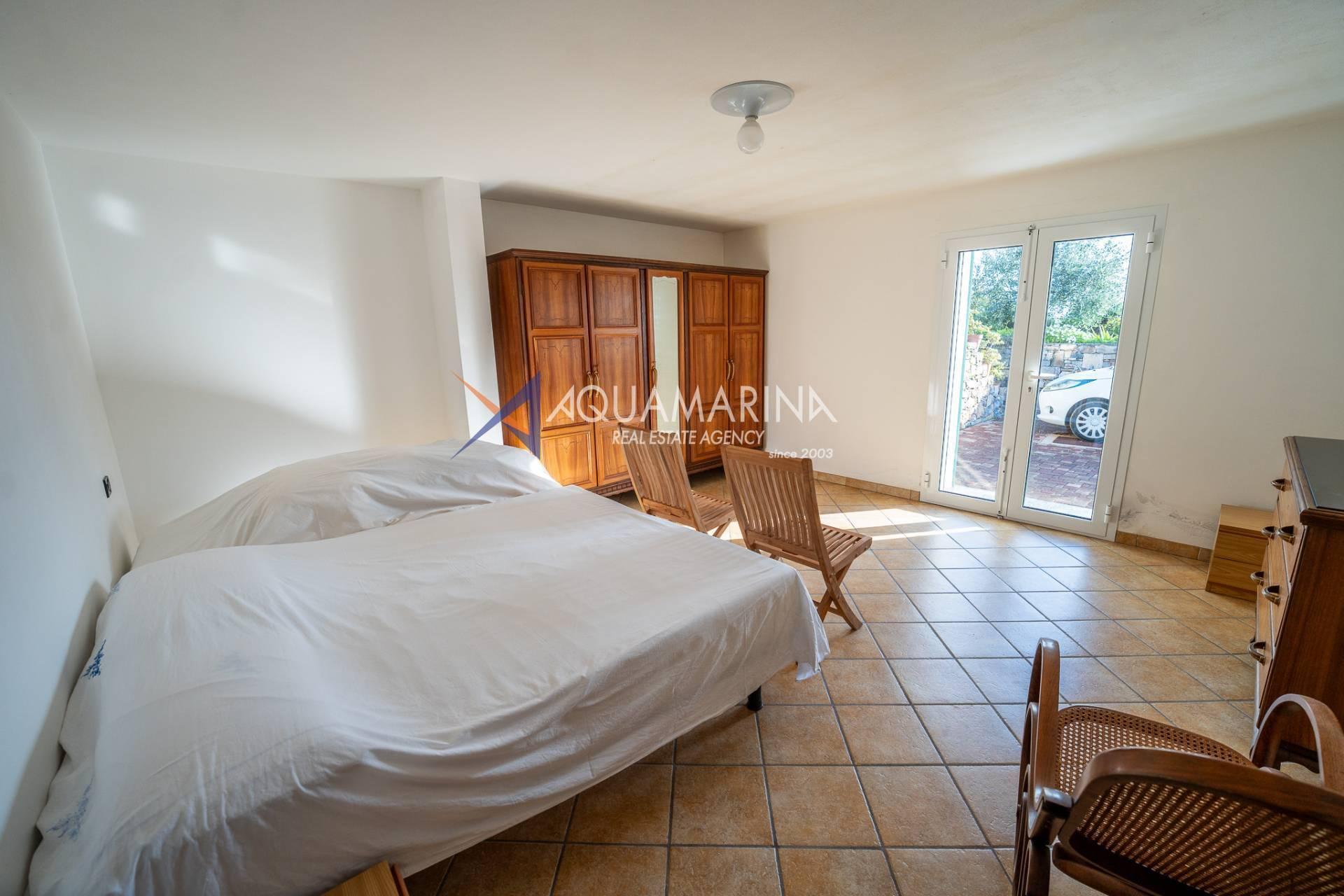 L'abitazione si sviluppa su due livelli: al piano terra l'ingresso si apre su un'ampia e luminosa zona living con cucina a vista, baciata dal sole e con incantevole affaccio sul mare; la zona notte comprende una spaziosa camera matrimoniale con porta finestra vista mare e un ulteriore ampio locale, attualmente adibito a studio/zona hobby, facilmente trasformabile in seconda camera da letto. Completa il piano un bagno finestrato con box doccia.