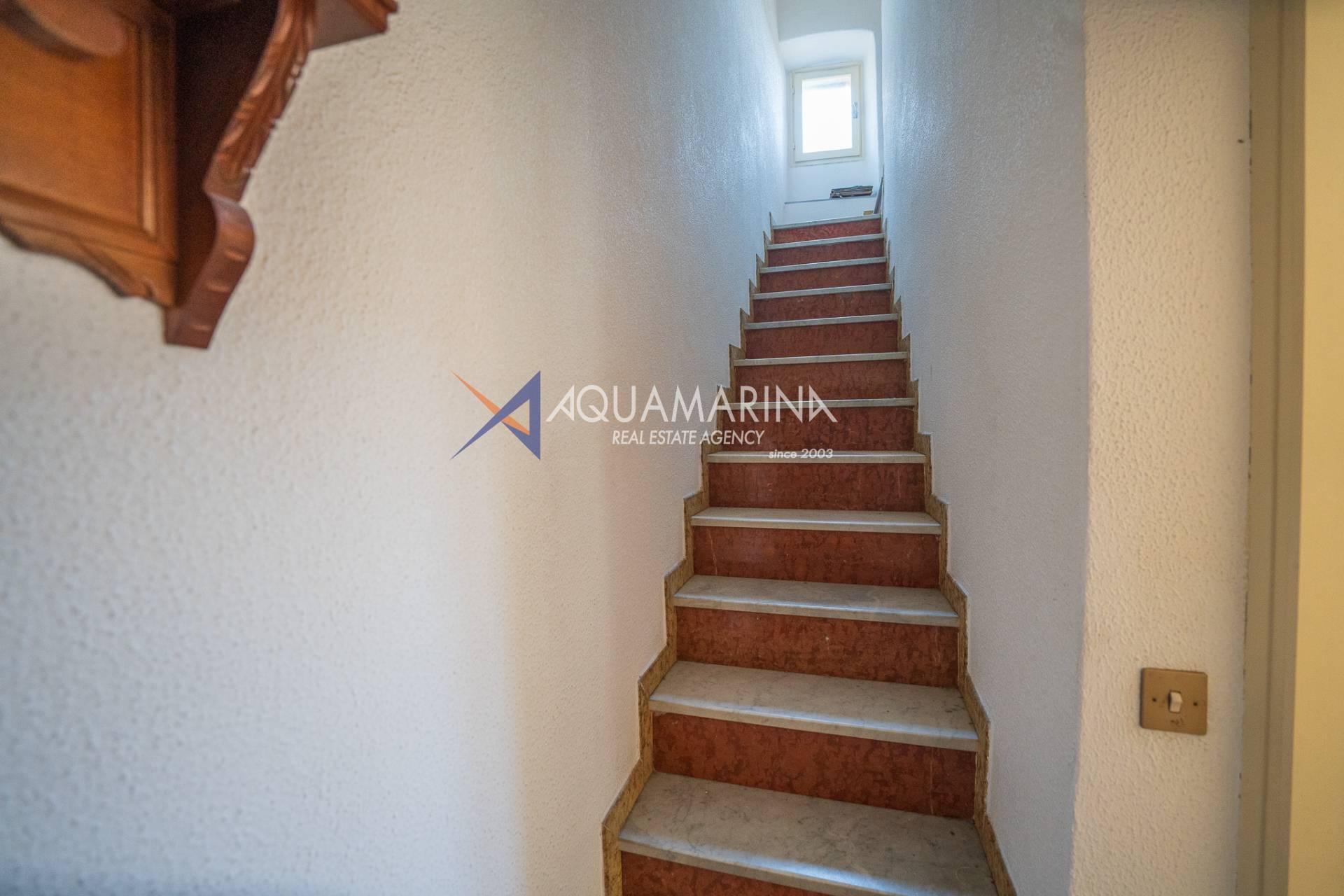 Uno dei punti di forza dell'immobile è la terrazza panoramica di 24 m², dalla quale si può godere di una suggestiva vista sul mare, ideale per momenti di relax o convivialità all'aperto. A completare gli spazi esterni troviamo un giardino privato di circa 45 m², perfetto per chi ama vivere all'esterno, e un magazzino annesso di 15 m², comodo come deposito o spazio di servizio.