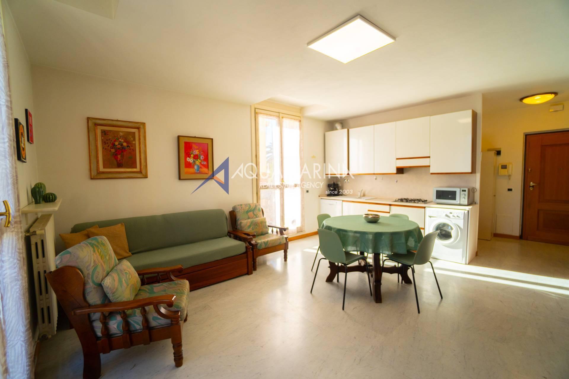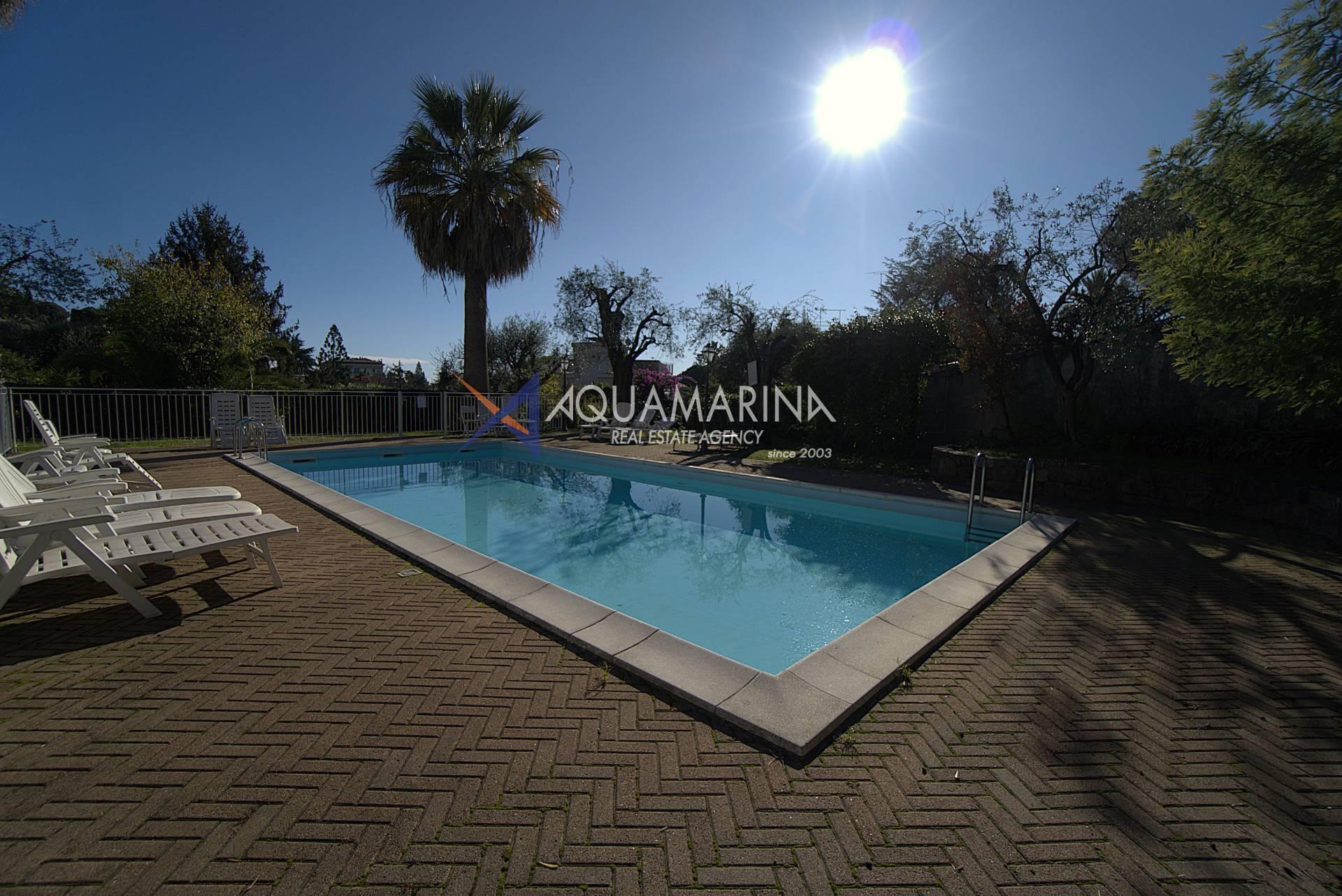 Al piano d'arrivo troviamo un ampio e luminoso soggiorno con angolo cottura che si affaccia sul terrazzo con incantevole e rilassante vista sul parco e sulla piscina. Completa questo livello un bagno con doccia che serve la zona giorno.