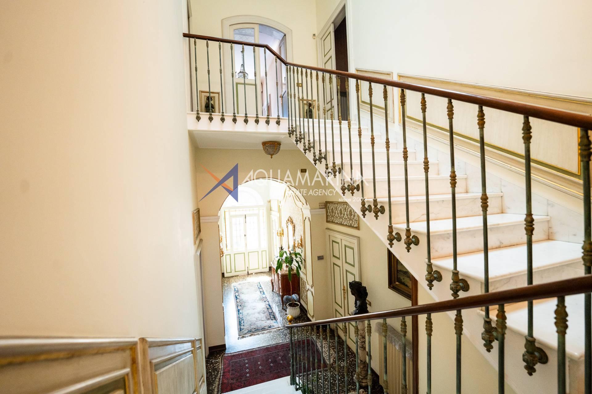 La villa si sviluppa su tre livelli collegati da un'elegante scala interna in marmo ottocentesca, con materiali dell'epoca che conferiscono un fascino e un lusso senza tempo. L'accesso avviene tramite cancello carraio su un terrazzo panoramico e botanico, che introduce all'ingresso principale con scala a vista con grande Lucernaio caratterizzato da vetro Cattedrale.