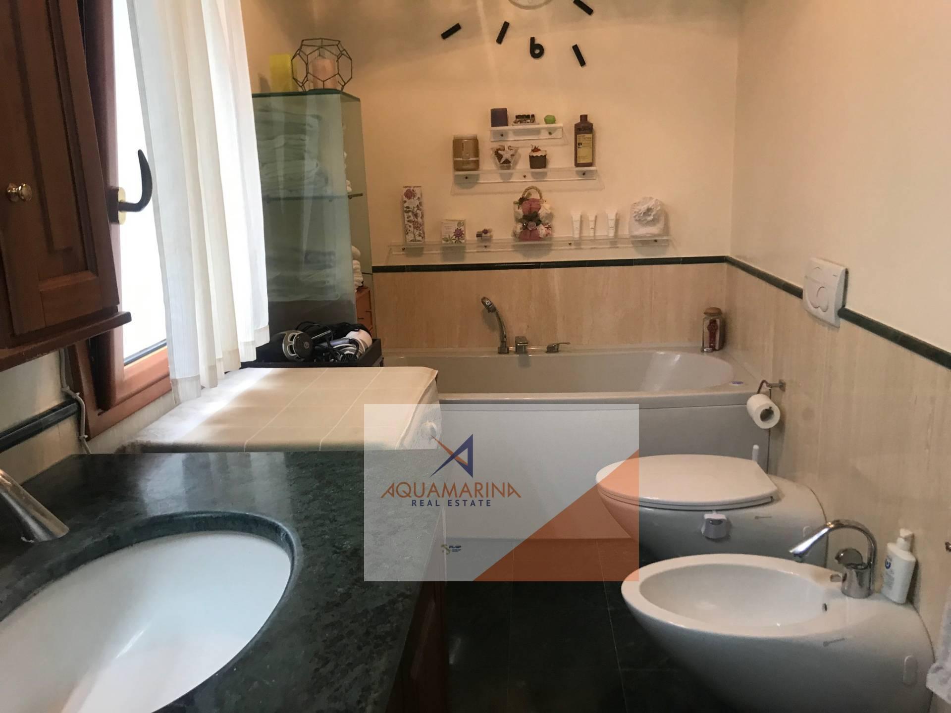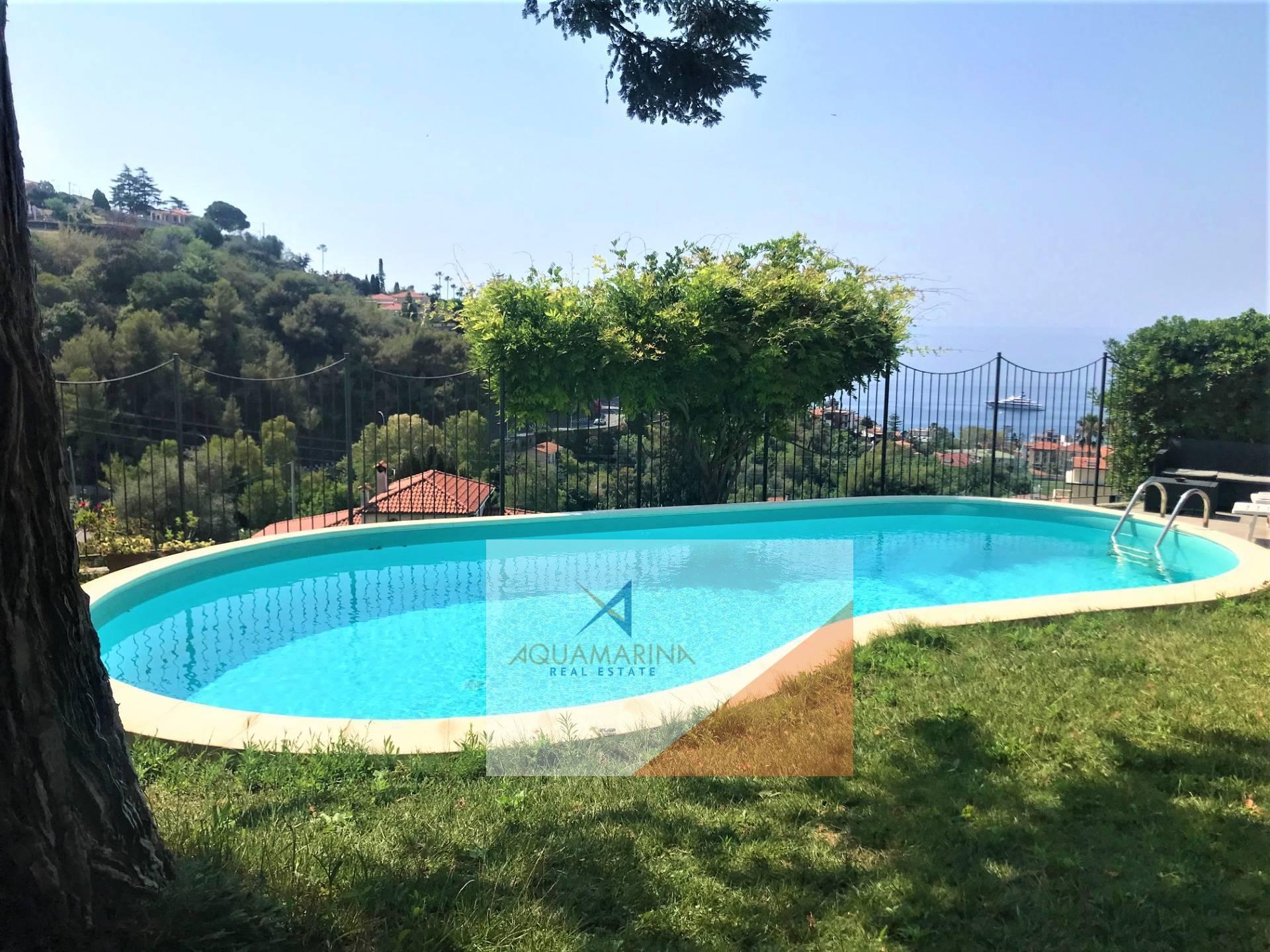 Ospedaletti, vi proponiamo a 3 minuti esatti dal centro, appartamento in villa con piscina privata, posto al pianto primo con il suo ingresso indipendente, giardino privato. L'appartamento è in ottima condizione con pavimenti in parquet, aria condizionata. L'alloggio è composto da: un ingresso, cucina abitabile, soggiorno, tre camere matrimoniali, due bagni, studio, due ampi terrazzi con vista mare. Impianti a norma, tapparelle elettriche, riscaldamento autonomo, il giardino con zona Barbecue, spazio giochi, prato all'inglese, piante e fiori, possibilità di 2 posti auto a € 20.000 e di un box auto €20.000