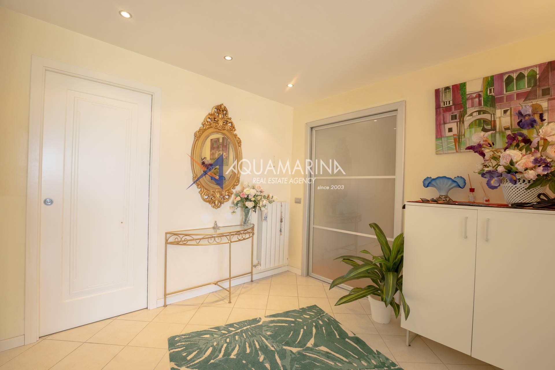 L'alloggio, molto luminoso grazie alla sua favorevole esposizione, si propone in ottime condizioni e arredato con gusto ed è così composto: ingresso, grande soggiorno con accesso alla magnifica terrazza fronte mare, cucina abitabile, zona notte con due camere matrimoniali e due bagni.