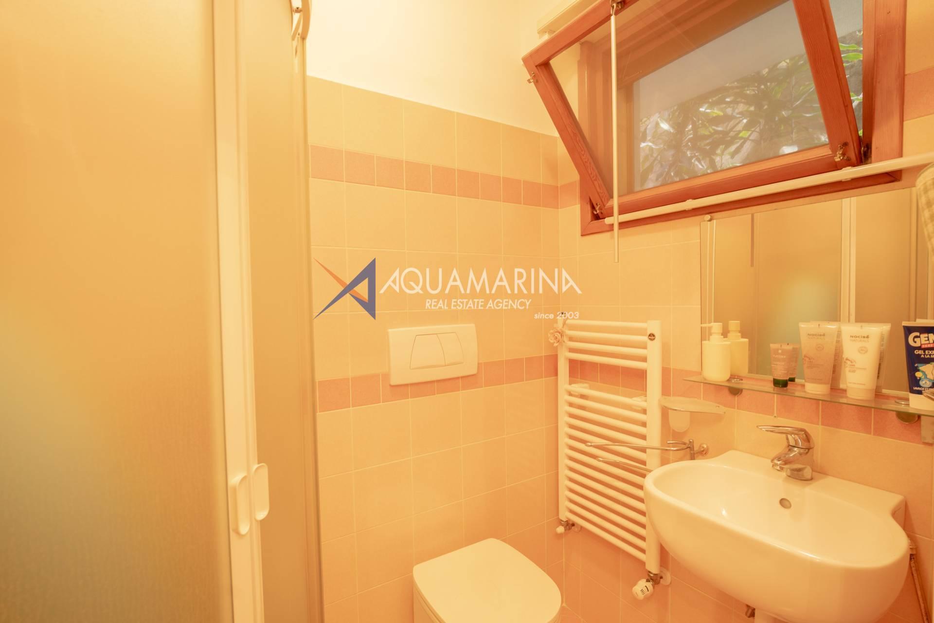 L'appartamento è dotato, inoltre, di un grazioso giardinetto privato ideale per trascorrere momenti di relax all'aria aperta e godere della magnifica vista mare.