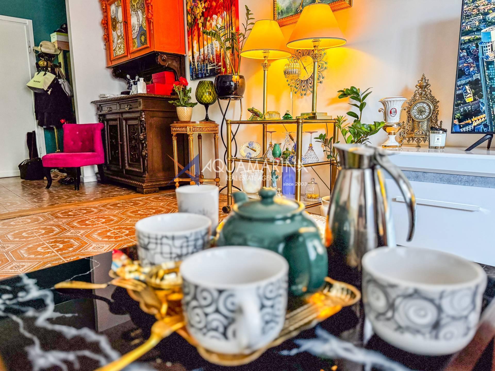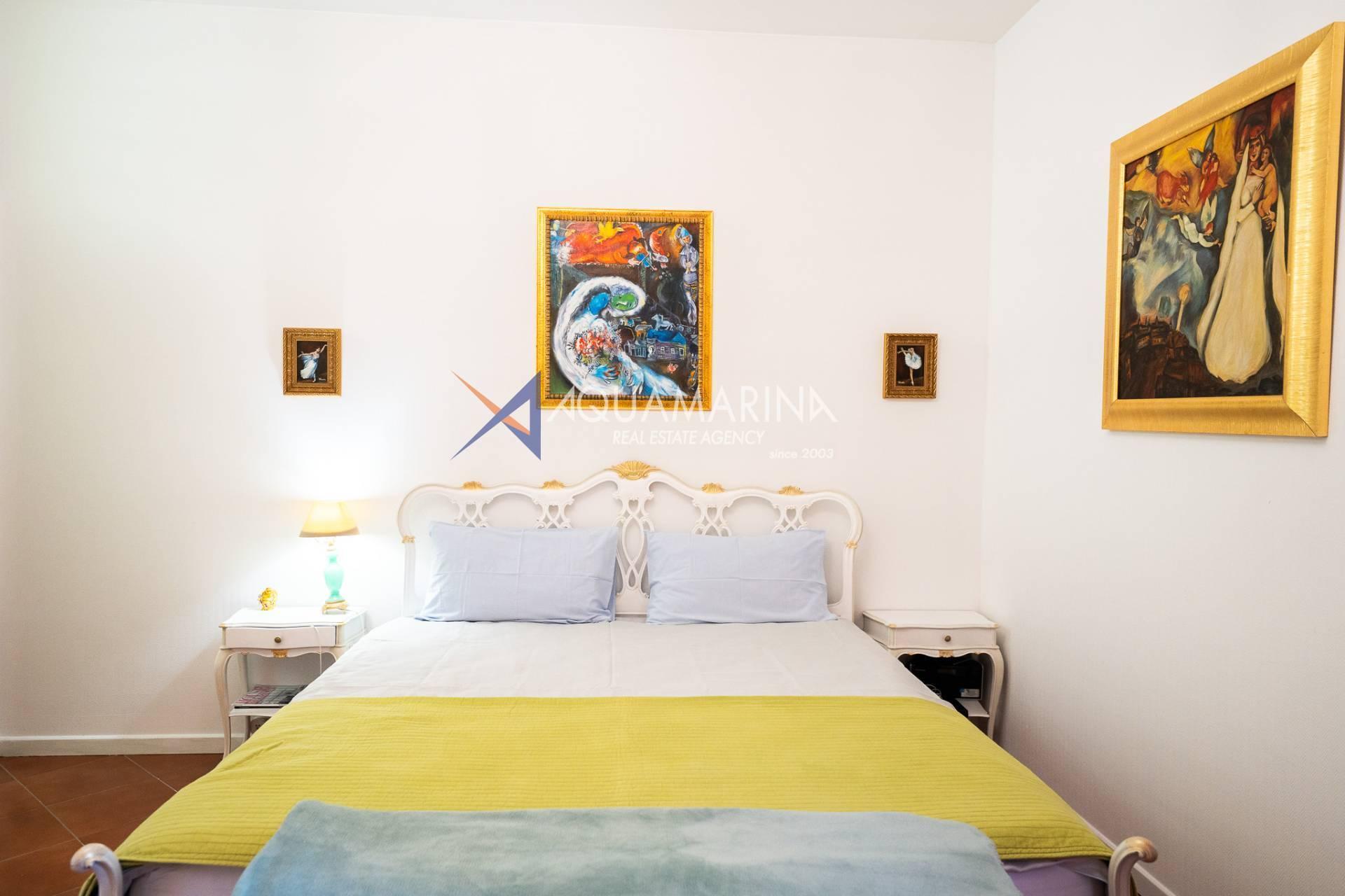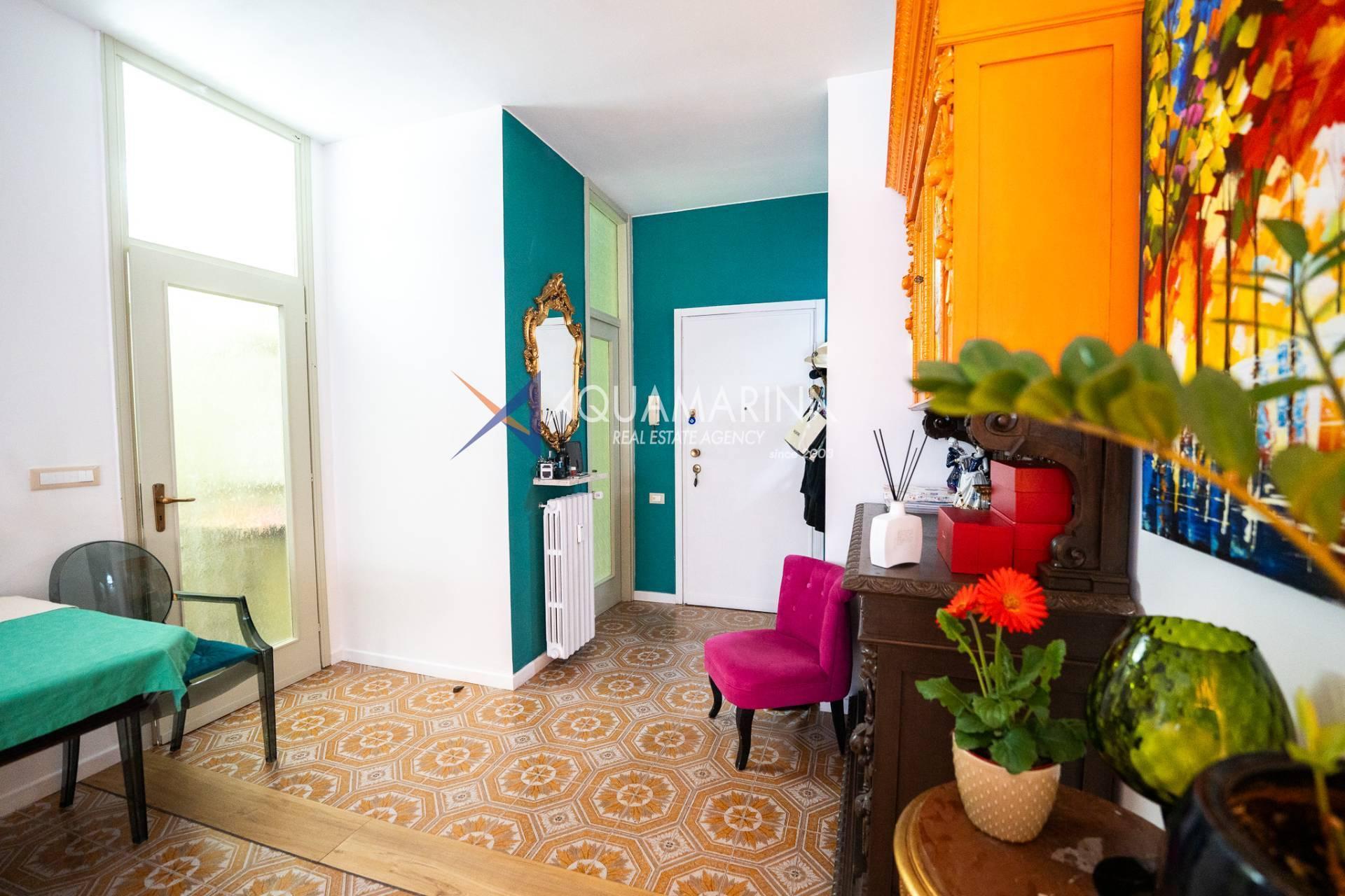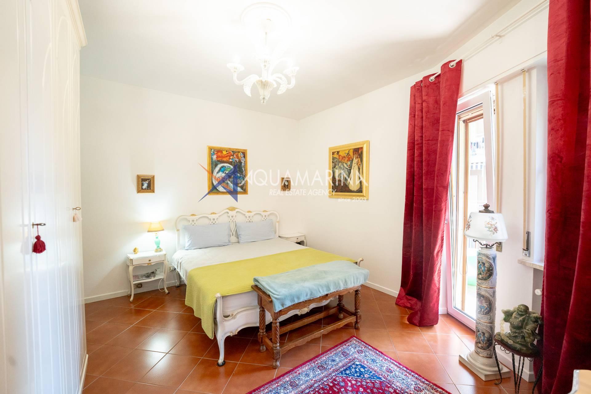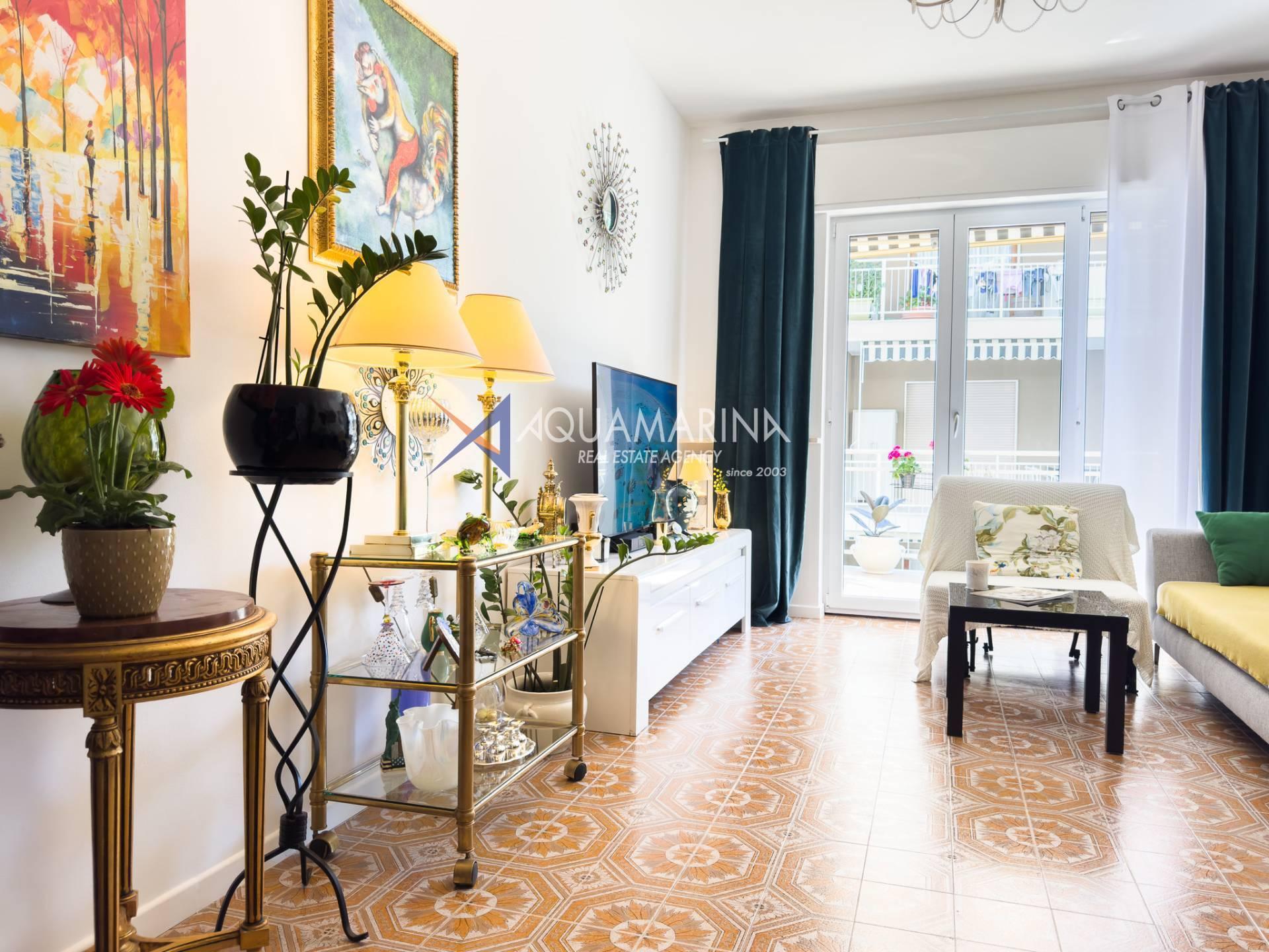 L'ingresso, che si apre su un luminoso soggiorno arredato, con accesso al terrazzo, dove è possibile pranzare all'aperto e godere di momenti di relax con la vista mare bellissima.