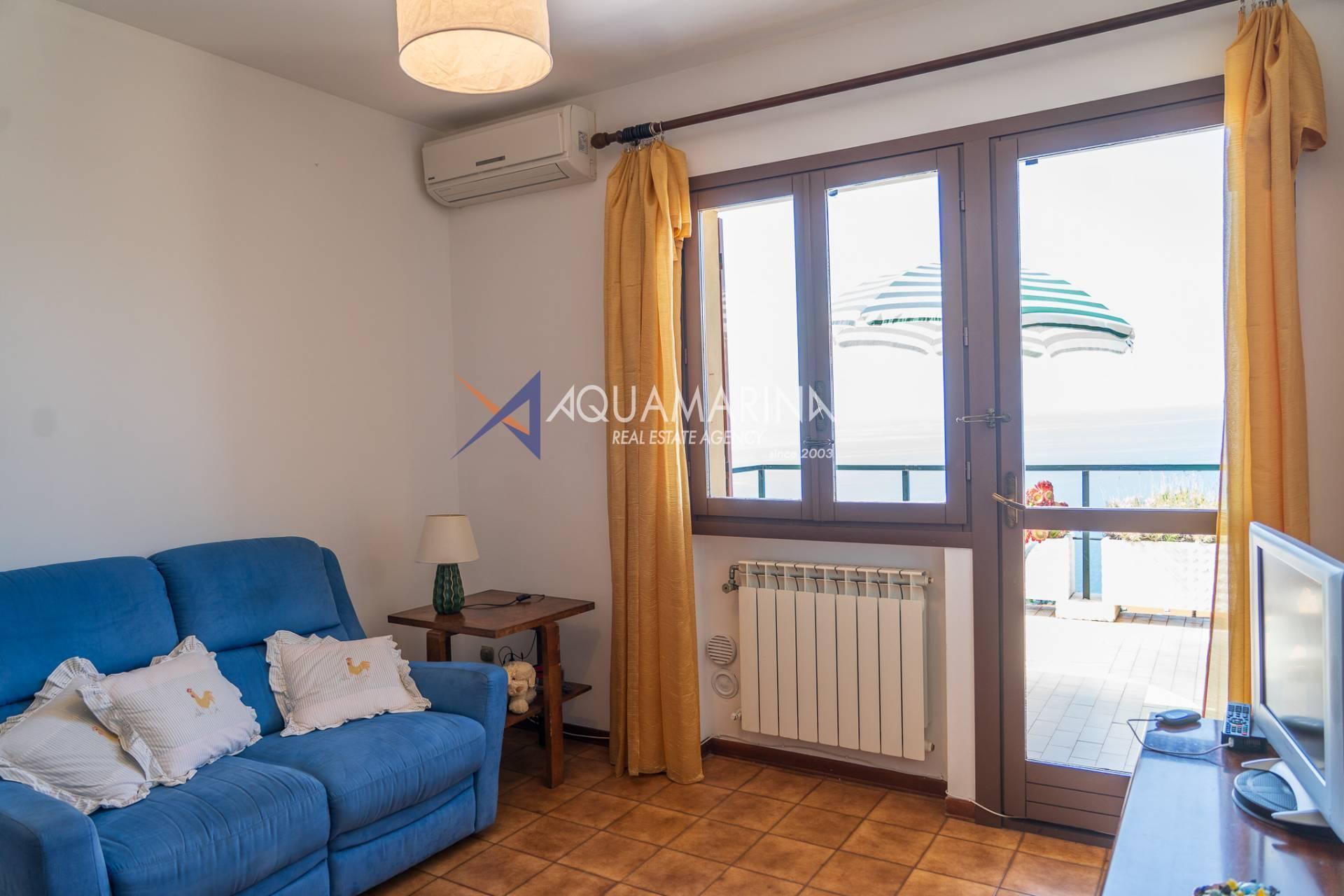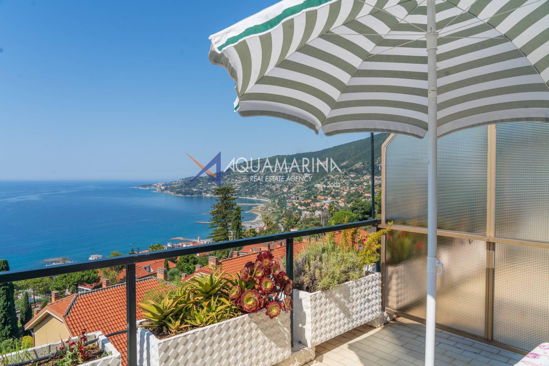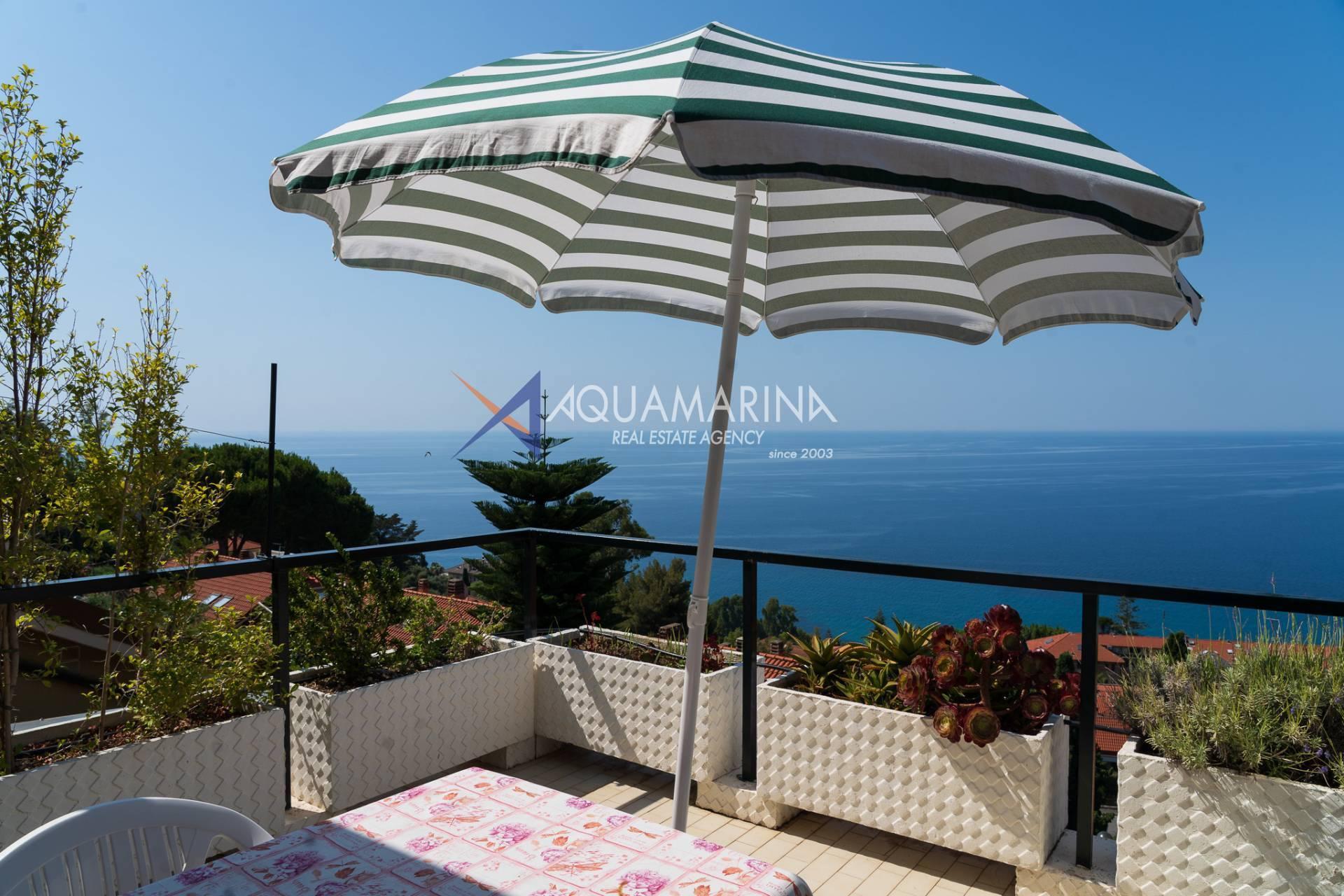 L'immobile dispone di due ingressi indipendenti, uno per ciascun piano, ed è composto al piano principale da ingresso, soggiorno con cucina a vista, camera da letto, bagno e un ampio terrazzo con splendida vista aperta sul mare e sul centro di Ospedaletti.