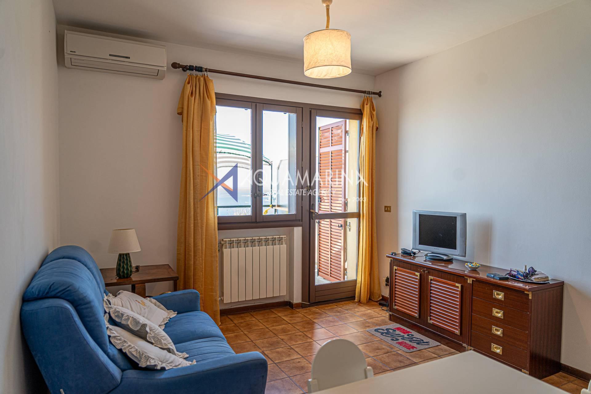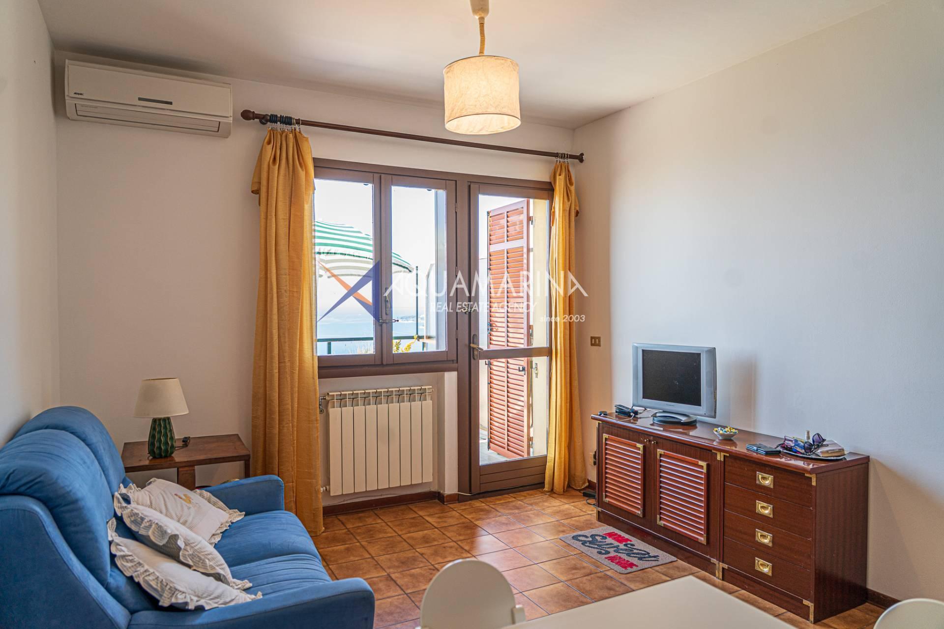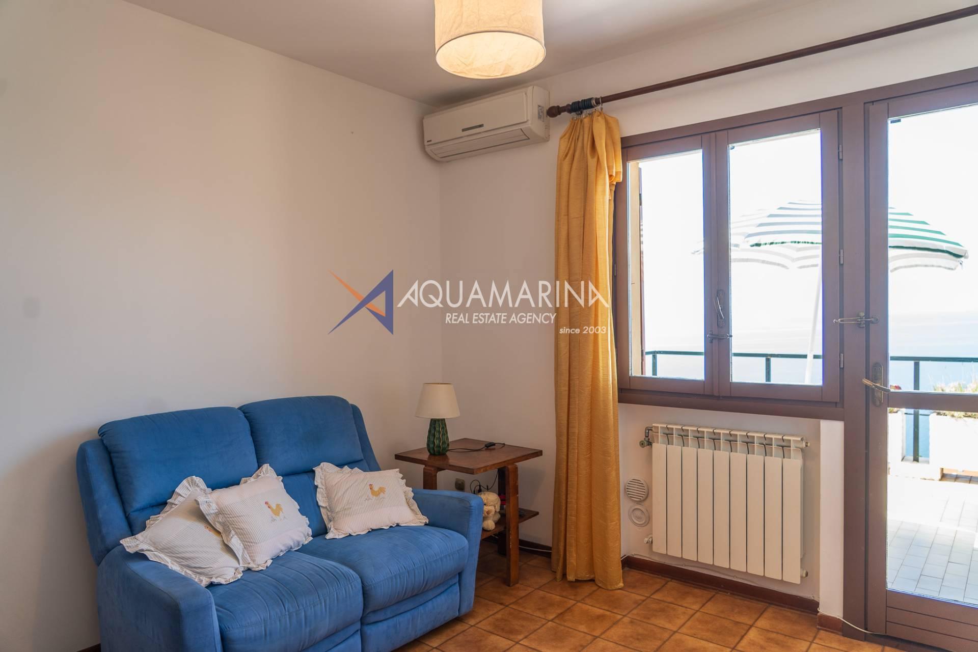 L'immobile dispone di due ingressi indipendenti, uno per ciascun piano, ed è composto al piano principale da ingresso, soggiorno con cucina a vista, camera da letto, bagno e un ampio terrazzo con splendida vista aperta sul mare e sul centro di Ospedaletti.