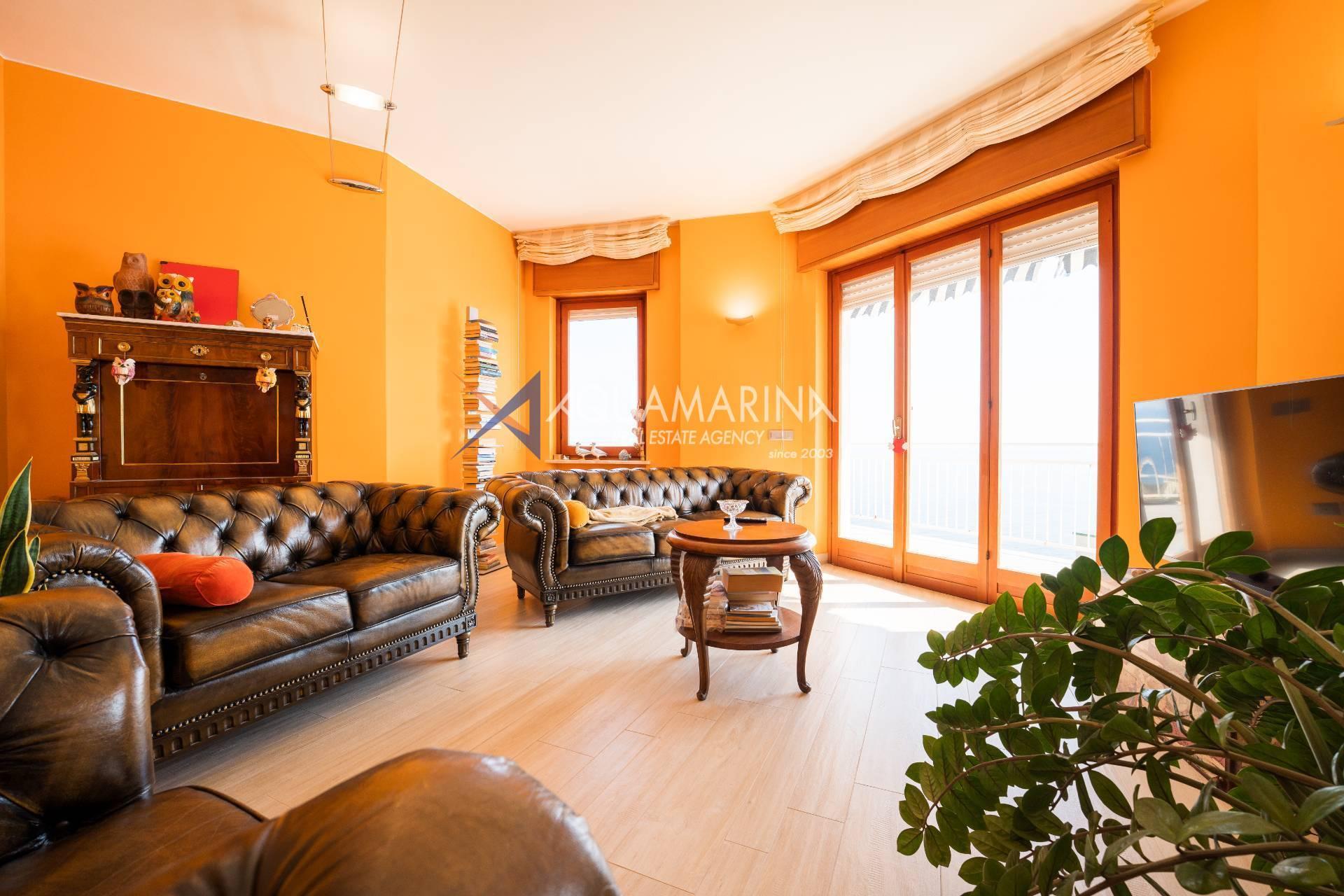 A Ospedaletti, vendiamo appartamento esclusivo, con vista mare mozzafiato. In contesto residenziale con Piscina e Portineria, il Condominio Patrizia è un complesso fronte mare in una delle zone più belle e caratteristiche del Ponente Ligure, proponiamo in vendita un appartamento ristrutturato, con un terrazzo di 50 mq che offre una vista mare eccezionale che spazia da Sanremo alla Francia. In una palazzina di 5 piani, l'appartamento si trova al terzo piano con ascensore, è stato completamente ristrutturato e viene venduto arredato, è cosi composto: Ingresso, grande salone openspace con cucina a vista, 2 bagni, 2 camere, grande cabina armadio, ripostiglio, terrazzo di 50 mq che gira intorno su 2 lati, completa la proprietà un box di circa 20 mq e un posto condominiale di proprietà.