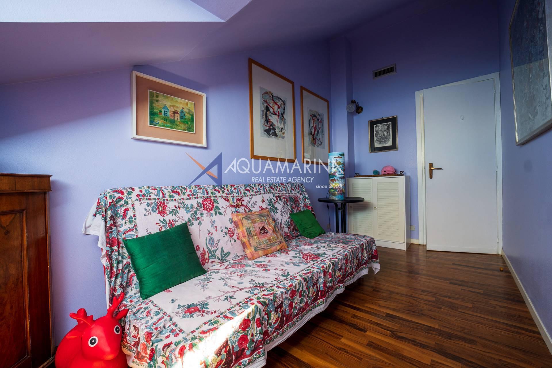 Ospedaletti in splendida residenza storica circondata da un curatissimo parco secolare, con campo da tennis, piscina e servizio di portineria vendiamo ampio appartamento all'ultimo piano disposto su due livelli.