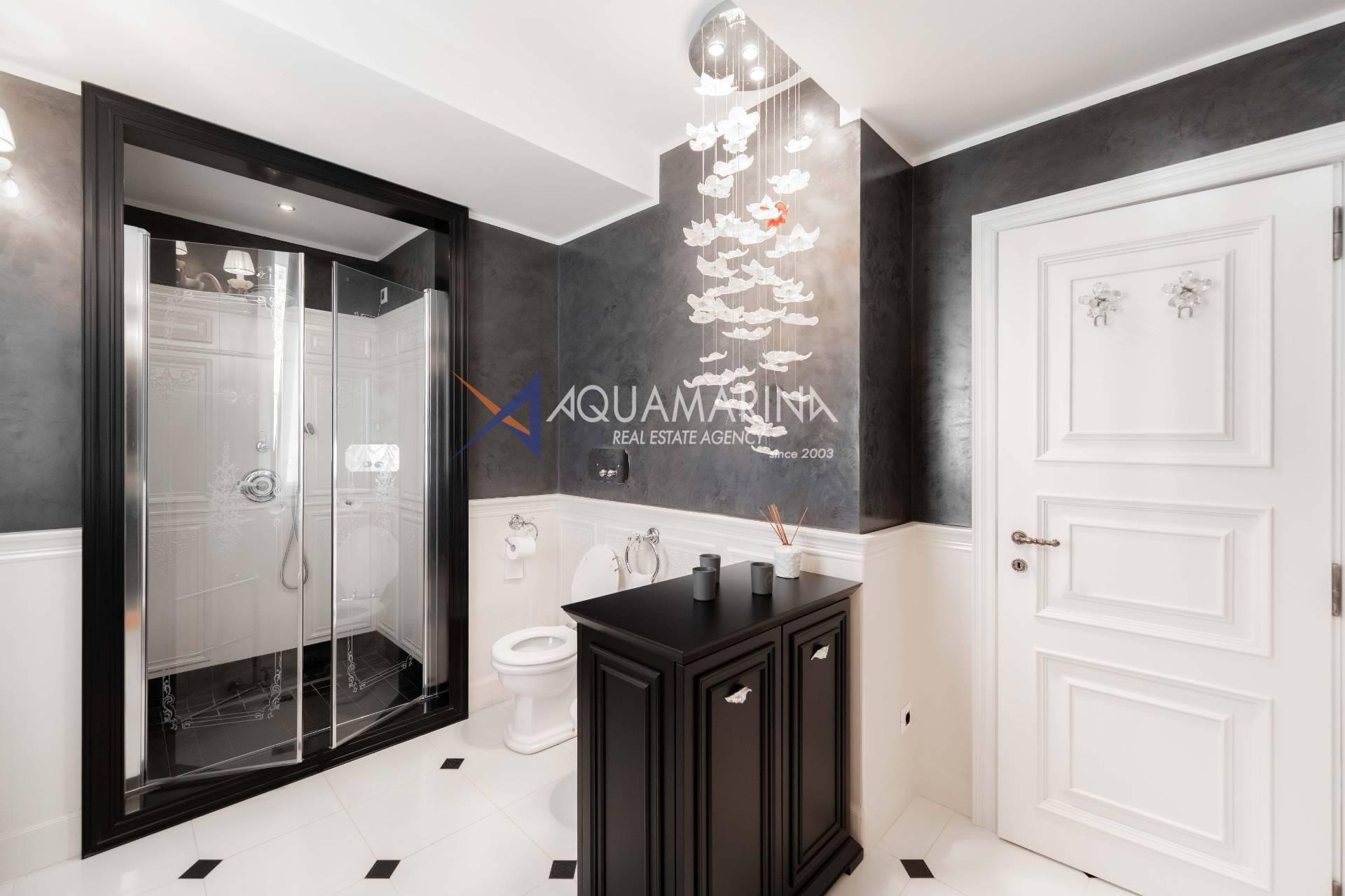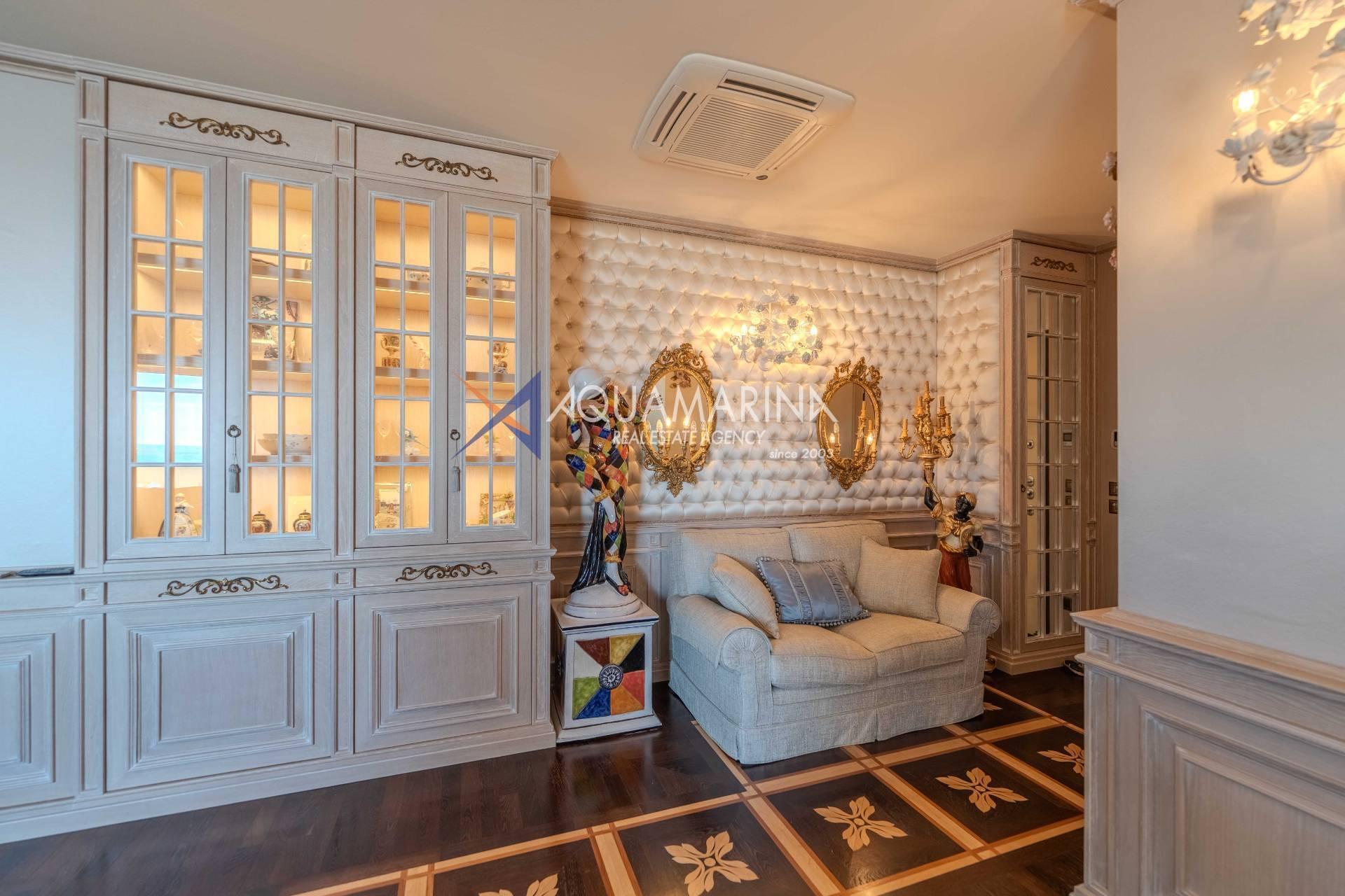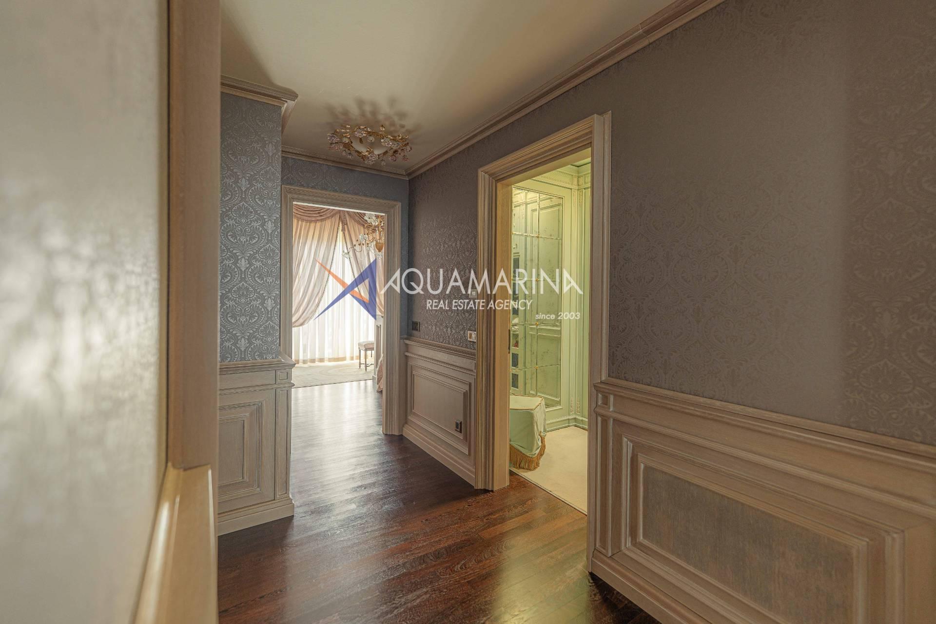 Proponiamo un ampio attico 205 m2 con terrazza e incantevole vista mare, garage e cantina. La disposizione interna comprende ingresso, ampio soggiorno open-space con camino e zona pranzo, cucina, due camere da letto (una con bagno en suite), secondo bagno, lavanderia, due cabine armadio, ripostiglio e grande terrazza.