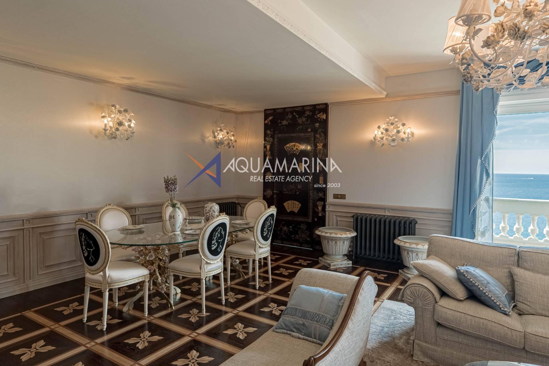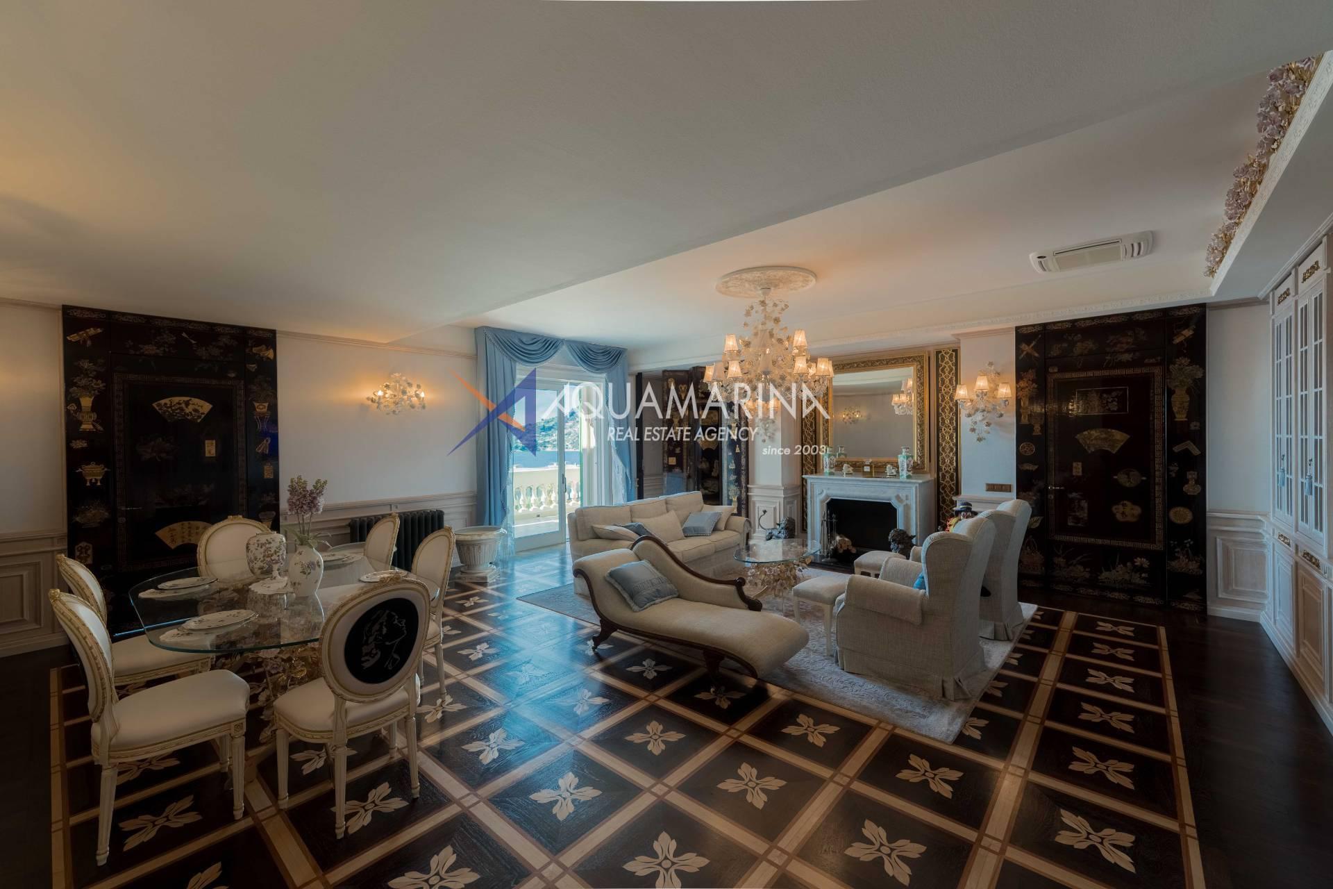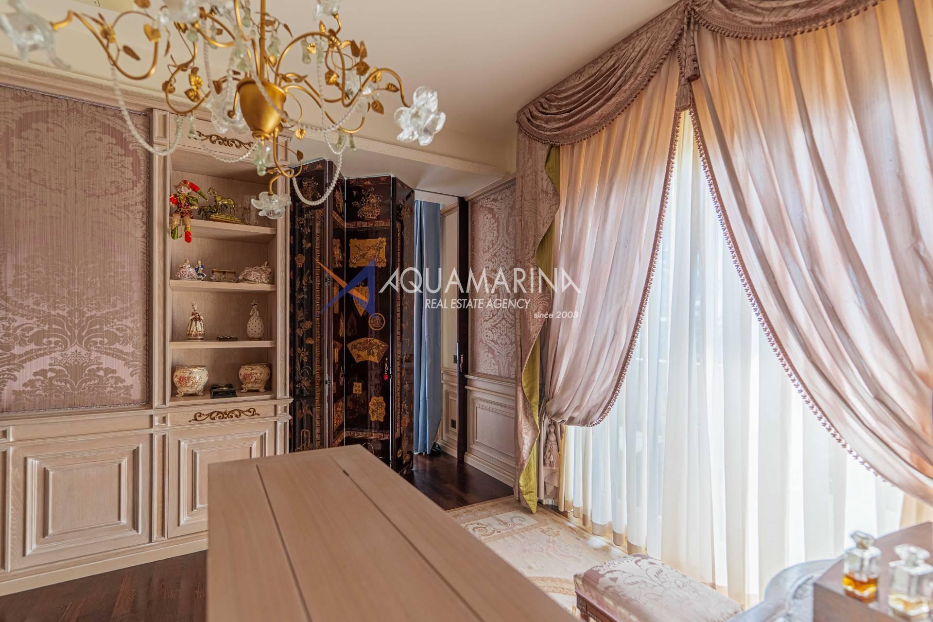 Proponiamo un ampio attico 205 m2 con terrazza e incantevole vista mare, garage e cantina. La disposizione interna comprende ingresso, ampio soggiorno open-space con camino e zona pranzo, cucina, due camere da letto (una con bagno en suite), secondo bagno, lavanderia, due cabine armadio, ripostiglio e grande terrazza.