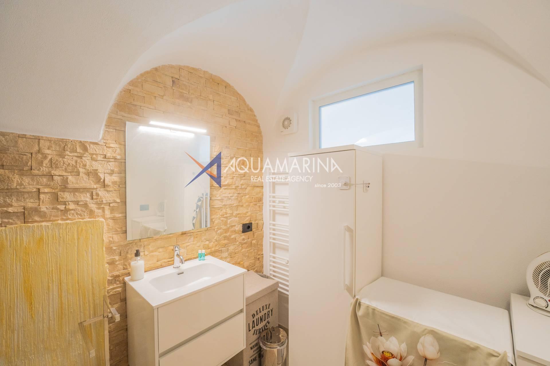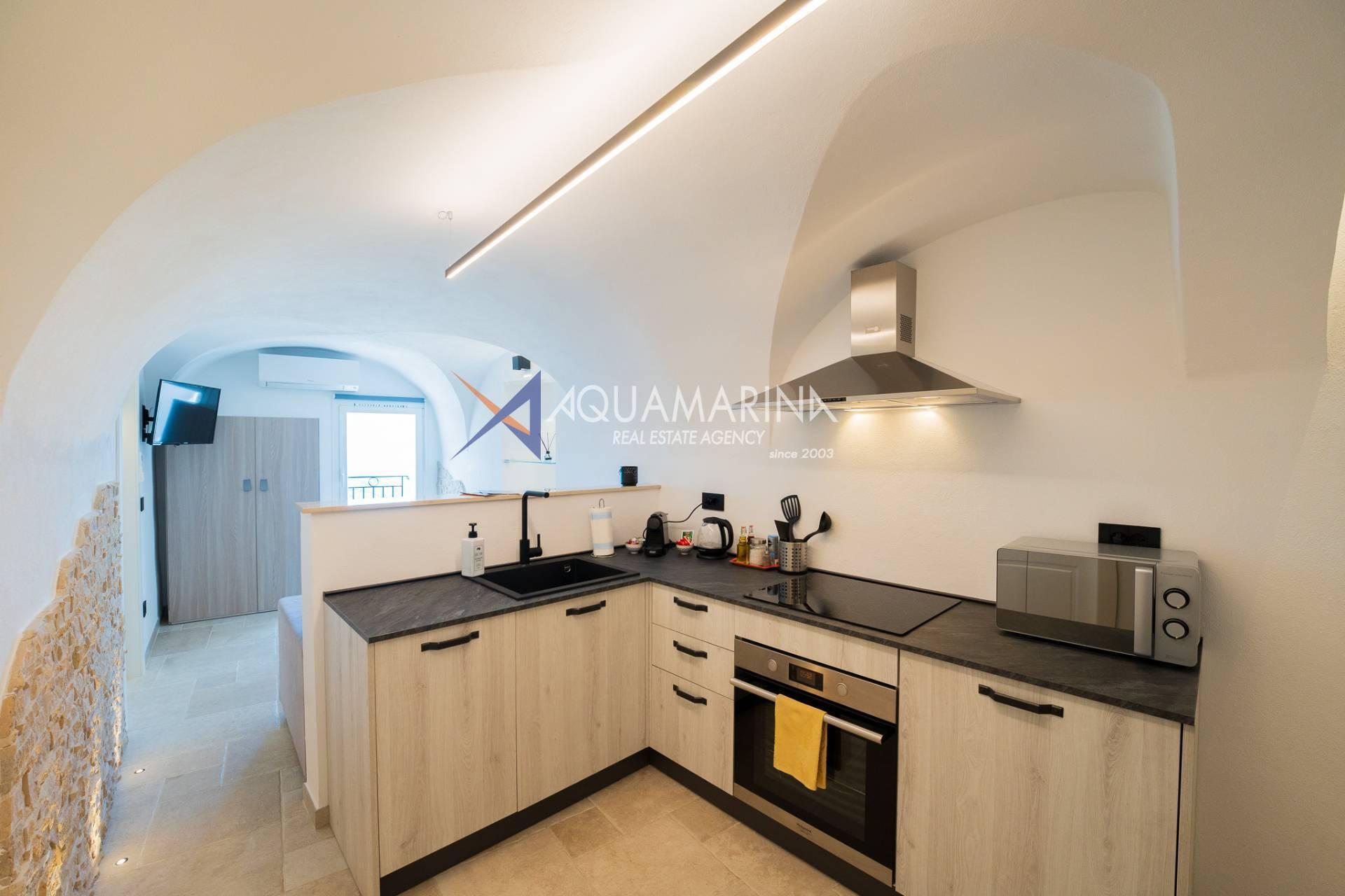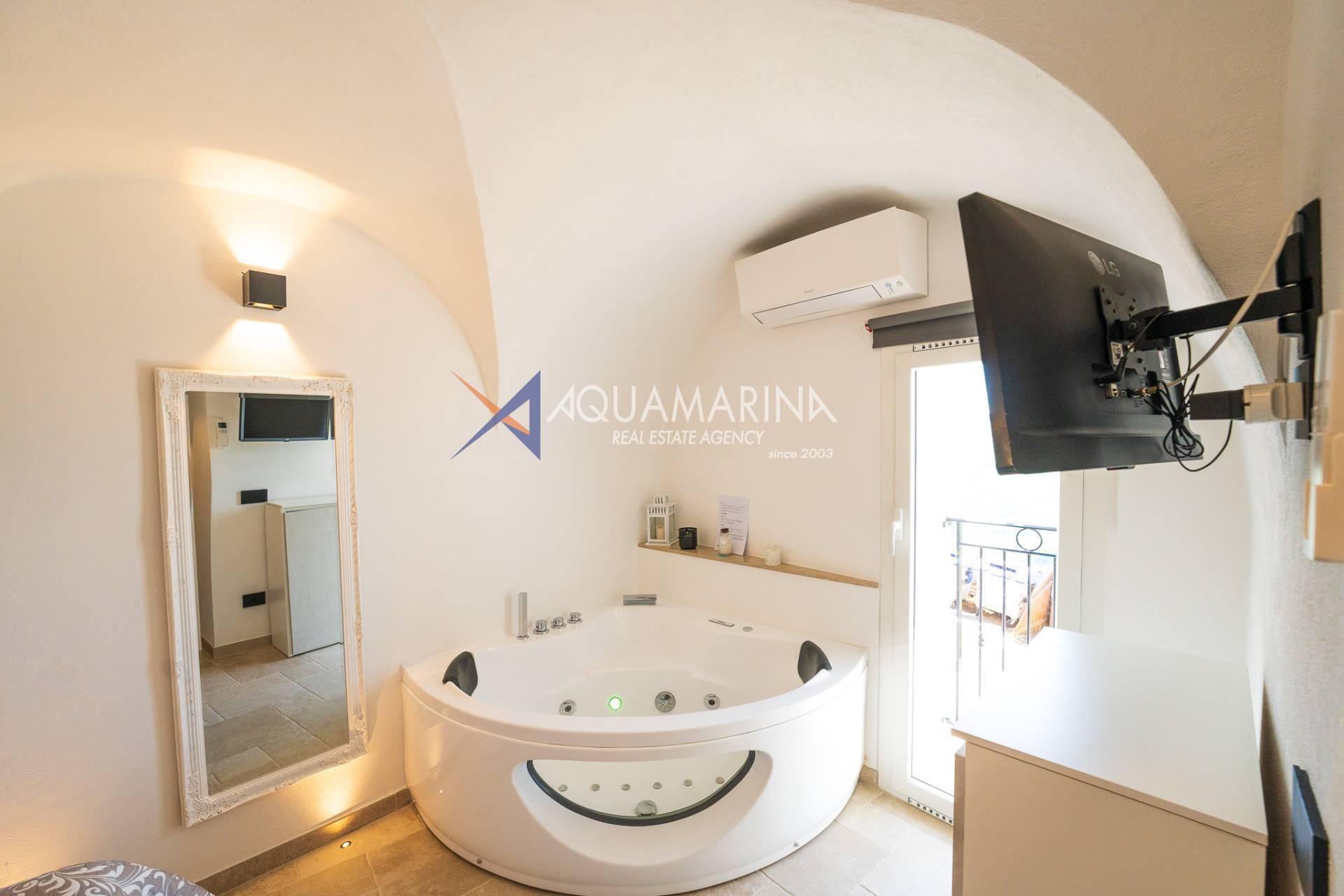L'alloggio, che si propone arredato con gusto, è così composto: ingresso su cucina, soggiorno, ampio bagno con box doccia, camera matrimoniale con jacuzzi all'interno e due balconcini.