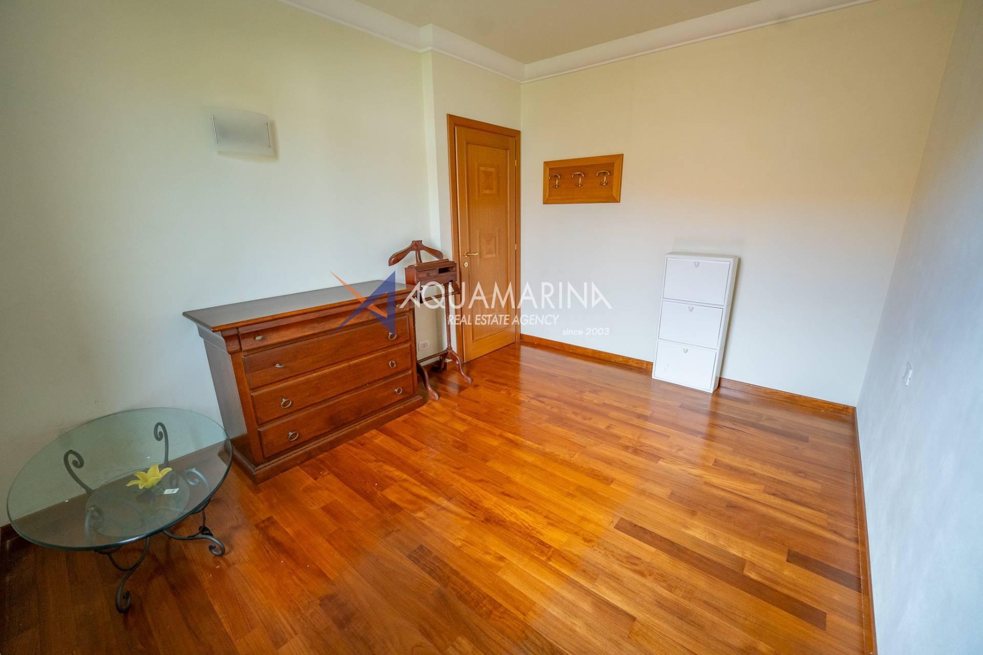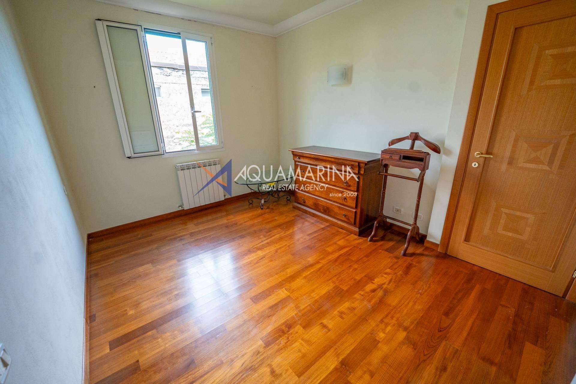 La zona notte si compone di una spaziosa camera matrimoniale e di una seconda camera da letto, entrambe rifinite con elegante pavimentazione in parquet. Il bagno, finestrato, è dotato di comodo box doccia.