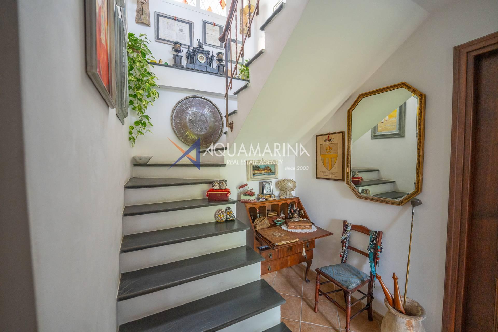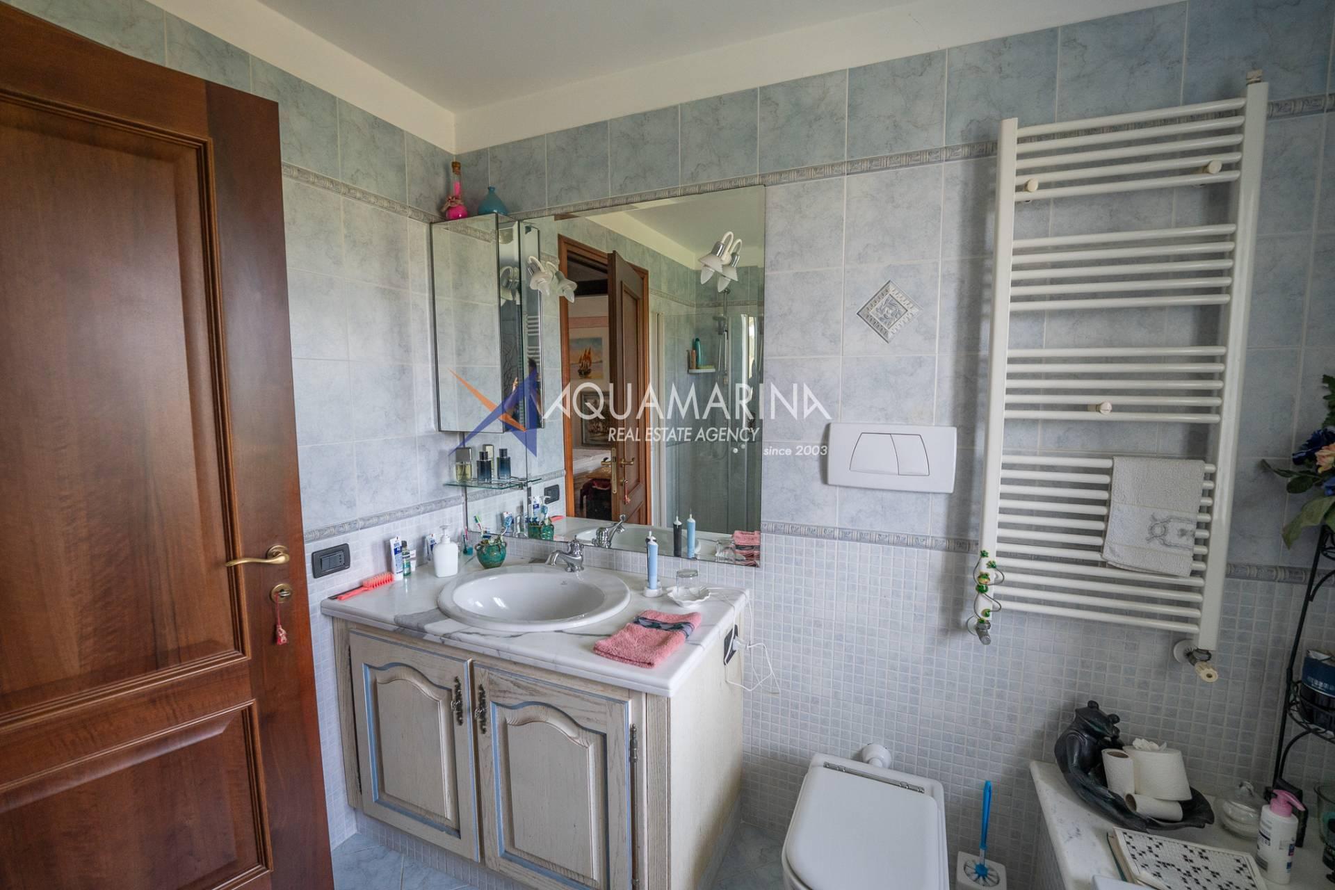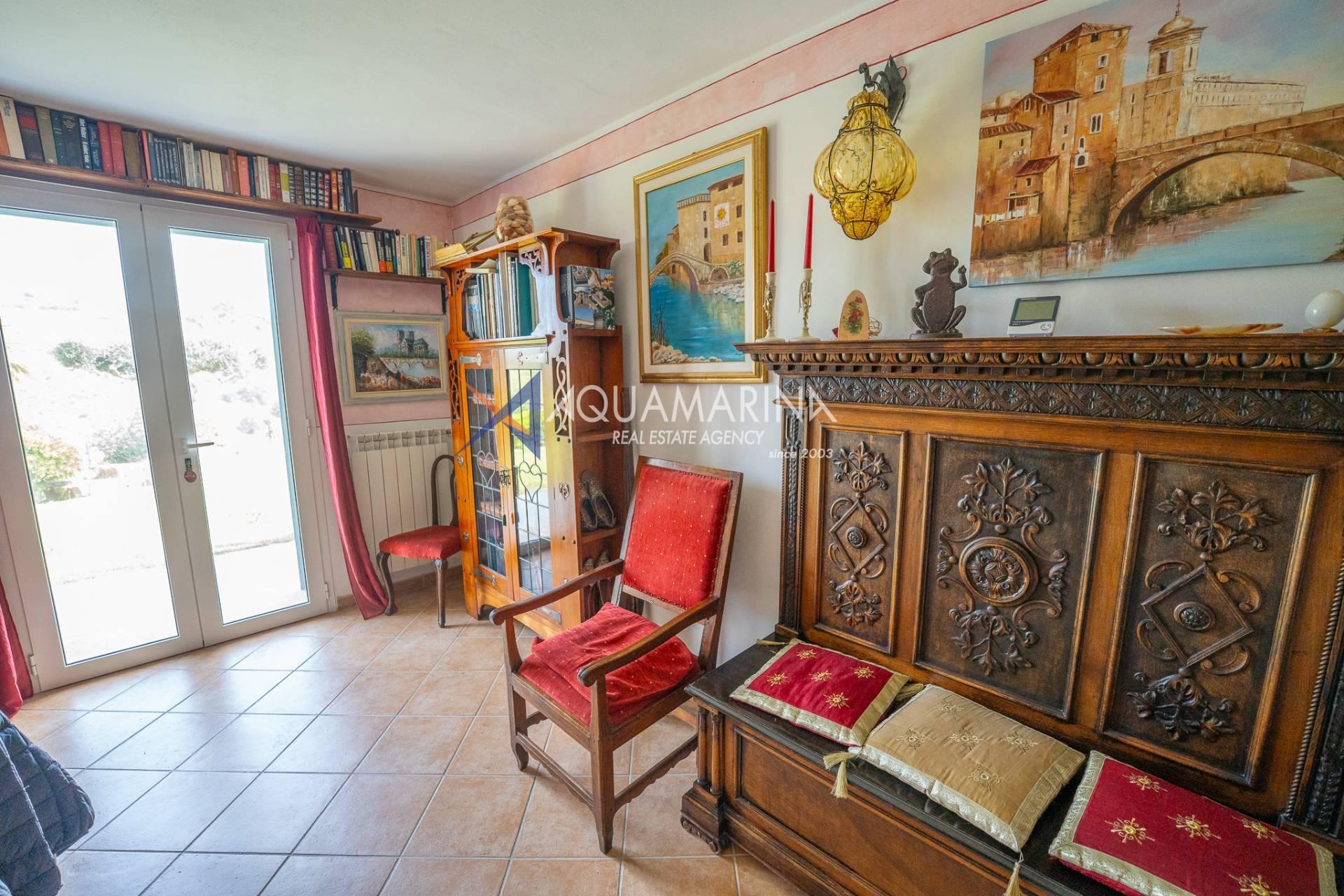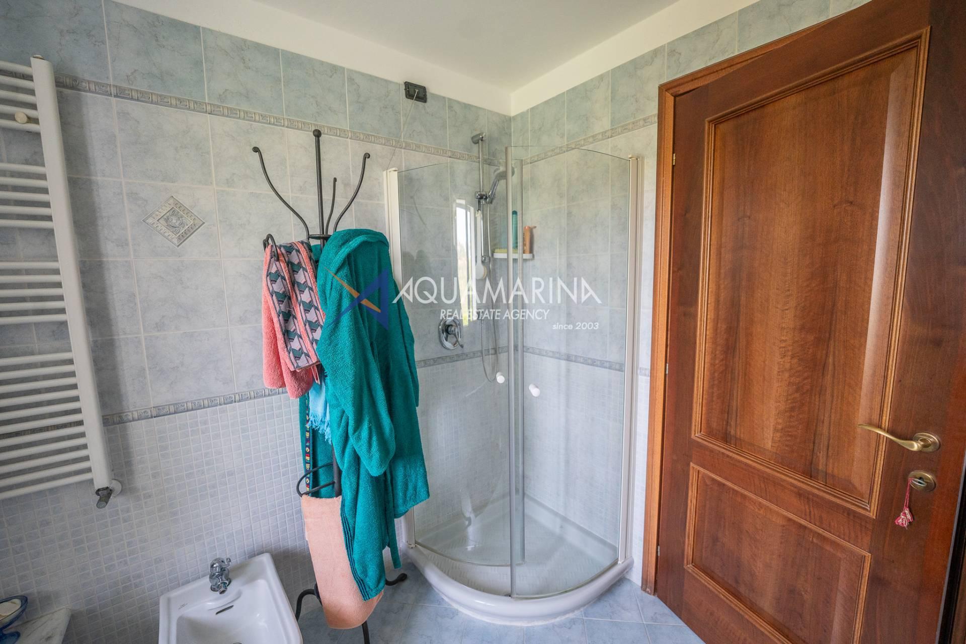 Scendendo al piano terra, lo spazio si articola in una camera/studio, una camera matrimoniale con ampia cabina armadio, una cameretta funzionale, un bagno principale completo di vasca e doccia con una splendida finestra affacciata sul mare, e infine un'ulteriore camera patronale con porta-finestra, pensata per accogliere la luce e aprirsi sul verde.