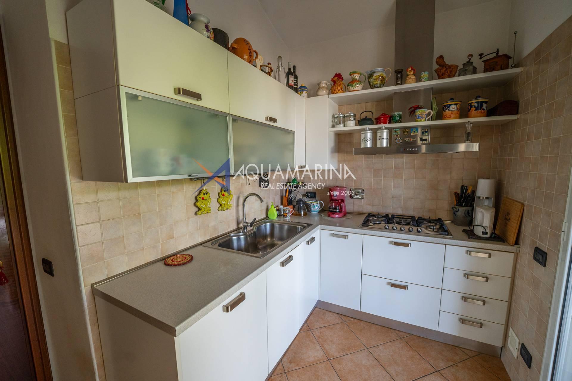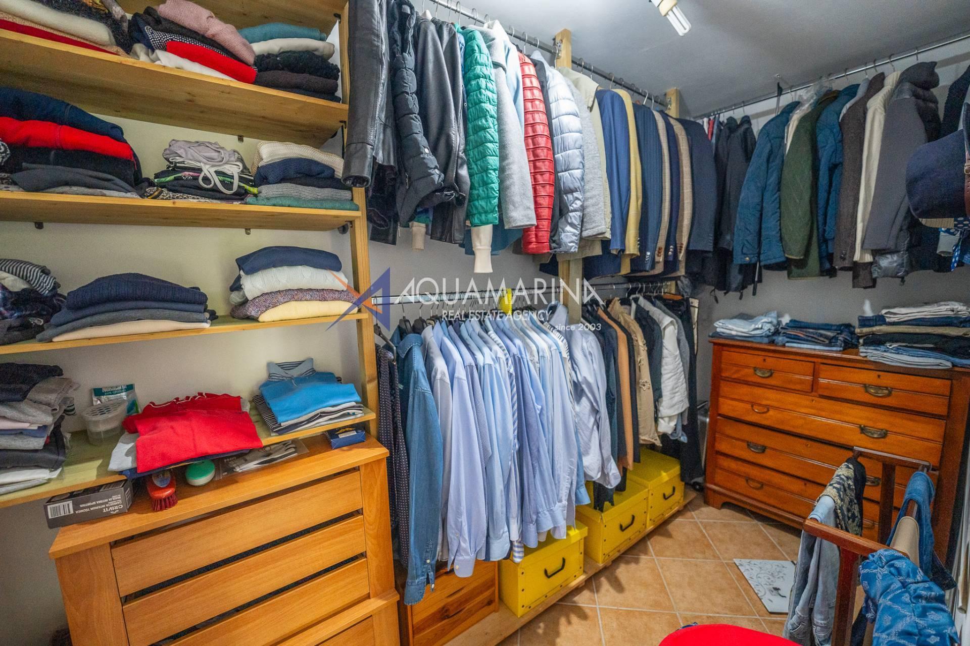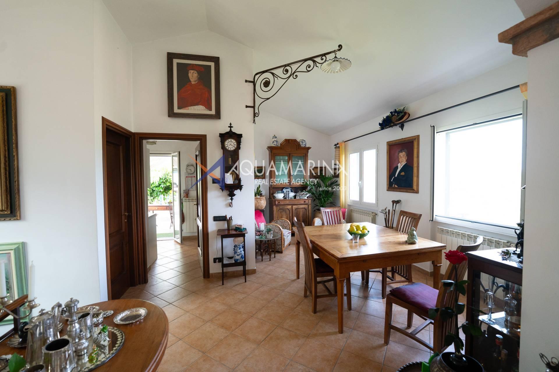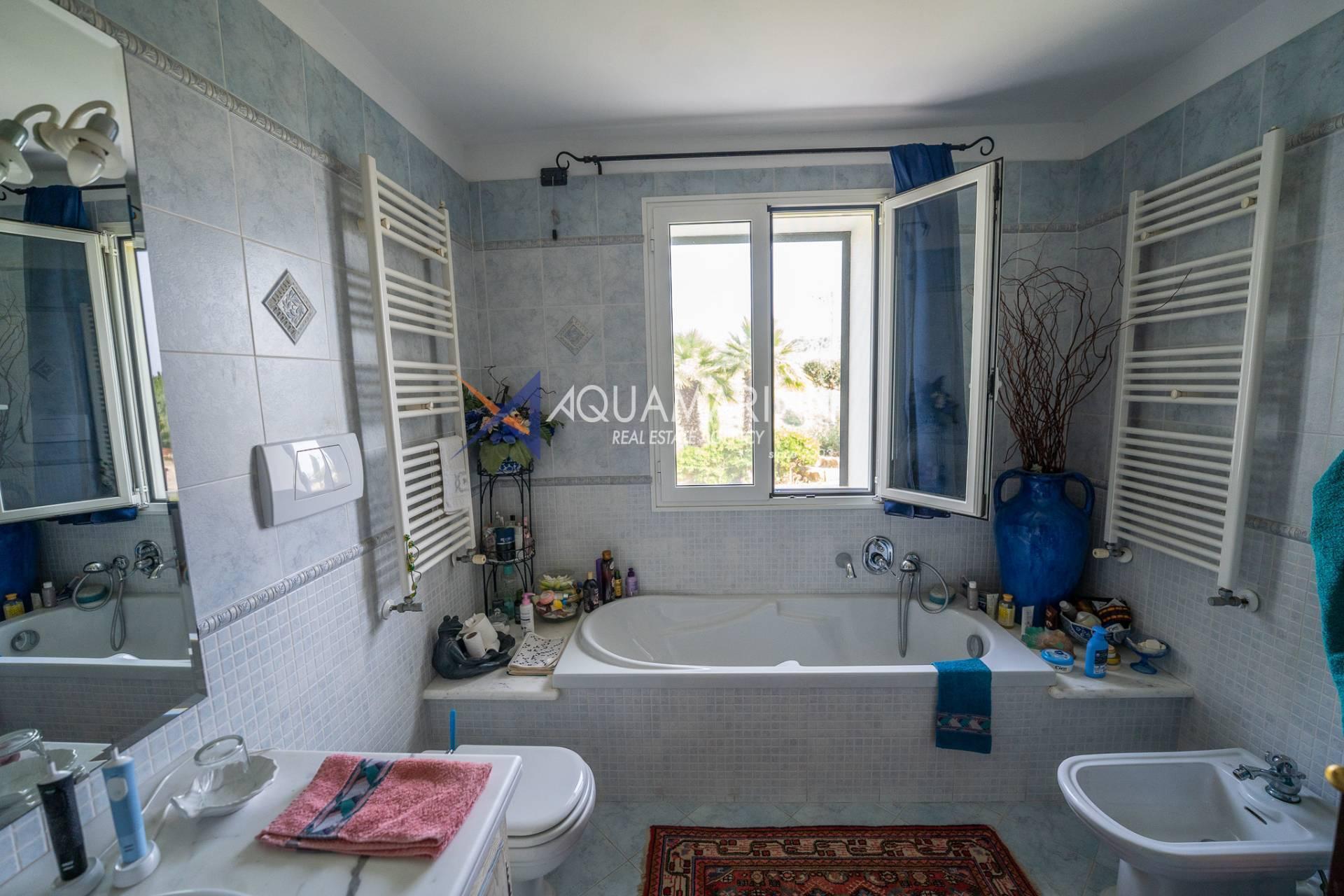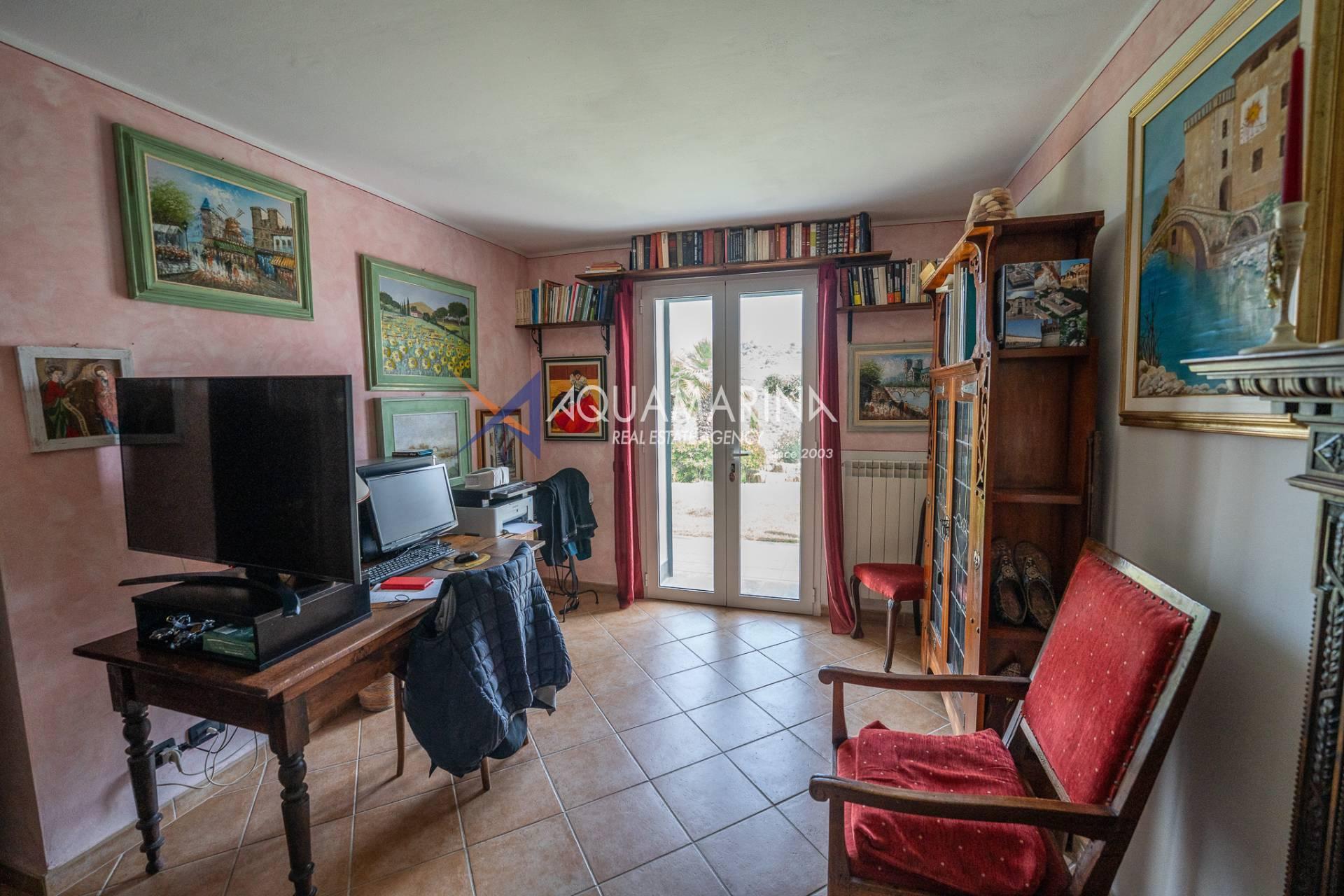 Scendendo al piano terra, lo spazio si articola in una camera/studio, una camera matrimoniale con ampia cabina armadio, una cameretta funzionale, un bagno principale completo di vasca e doccia con una splendida finestra affacciata sul mare, e infine un'ulteriore camera patronale con porta-finestra, pensata per accogliere la luce e aprirsi sul verde.