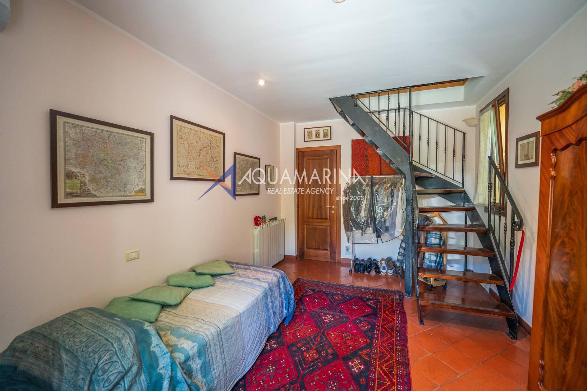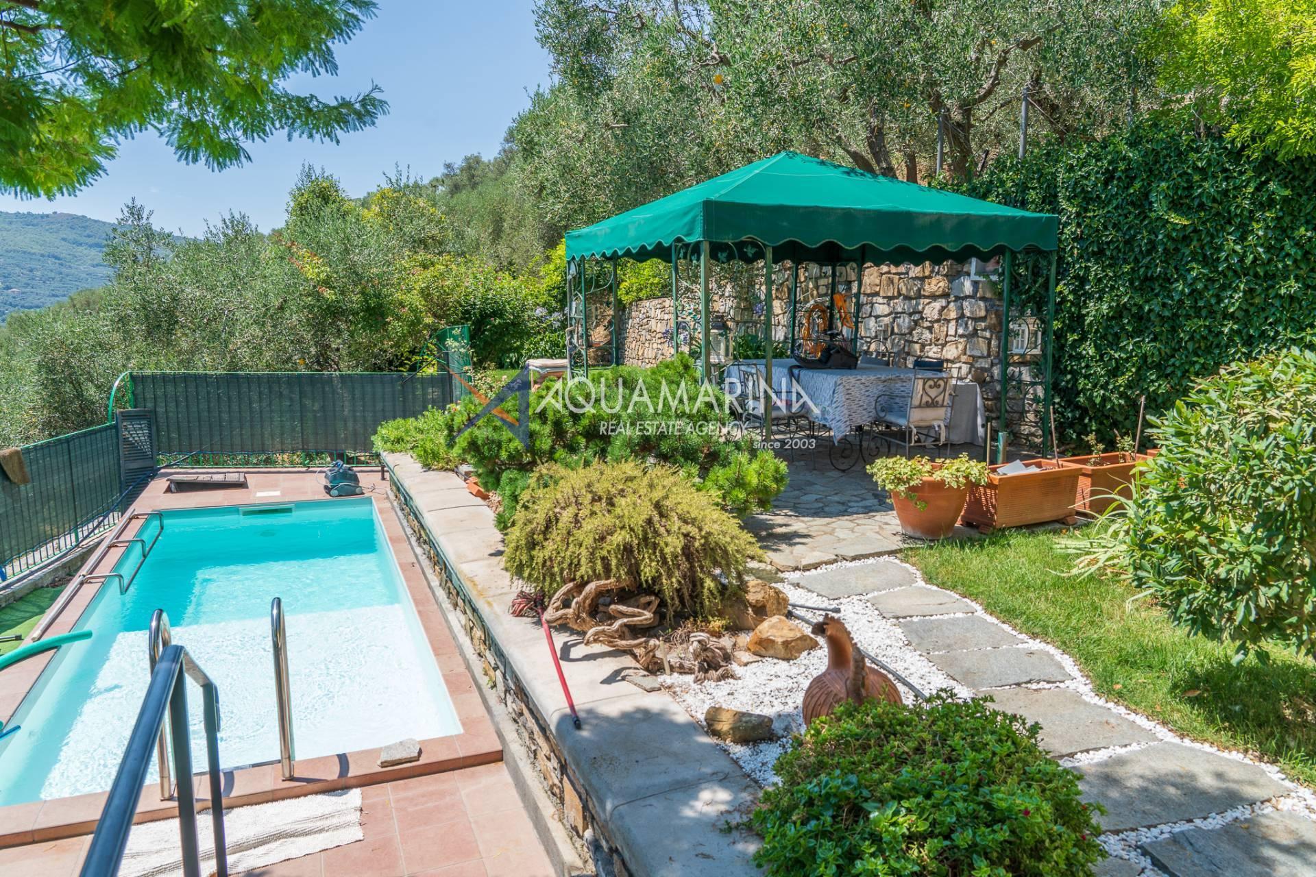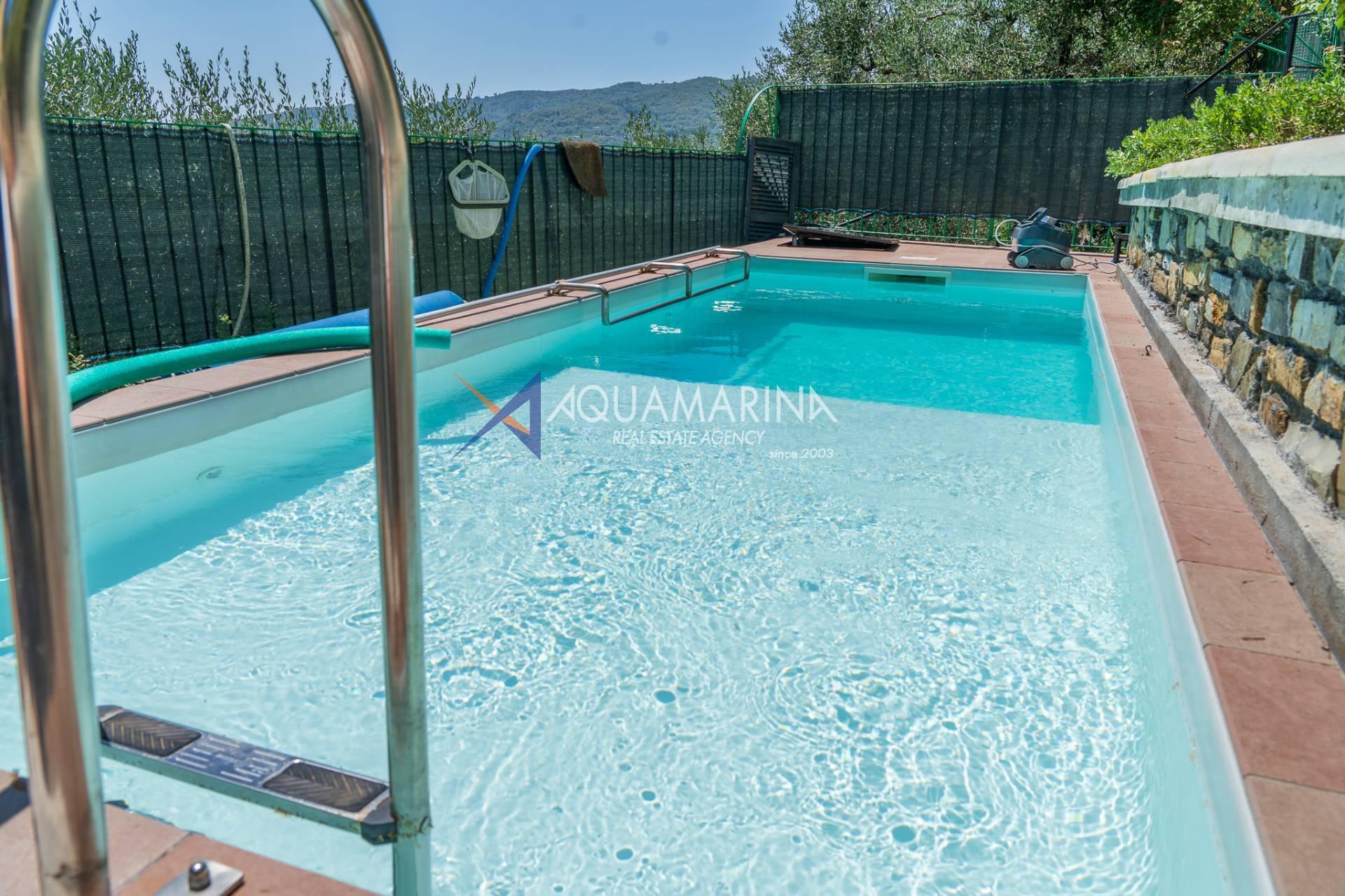 La proprietà, in eccellenti condizioni, è circondata da un ampio terreno con uliveto, alberi da frutto, giardino curatissimo e una magnifica piscina panoramica.