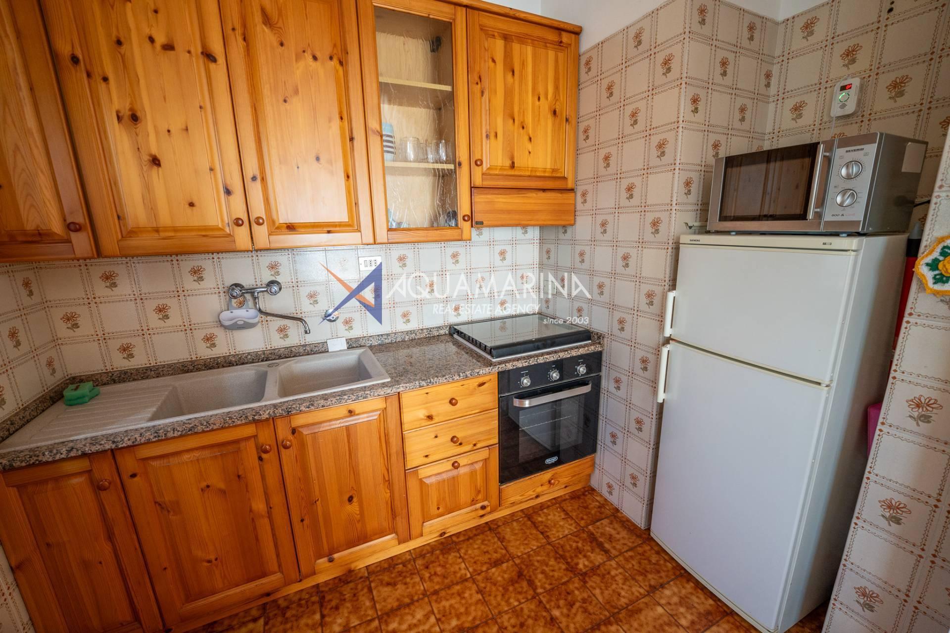 L'abitazione si apre su un comodo disimpegno che conduce alla zona giorno con cucina a vista, un ambiente accogliente e ben illuminato, con accesso diretto alla prima terrazza panoramica esposta a Sud, ideale per godere di momenti di relax con vista sul mare.