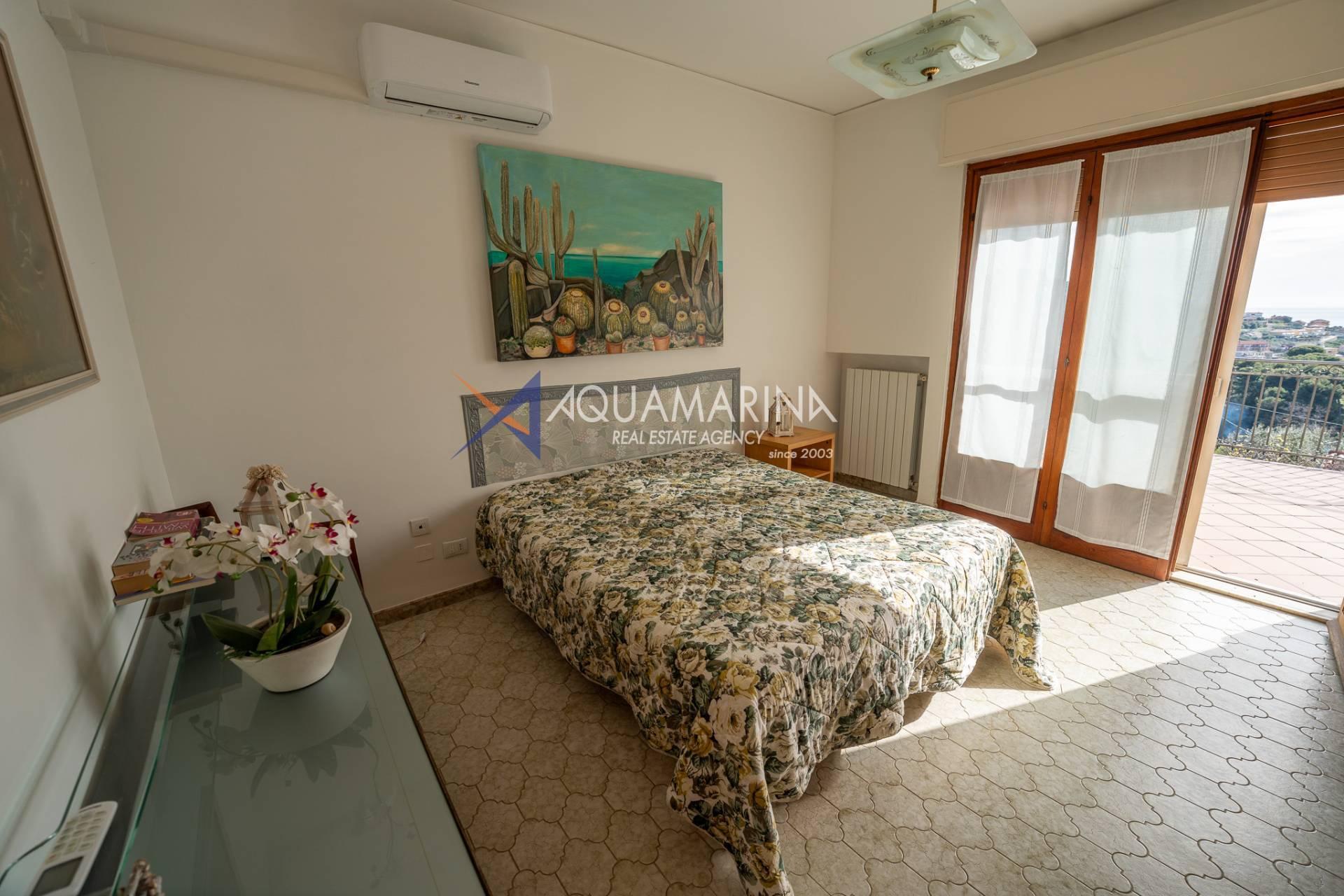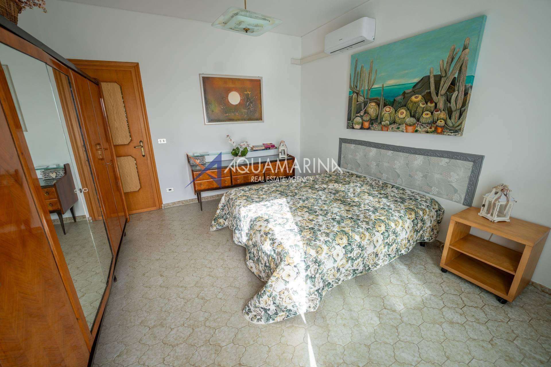 Al piano superiore, raggiungibile tramite una comoda scala interna, si sviluppa la zona notte composta da una seconda camera matrimoniale di generose dimensioni con accesso alla terrazza panoramica vista mare, due ulteriori camere da letto e un secondo bagno finestrato.