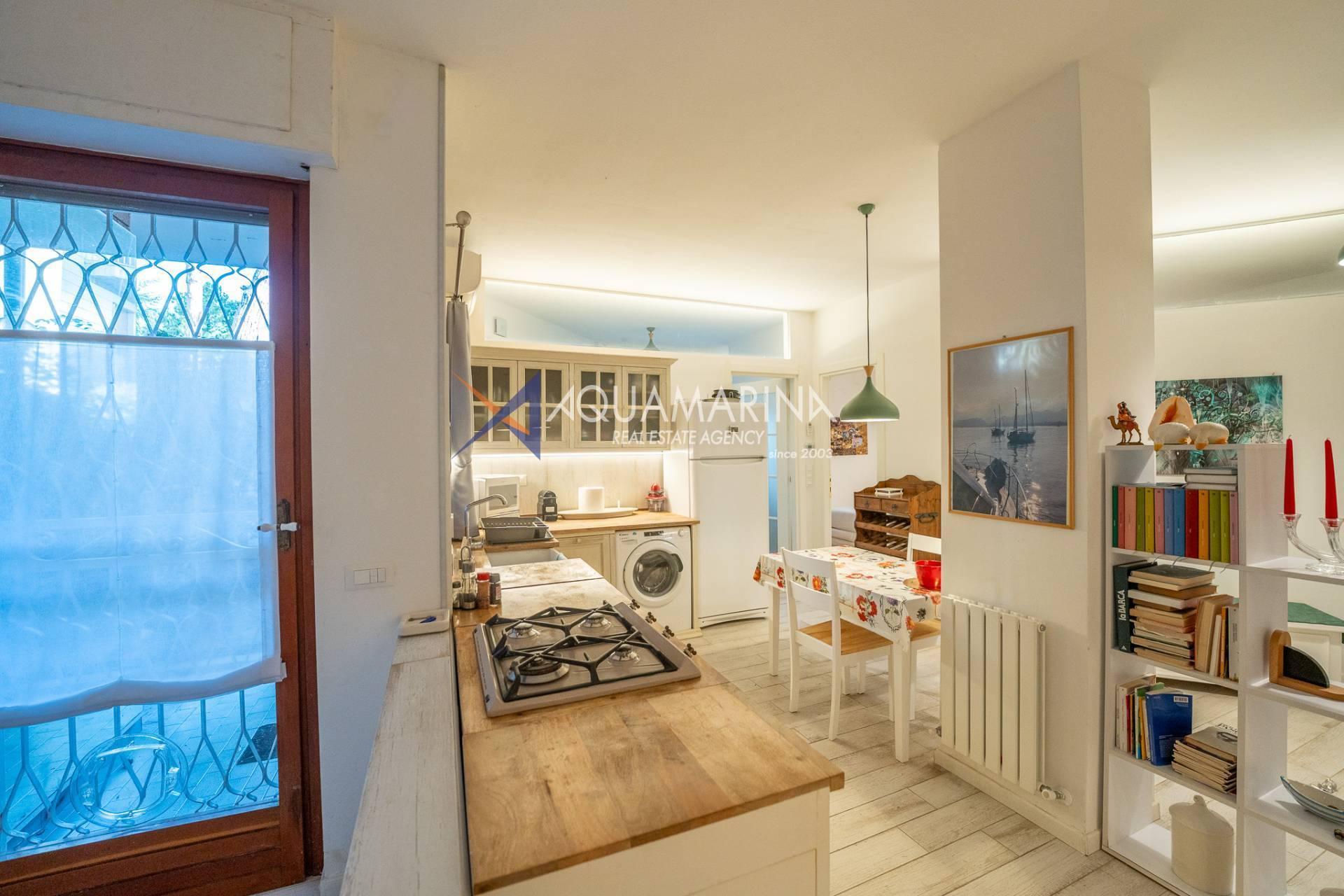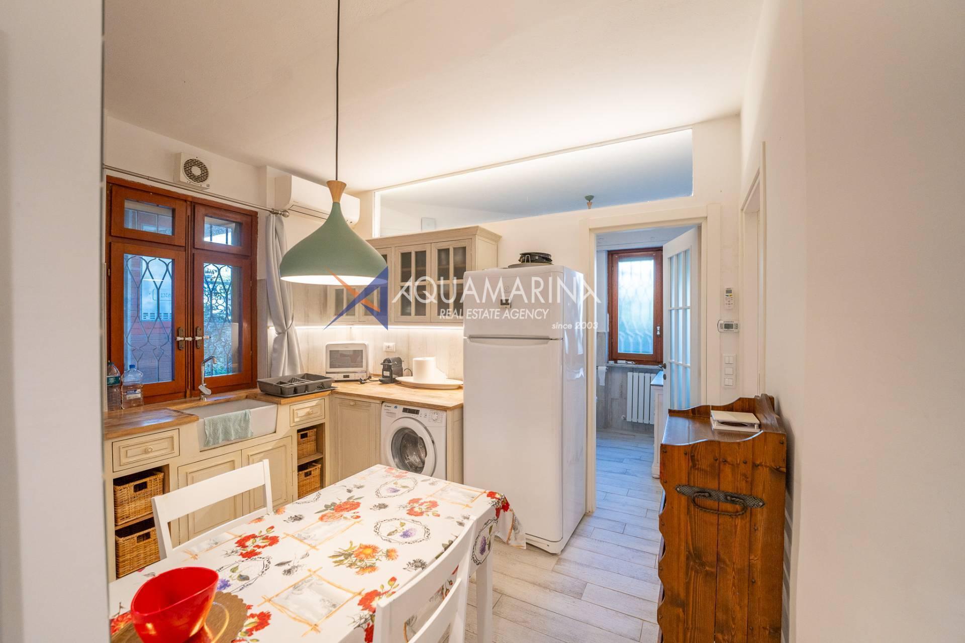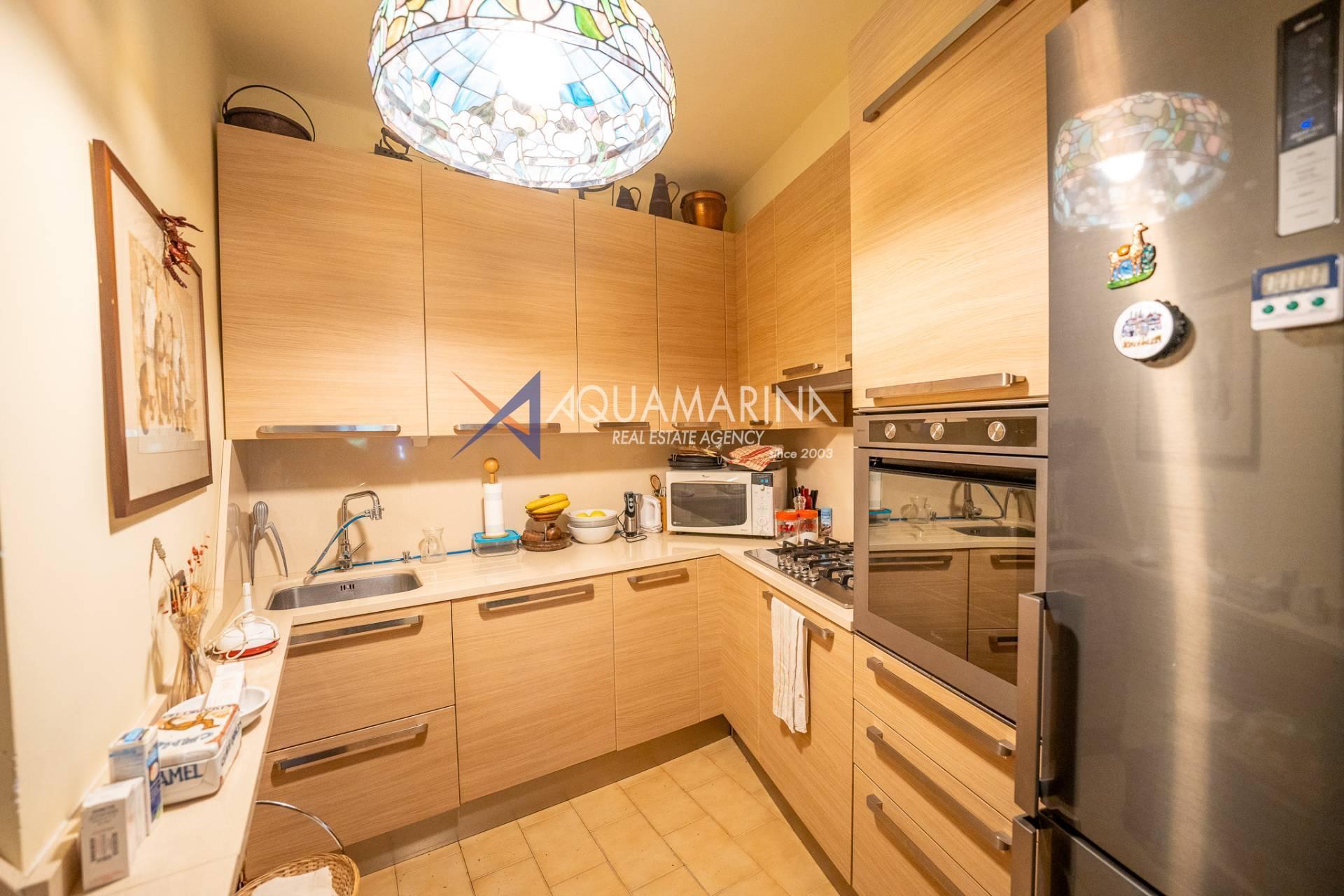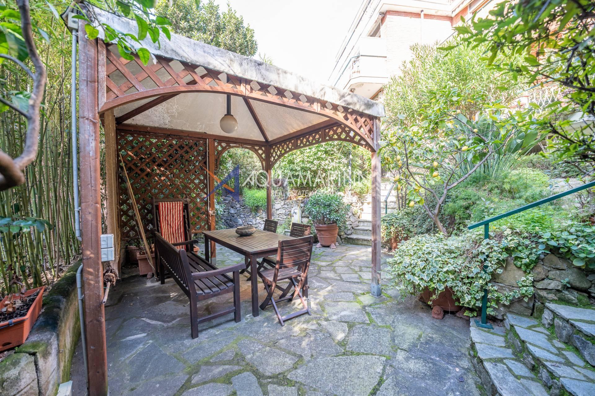 L'appartamento, di 180 mq al piano terra, vanta un giardino privato di 250 mq, curato nei minimi dettagli con gazebo, illuminazione notturna, pavimentazione in pietra e irrigazione automatica.