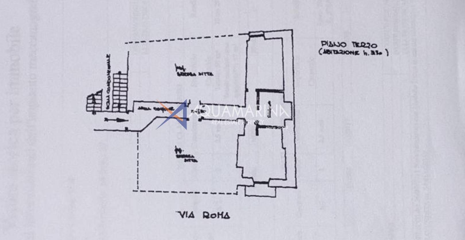 Ingresso su un pratico disimpegno, luminoso soggiorno con angolo cottura e balcone affacciato su Via Roma, ampia camera matrimoniale con finestra panoramica e