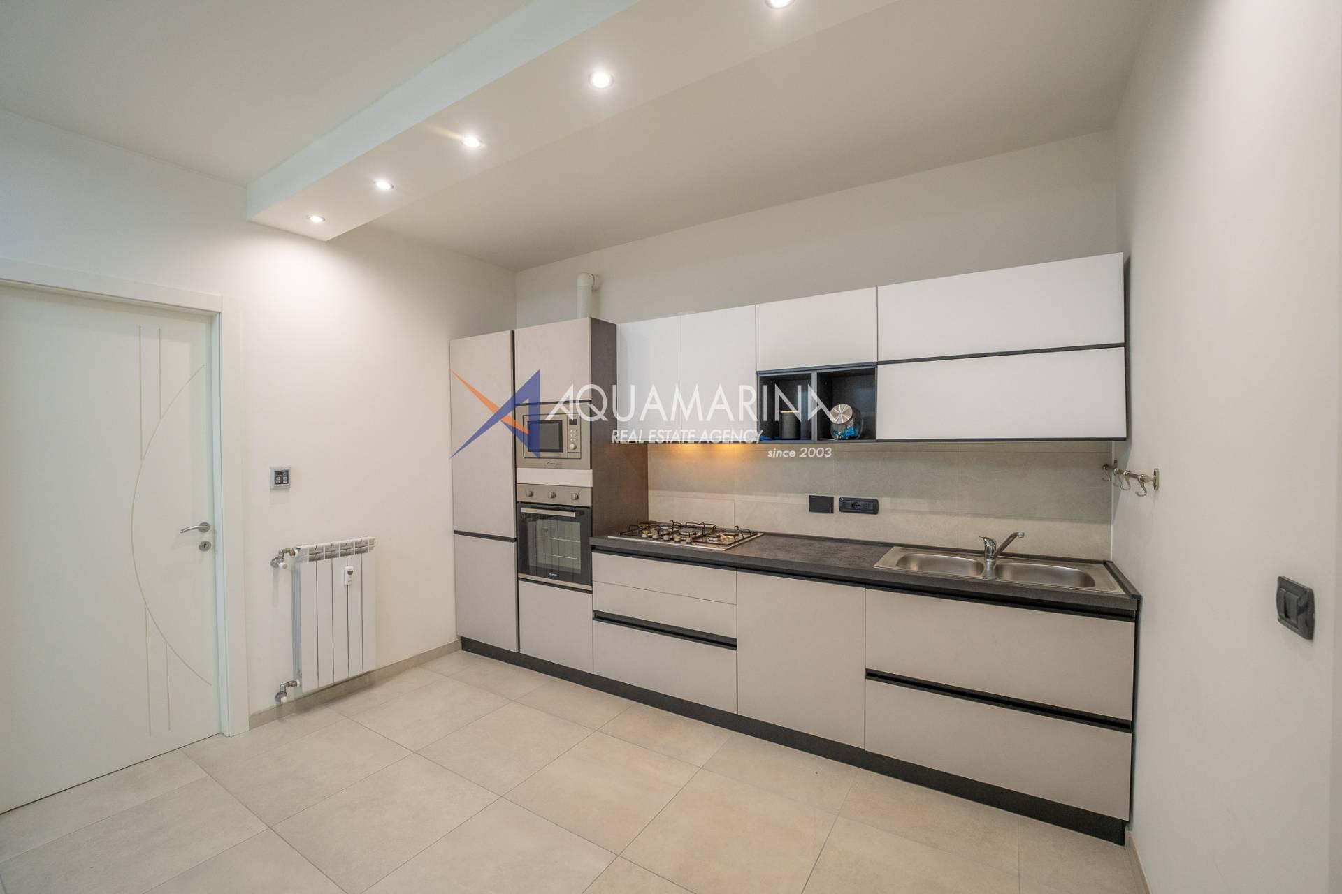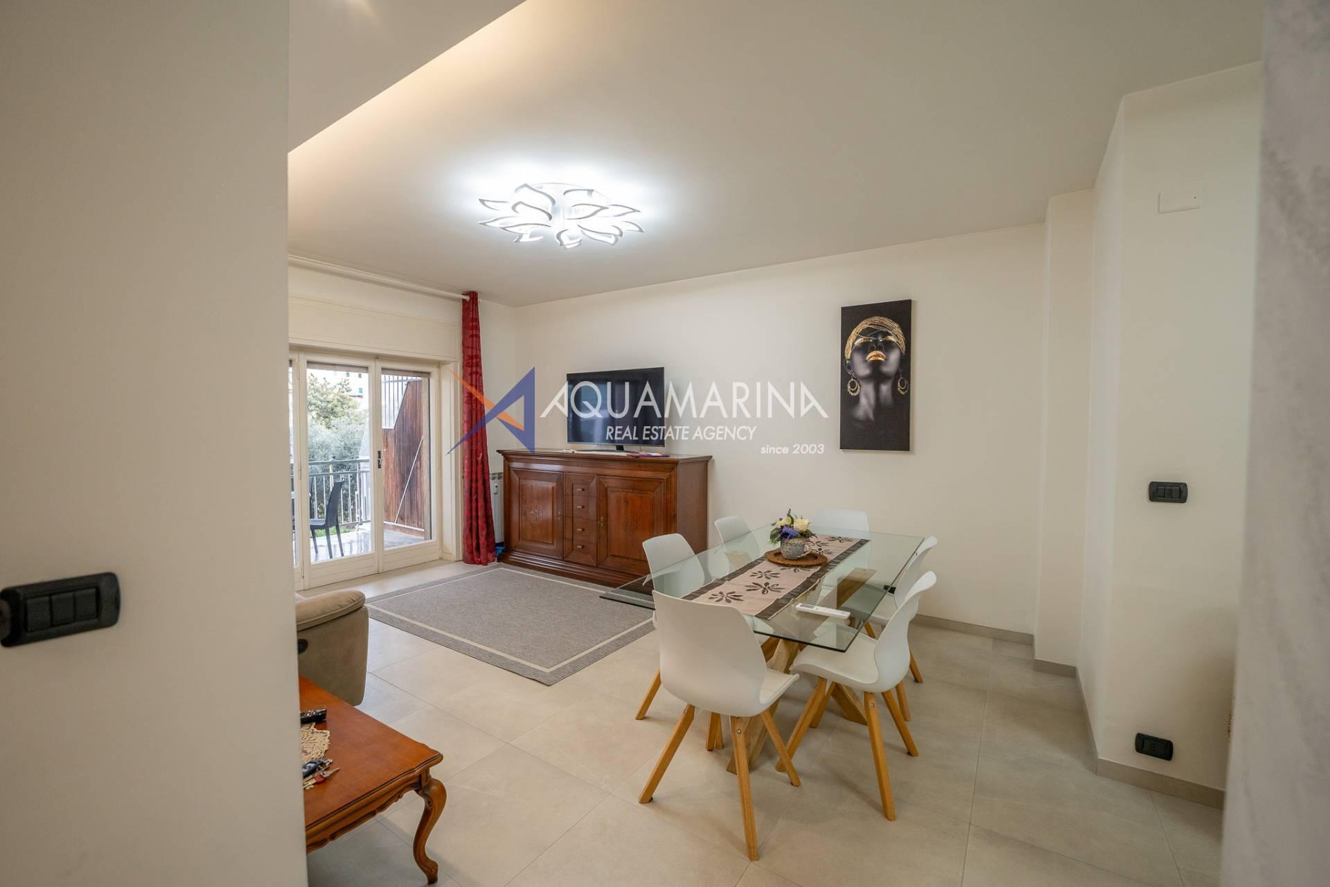 Gli spazi interni, arredati con gusto e completi di elettrodomestici, comprendono un accogliente ingresso con cucina a vista, ampio ed elegante soggiorno living, due camere da letto, un ampio bagno finestrato con portafinestra e accesso al balcone.