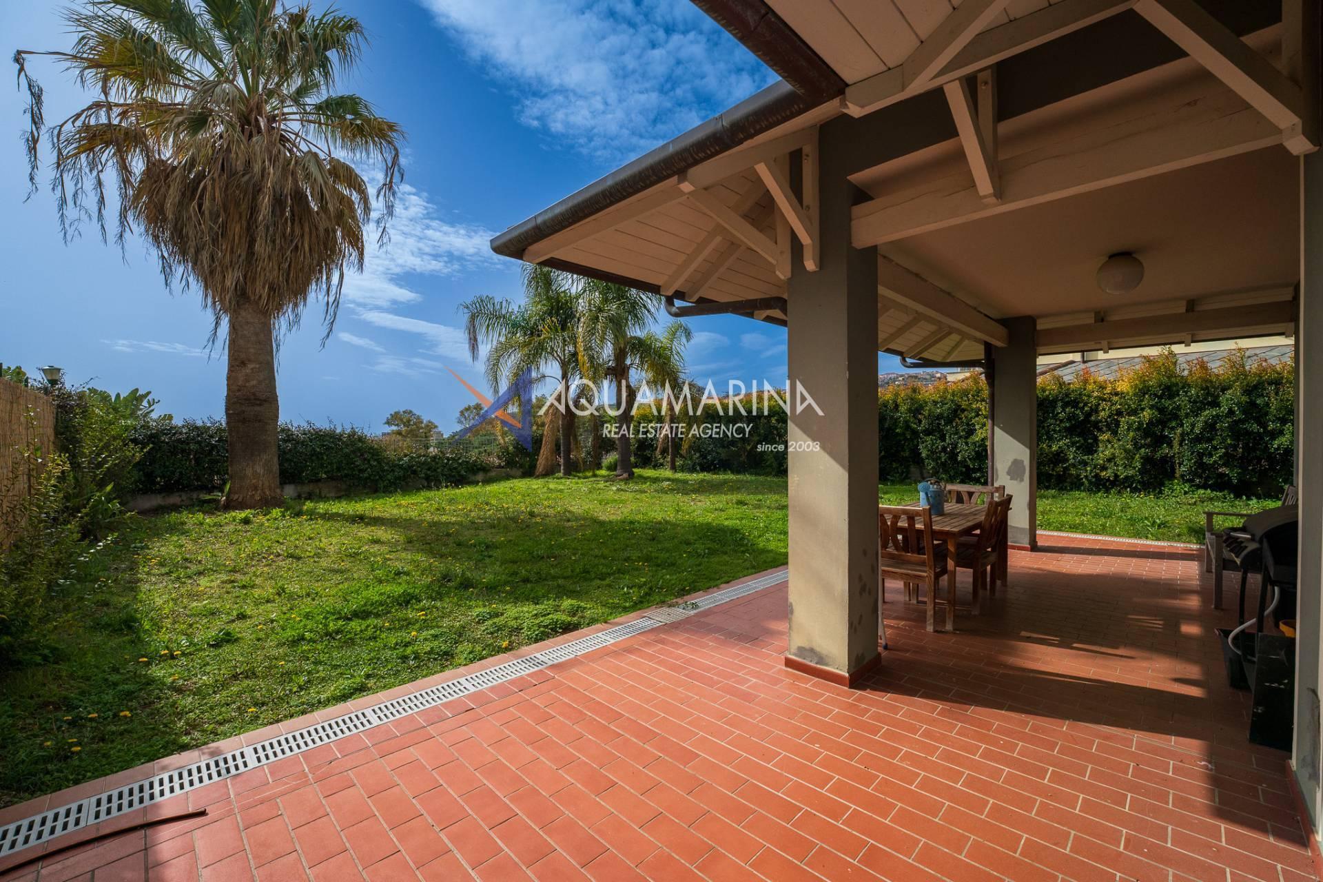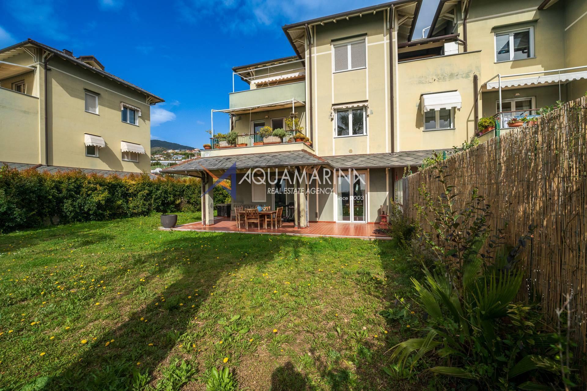 L'appartamento, elegantemente arredato, è composto da ingresso, soggiorno, cucina abitabile, tre camere, due bagni, terzo bagno con disimpegno e possibilità di ricavare ulteriori camere da letto al piano interrato, stupendo giardino privato di 250mq con portico e accesso diretto ad ampio garage.