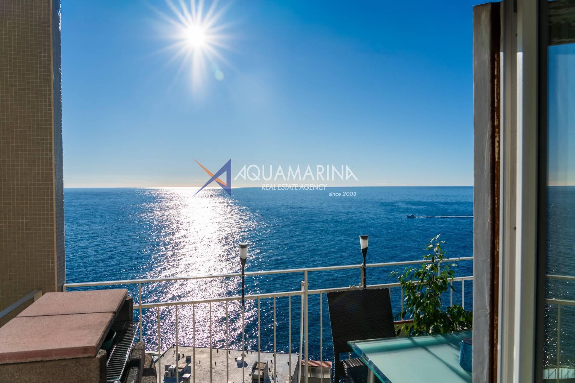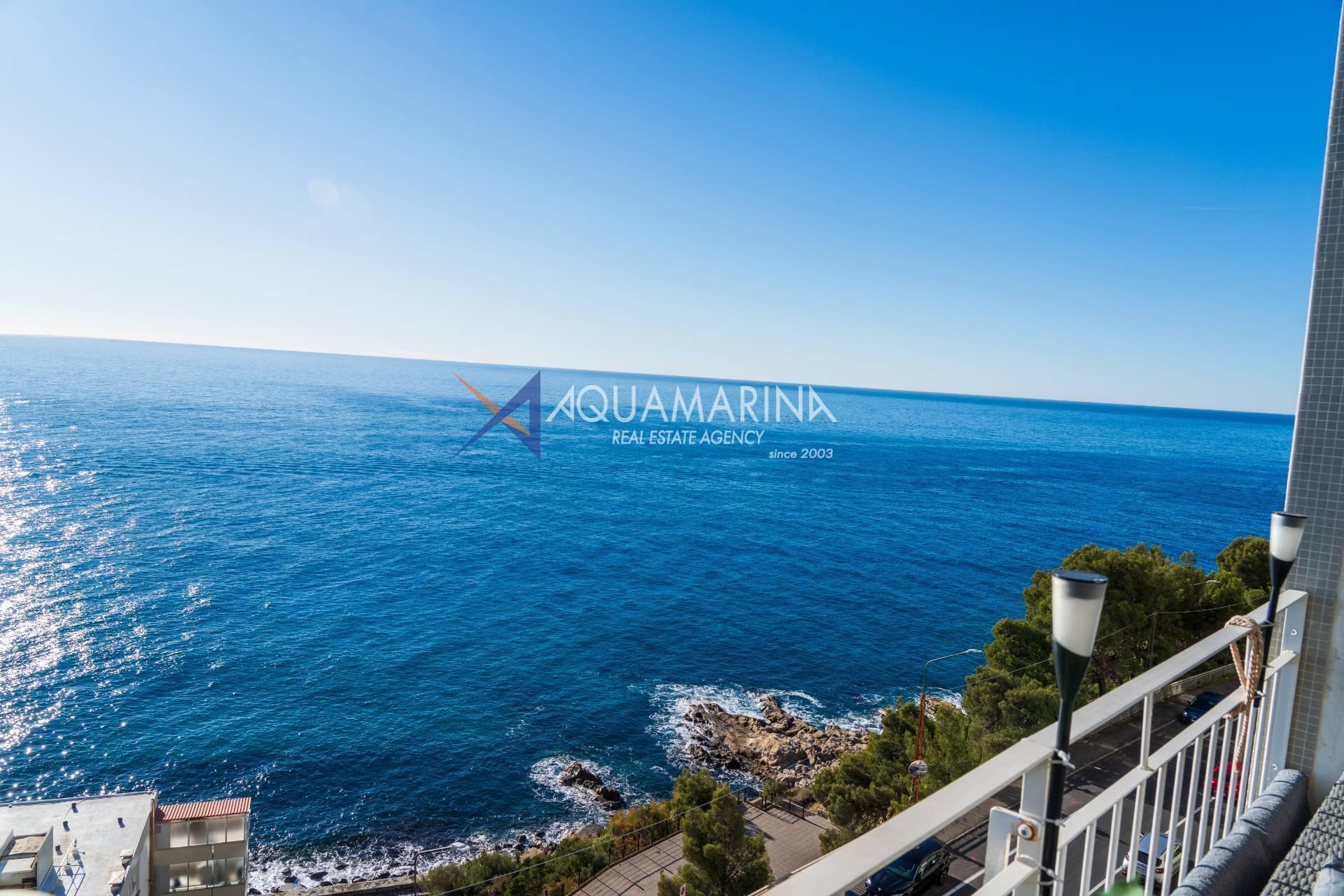 Sanremo, appartamento vista mare. Vendiamo appartamento al 5° piano con ascensore, praticamente sul mare con vista mozzafiato, si affaccia sul mare con vista a 180° su Capo Nero, uno dei posti più suggestivi della riviera di Ponente. Grazie alla posizione e alle ampie vetrate, l'appartamento viene inondato di luce naturale, il terrazzo vivibile, permette di godere di una vista impagabile e allo stesso tempo di vivere momenti di relax in totale tranquillità, praticamente in mezzo al mare. L'immobile è composto da ingresso con disimpegno, cucina a vista con dispensa e finestra vista mare, salone doppio con vetrata a picco sul mare e accesso al terrazzo, 2 camere con vista mare e accesso al terrazzo,1 camera studio con vista mare, bagno con finestra, un secondo bagno di servizio, terrazzo vivibile, balcone e una cantina. Il riscaldamento è autonomo con caminetto sospeso e tramite una pompa di calore che funziona per riscaldare e raffrescare l'appartamento, i serramenti esterni sono in PVC con doppio vetro
