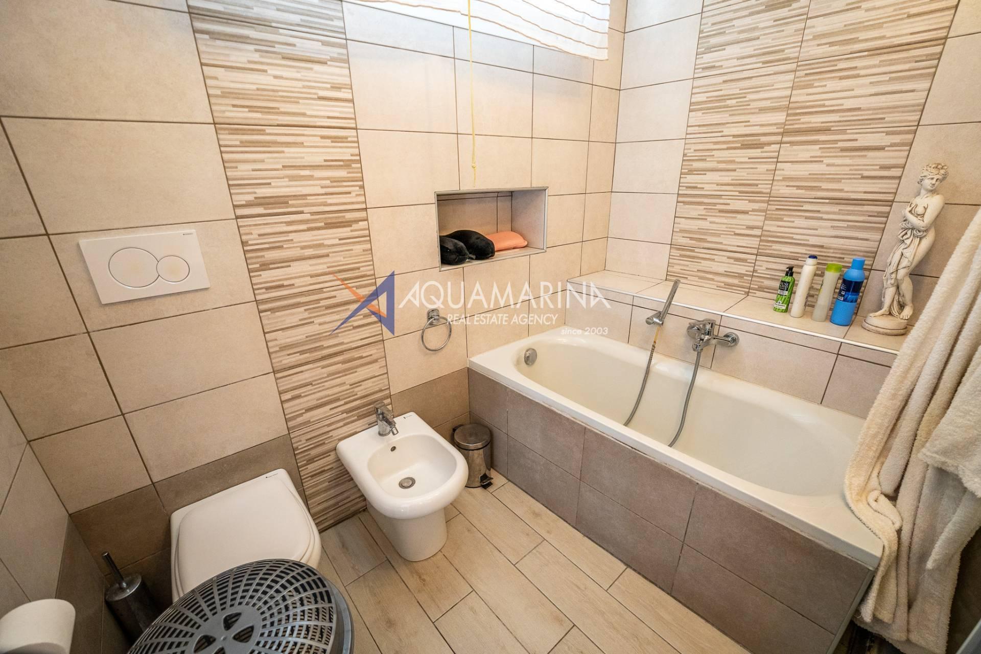 L'ingresso si apre su un disimpegno che conduce alla spaziosa zona giorno con cucina a vista. A seguire troviamo la camera da letto matrimoniale ed il bagno, finestrato, che dispone sia di vasca che di box doccia.