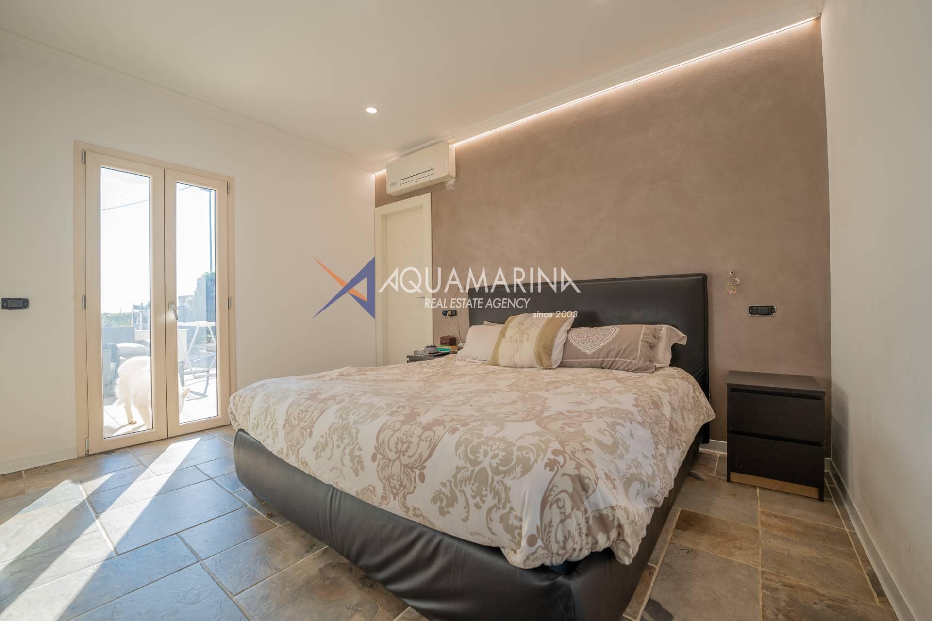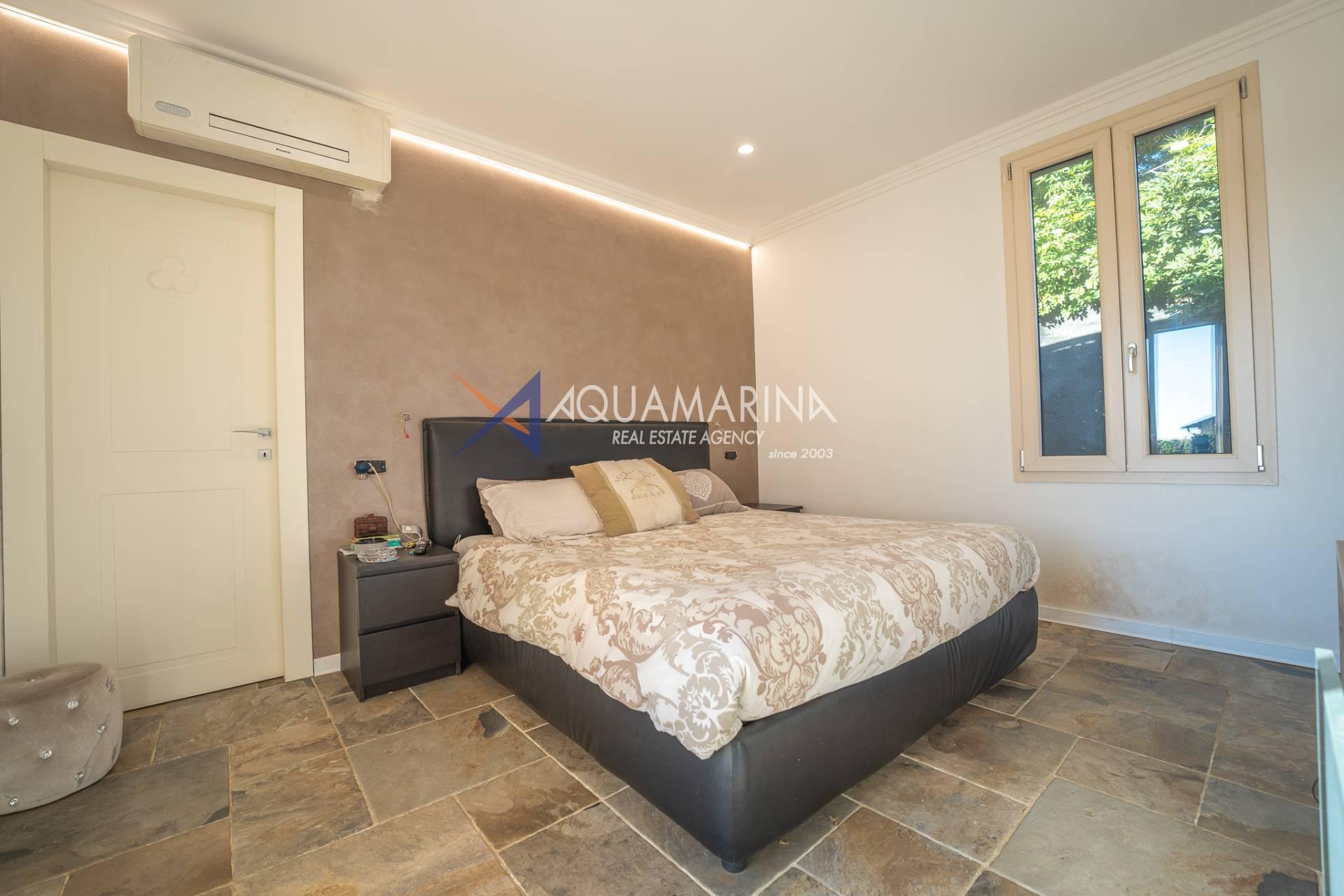 Il primo piano, raggiungibile sia tramite una comoda scala interna che attraverso un ingresso esterno separato, è composto da tre camere da letto, ciascuna con cabina armadio e bagno privato.