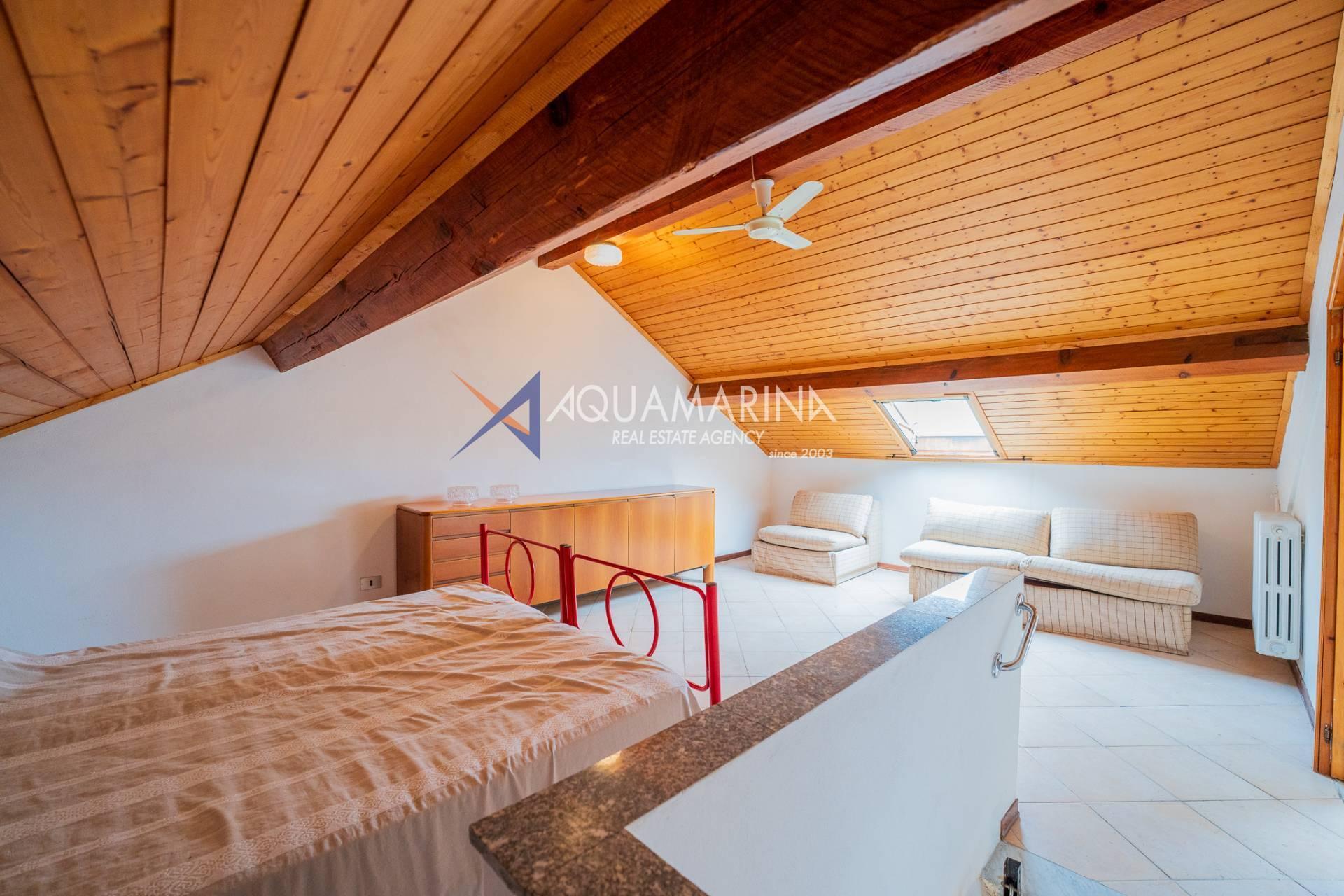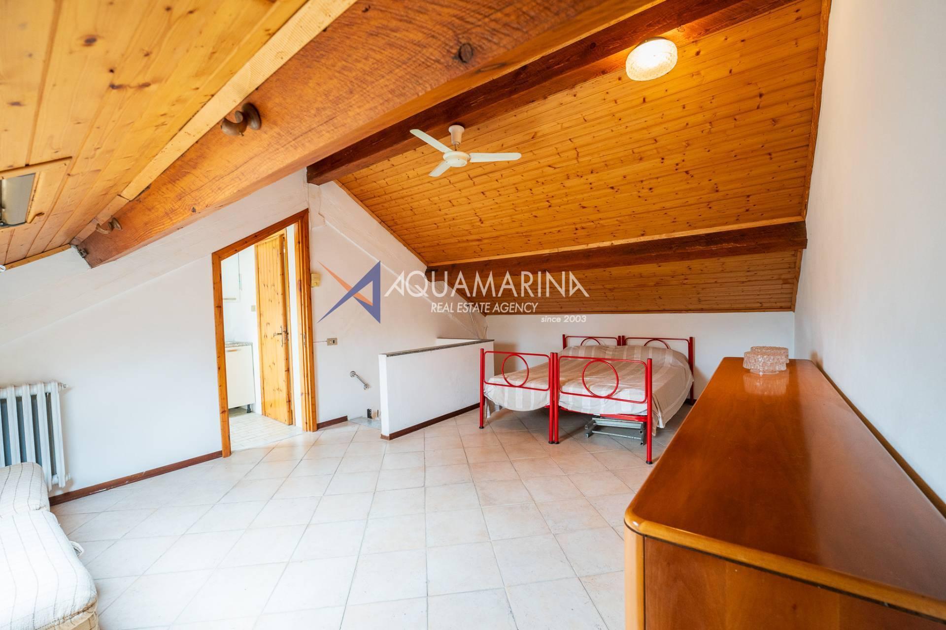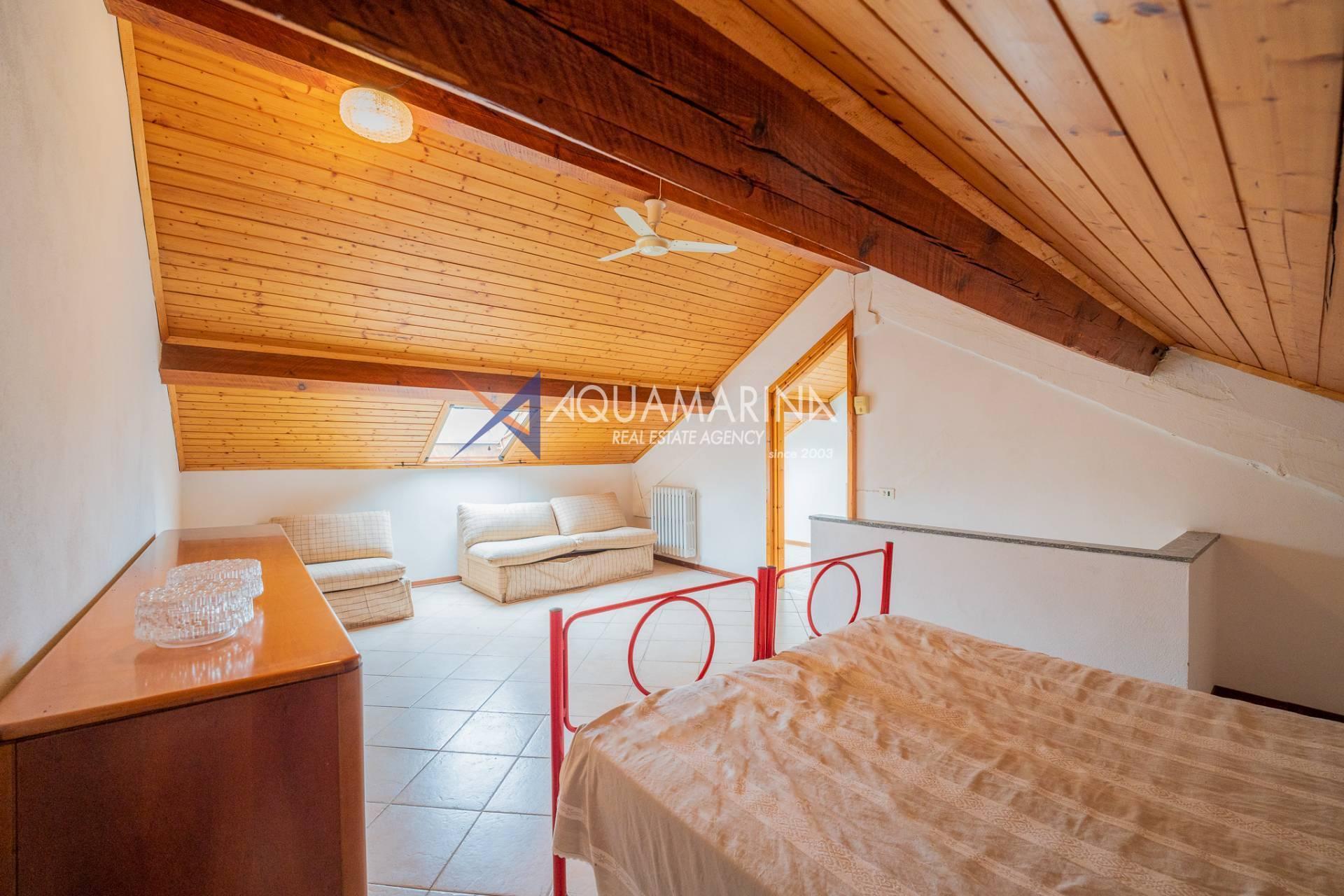 L'immobile, disposto su tre livelli e con una superficie di 150 mq, è composto al piano terra da ampio living con cucina a vista che affacciano sul giardino e veranda esterna; al primo piano da una camera da letto matrimoniale e una camera per gli ospiti, entrambe con accesso diretto al terrazzo, e un bagno con box doccia; all'ultimo piano mansardato da un'ampia camera da letto con cucinotto e bagno.