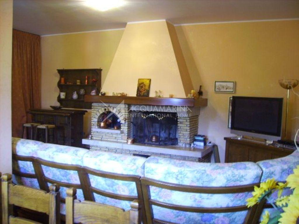 La villa è circondata da un parco di 5000mq dove sorge una piscina con solarium e spogliatoio. Internamente la villa presenta, al piano terra, un'ampia taverna con caminetto e forno a legna, una cucina, 2 camere da letto, un bagno e un grande box auto; al primo piano troviamo 3 camere da letto, una cucina, un soggiorno e il bagno; all'ultimo piano, invece, abbiamo altre 2 camere da letto, 2 bagni e un piccolo soggiorno. Da ogni stanza è possibile accedere agli ampi spazi esterni: giardino, terrazzi o porticati.