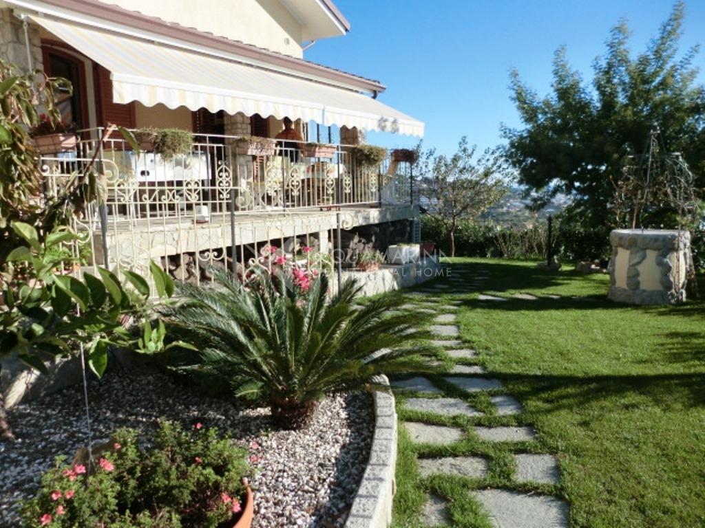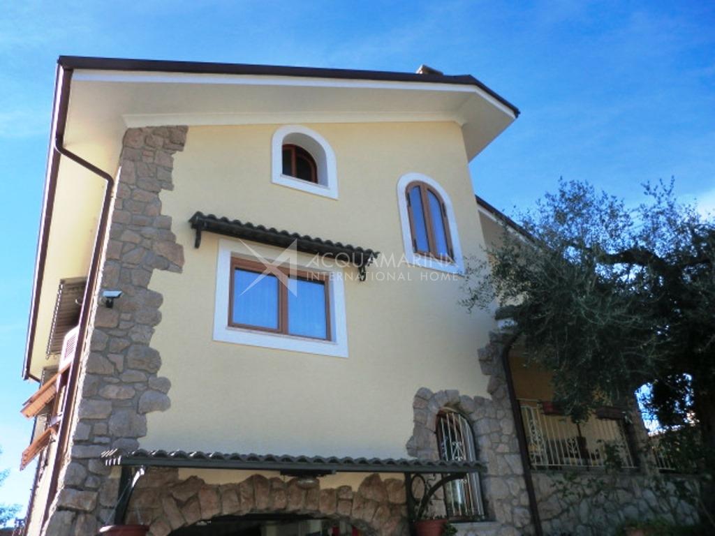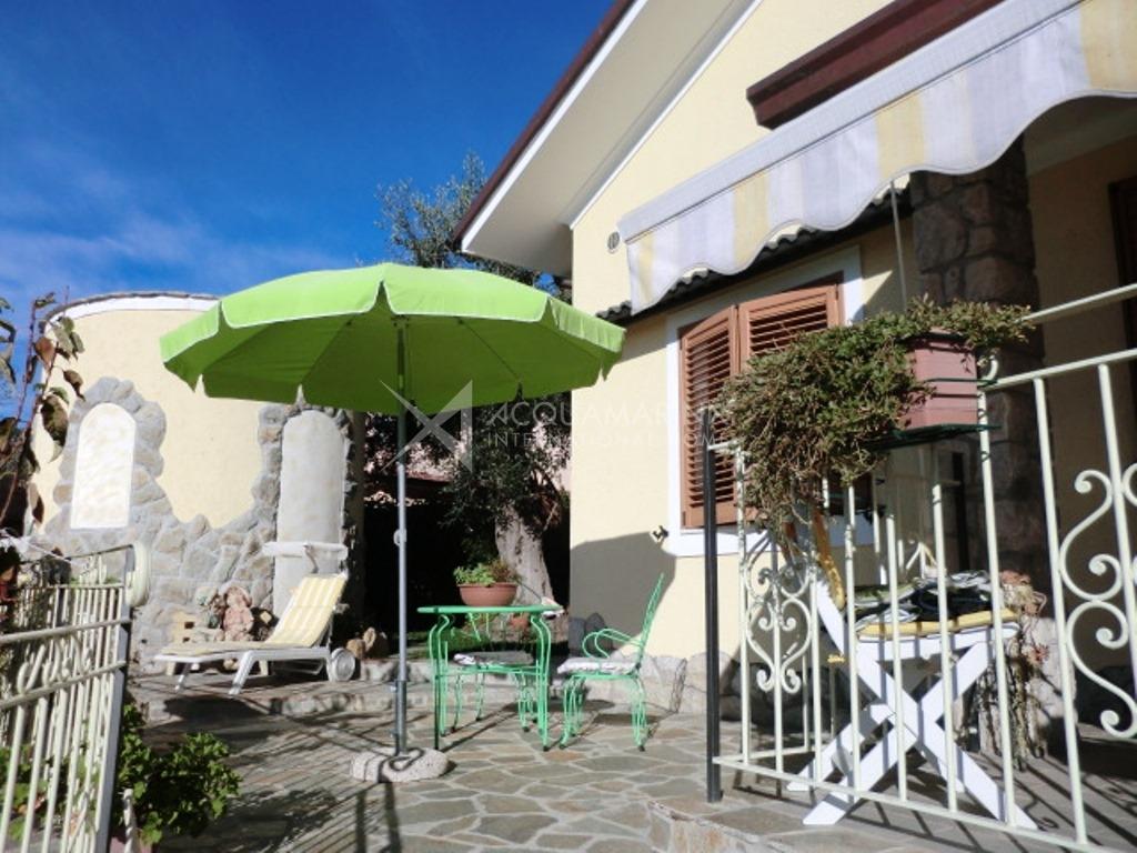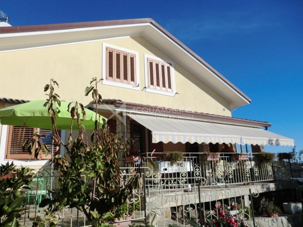 Villa vista mare in zona campo golf, di 160mq+34mq di garage e composta da ampia zona giorno di circa 70mq con bagno al piano terra, 3 camere e altro bagno al piano primo ed ultimo mansardato alto. Porticati, giardino per un totale di 800mq.