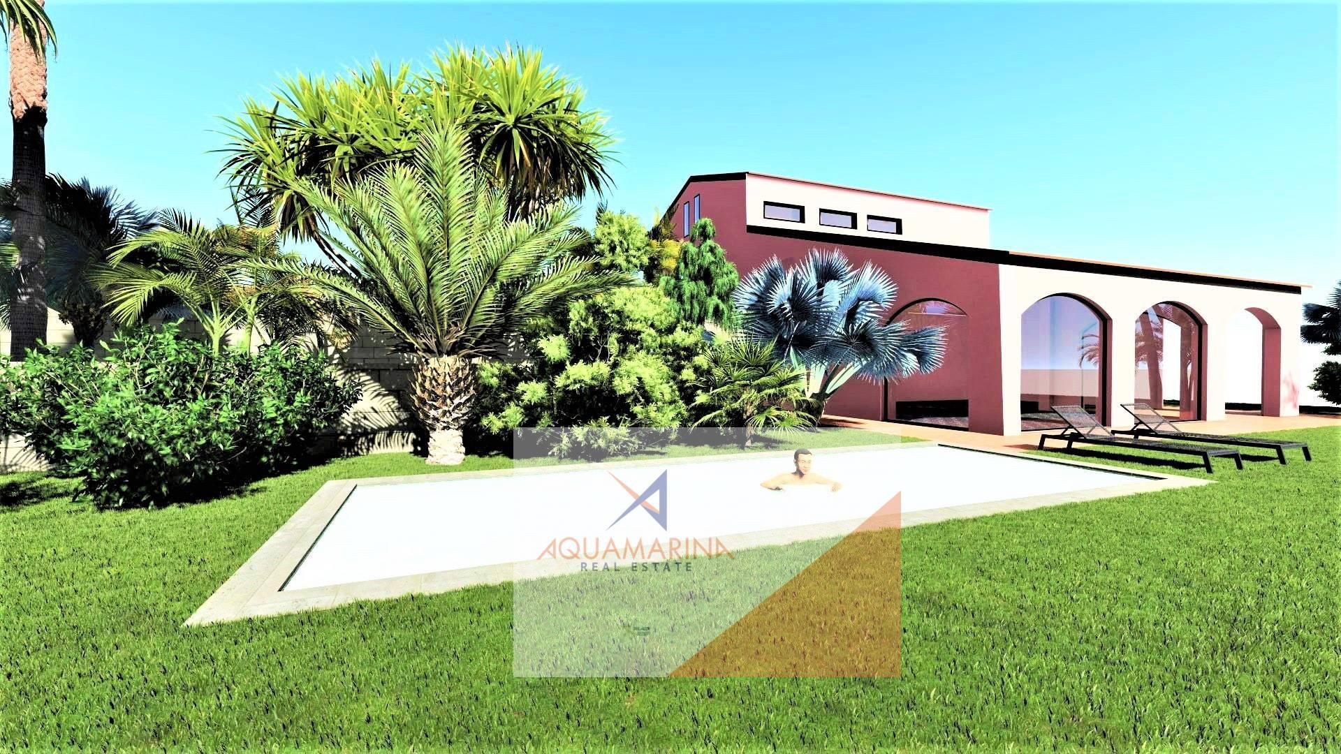 La villa è circondata da 1.600mq di giardino dove può sorgere una piscina, garage doppio e una comoda area parcheggio coperta e scoperta.