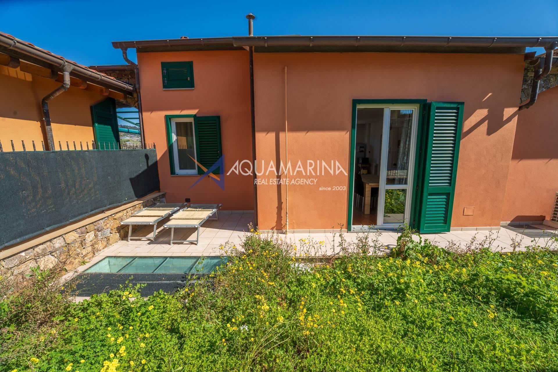 A Santo Stefano al Mare, proponiamo in vendita villa a schiera con garage di 26 mq e posto auto privato.